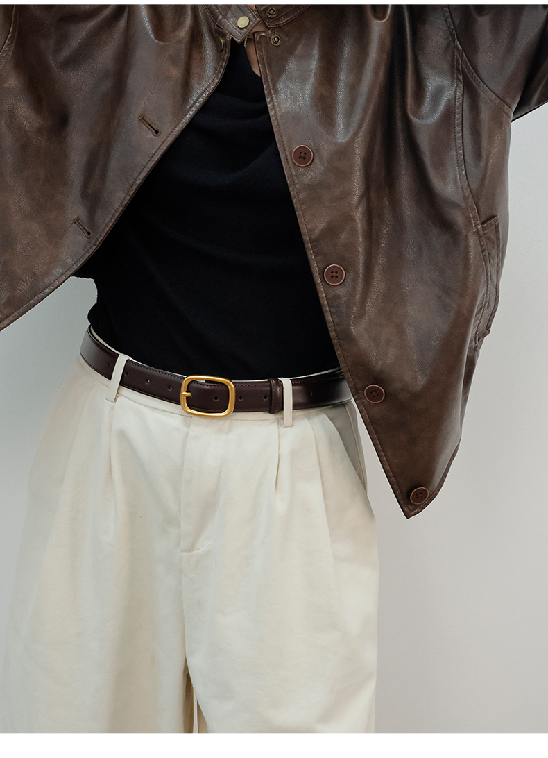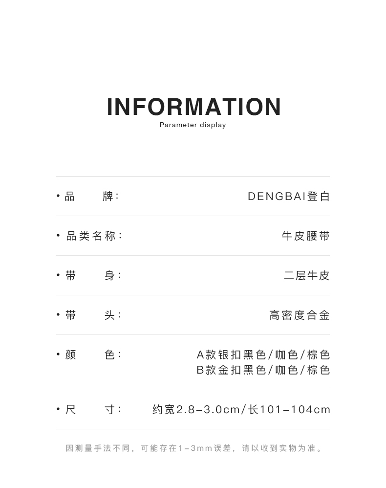 登白DENGBAI 平纹方形针扣牛皮腰带DB3522