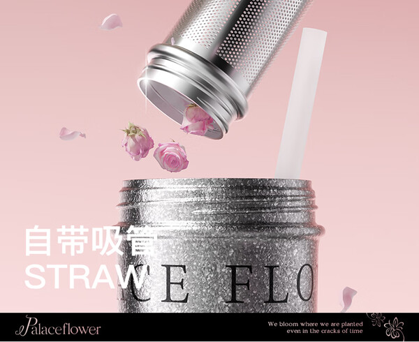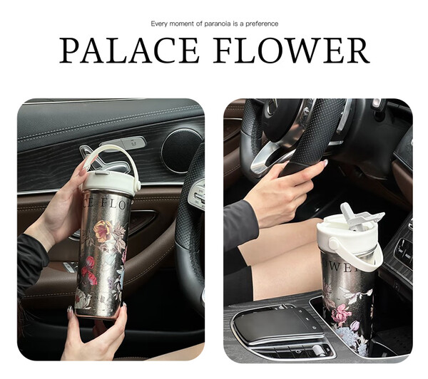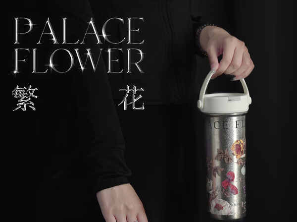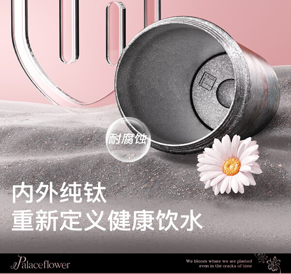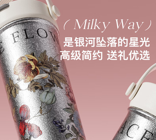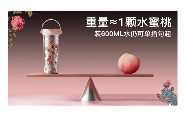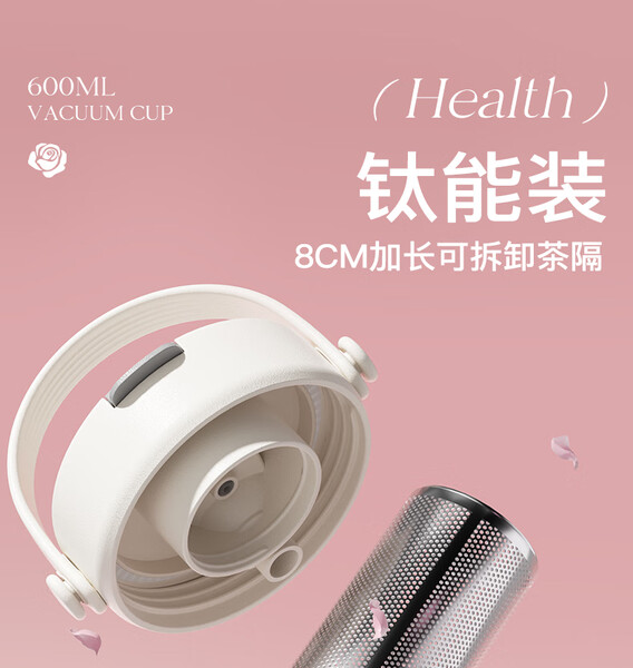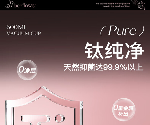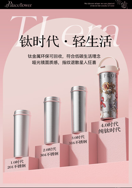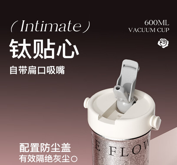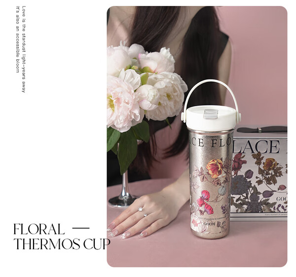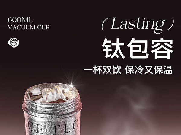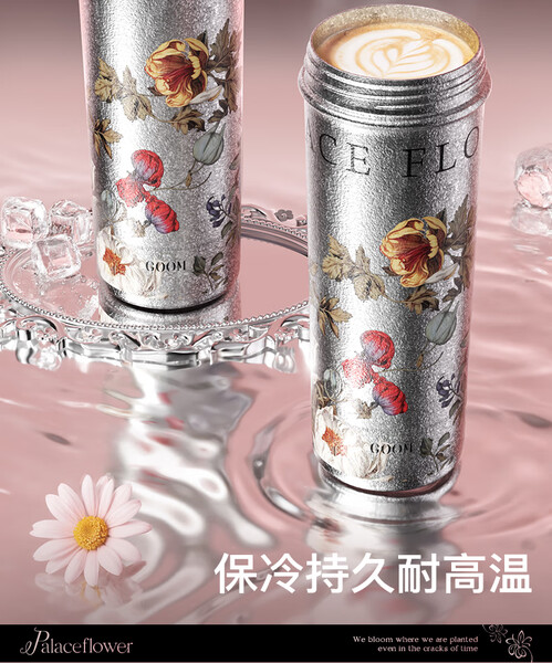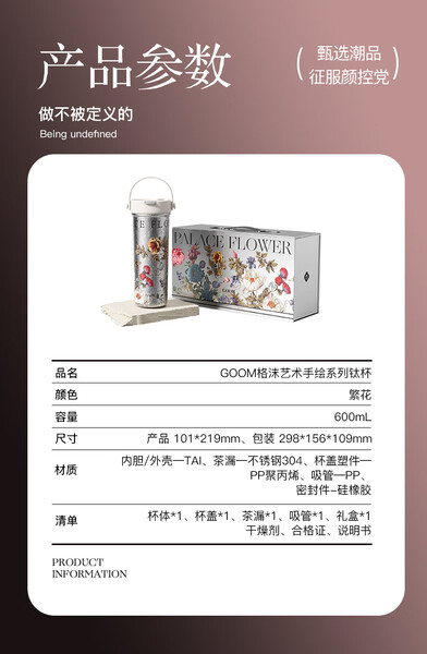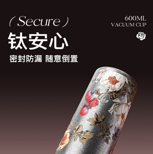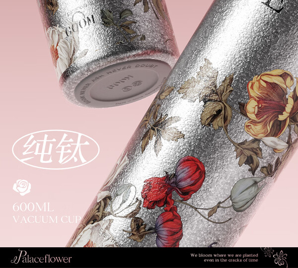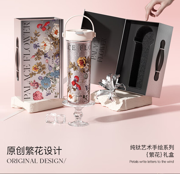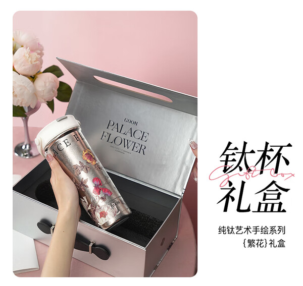 GOOM繁花纯钛保温杯2025新款女生高颜值大容量吸管水杯子母亲婆婆生日礼物 繁花钛杯-600ml【高档礼盒】