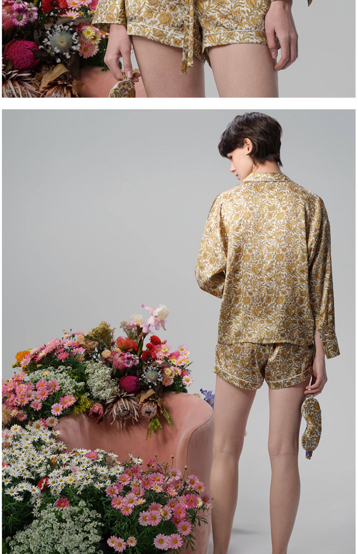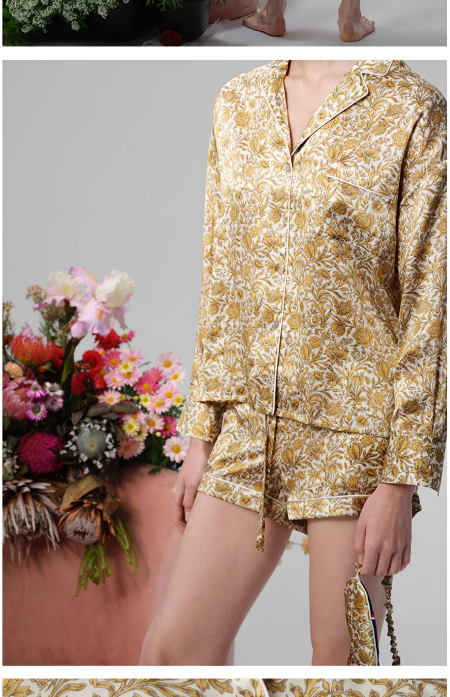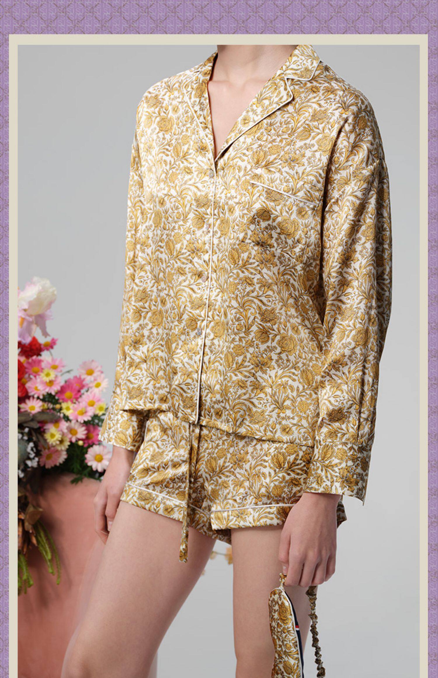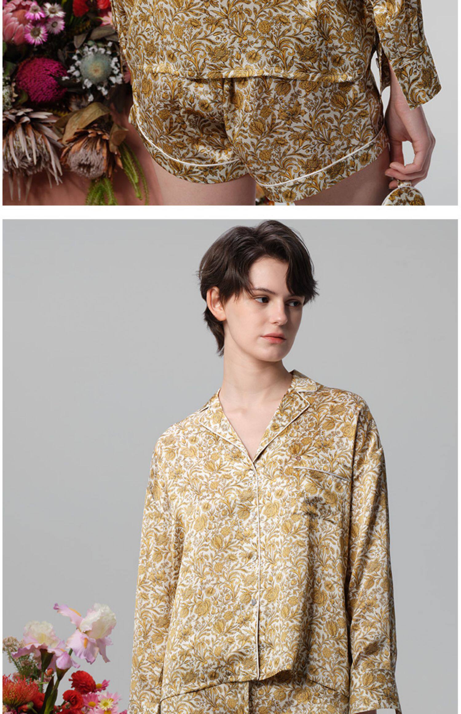 系列英国Liberty桑伯恩进口桑蚕丝宽松落肩上衣衬衫短裤家居服S332TD70南法SJD/soie jardin