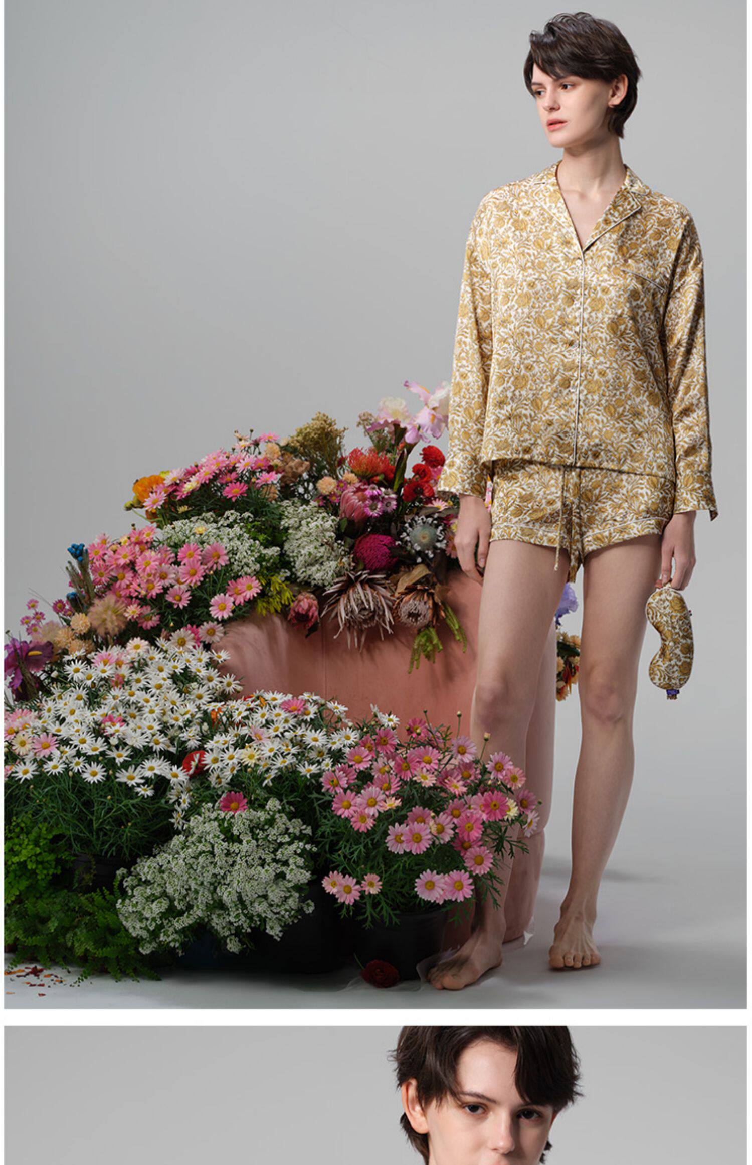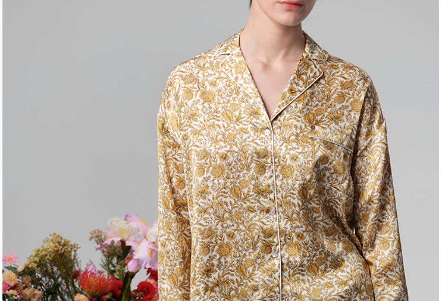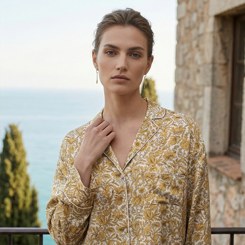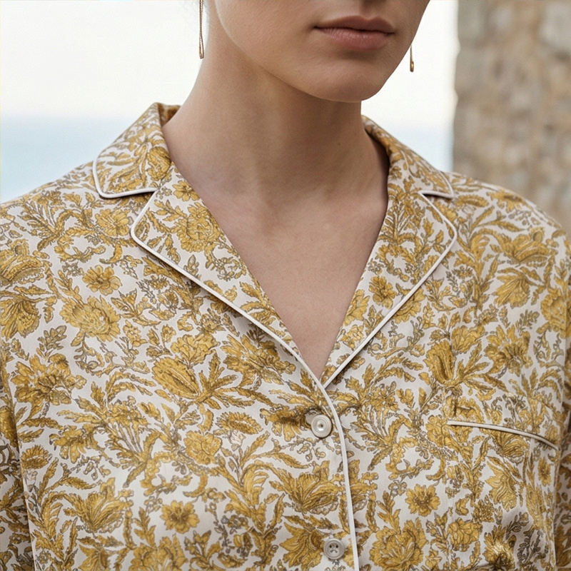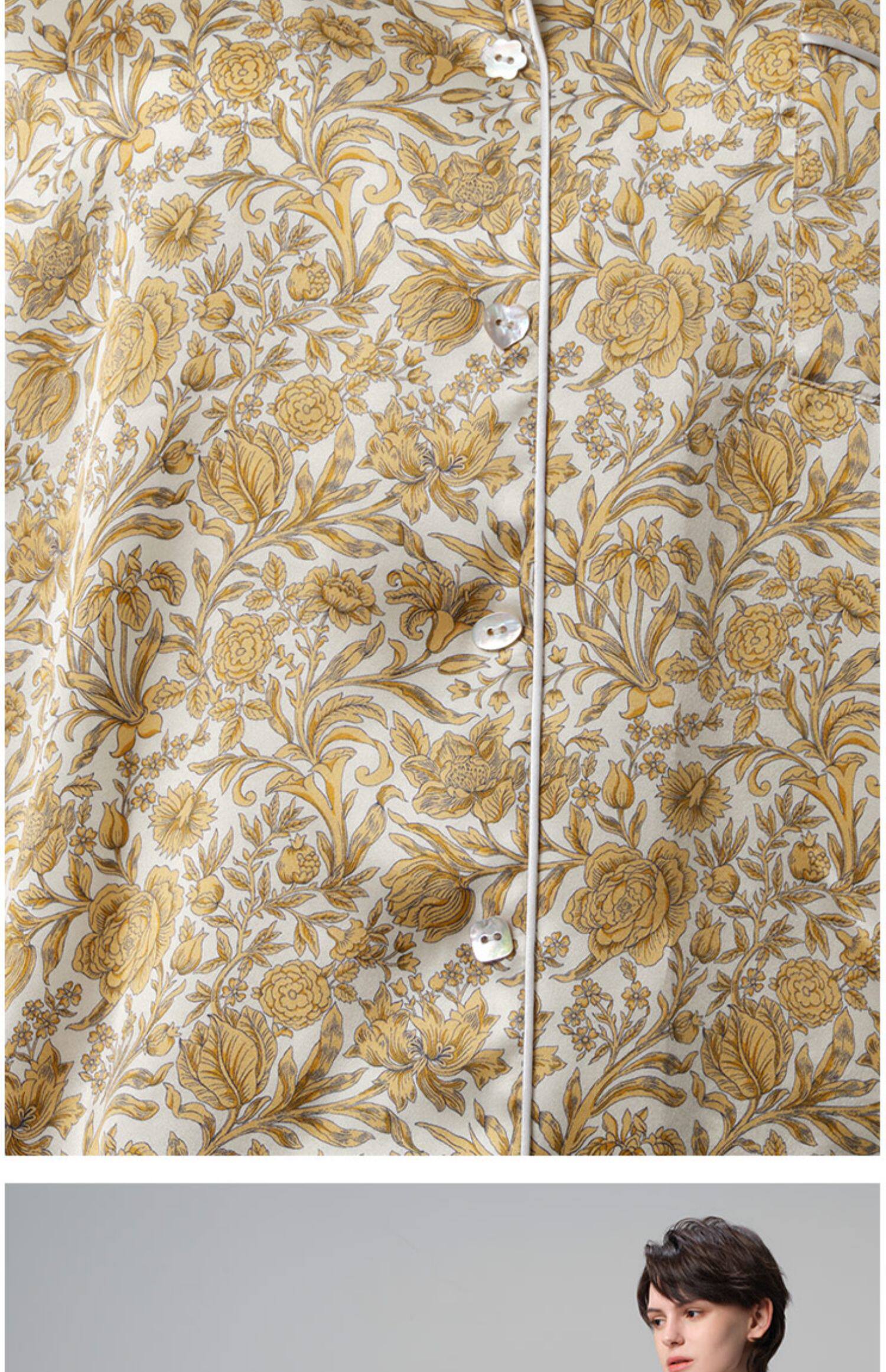 系列英国Liberty桑伯恩进口桑蚕丝宽松落肩上衣衬衫短裤家居服S332TD70南法SJD/soie jardin