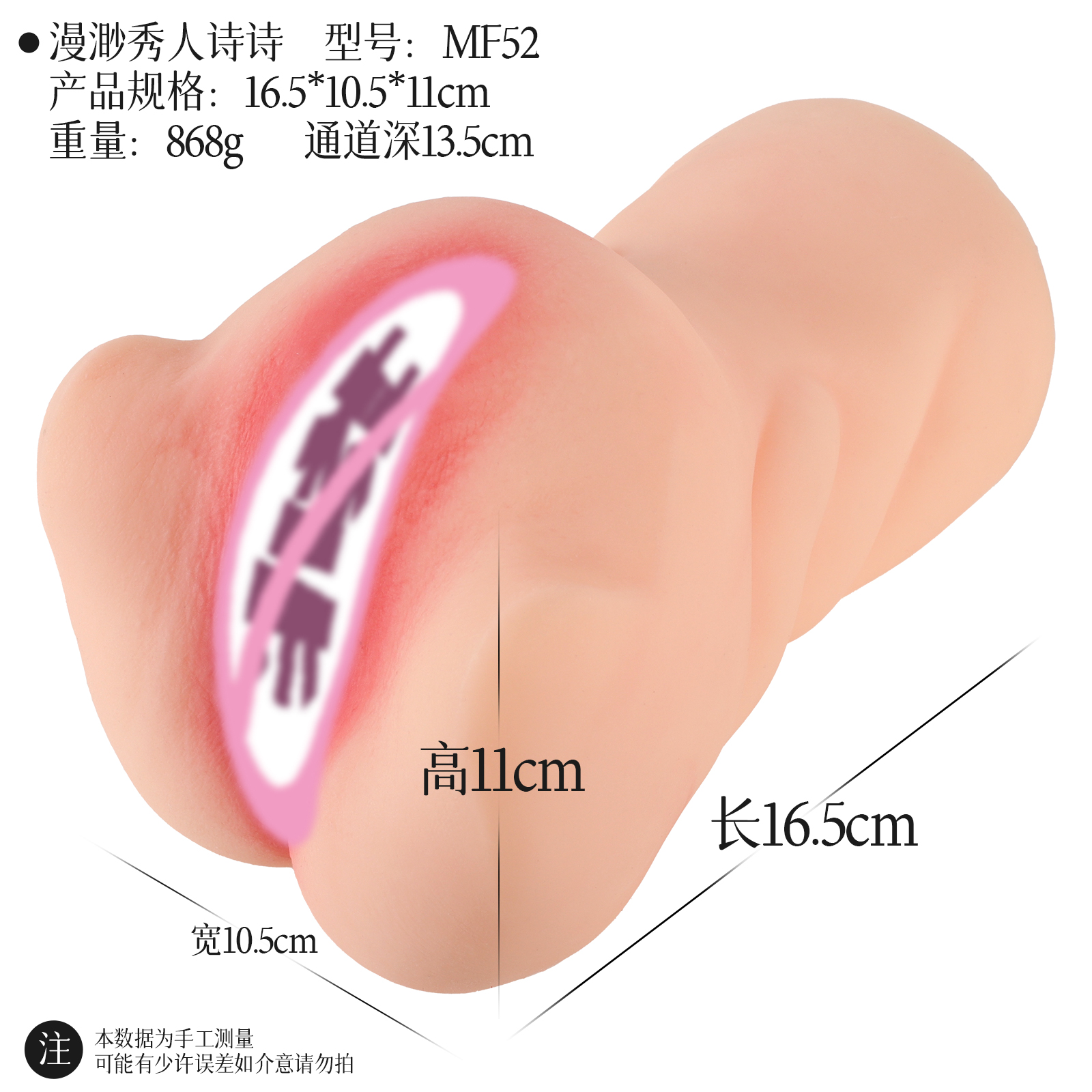 漫渺秀人名器系列 XiuRen Model Pussy 快递规格:7号箱:23*13*16 箱净重120g 包装盒重:83g 三款合集箱规:29.5*27.5**17cm 箱净重380g 含产品重量:3402g本系列为真人复刻外阴名器 复刻美阴 不同体验内道 进口原料 漫渺秀人琪琪 型号:MF51 条码:6973736552966 产品规格:17*10.5*11cm 重量:964g 通道深14.5cm 盒规格:17*11*11cm 盒装重:1047g 快递盒重:1167g 【产品名称】漫渺秀人琪琪【型号】MF51【产品材质】SRFS【规格尺寸】17*10.5*11cm【颜色】肉色【净重】964g【主要功能】男士解压【保质期】24个月【生产日期】见包装【品牌名称】ManMiao漫渺【品牌商】上海漫渺国际贸易有限公司【执行标准】Q/MMBJ 002-2017【质检标准】GB/T 22048-2008 GB6675.4-2014 GB 4706.1-2005合格【气味】无香型【保存条件】置阴凉干燥处保存【使用方法】见视频【注意事项】1、本产品为成人用品,严禁未成年人使用 2、产品忌高温且易燃,应远离火源与高温 3、考虑个人卫生问题,使用前后需清洗。——————————————————————————————————————漫渺秀人诗诗 型号:MF52 条码:6973736552973 产品规格:16.5*10.5*11cm 重量:868g 通道深13.5cm 盒规格:17*11*11cm 盒装重:951g 快递盒重:1071g【产品名称】漫渺秀人诗诗【型号】MF52【产品材质】SRFS【规格尺寸】16.5*10.5*11cm【颜色】肉色【净重】868g【主要功能】男士解压【保质期】24个月【生产日期】见包装【品牌名称】ManMiao漫渺【品牌商】上海漫渺国际贸易有限公司【执行标准】Q/MMBJ 002-2017【质检标准】GB/T 22048-2008 GB6675.4-2014 GB 4706.1-2005合格【气味】无香型【保存条件】置阴凉干燥处保存【使用方法】见视频【注意事项】1、本产品为成人用品,严禁未成年人使用 2、产品忌高温且易燃,应远离火源与高温 3、考虑个人卫生问题,使用前后需清洗。——————————————————————————————————————漫渺秀人梦瑶 型号:MF53 条码:6973736552980 规格:17.5*10.5*10.5cm 重量:931g 通道深13.5cm 盒规格:17*11*11cm 盒装重:1024g 快递盒重:1144g 【产品名称】漫渺秀人梦瑶【型号】MF53【产品材质】SRFS【规格尺寸】17.5*10.5*10.5cm【颜色】肉色【净重】931g【主要功能】男士解压【保质期】24个月【生产日期】见包装【品牌名称】ManMiao漫渺【品牌商】上海漫渺国际贸易有限公司【执行标准】Q/MMBJ 002-2017【质检标准】GB/T 22048-2008 GB6675.4-2014 GB 4706.1-2005合格【气味】无香型【保存条件】置阴凉干燥处保存【使用方法】见视频【注意事项】1、本产品为成人用品,严禁未成年人使用 2、产品忌高温且易燃,应远离火源与高温 3、考虑个人卫生问题,使用前后需清洗。