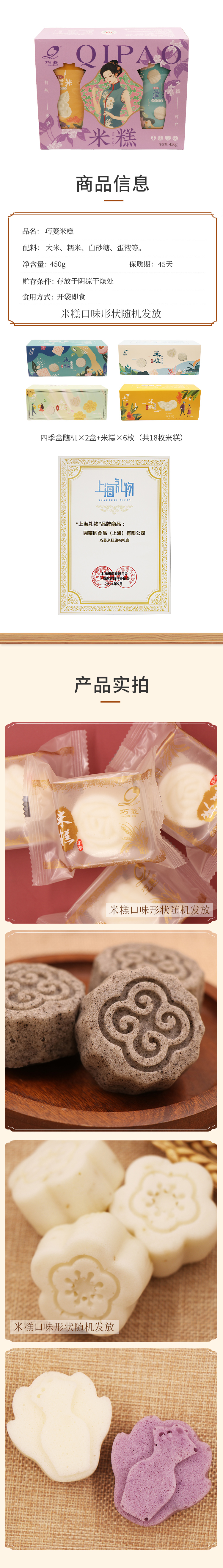 旗袍米糕礼盒 上海礼物 巧菱米糕非遗产品 450g 开袋即食早餐下午茶点心