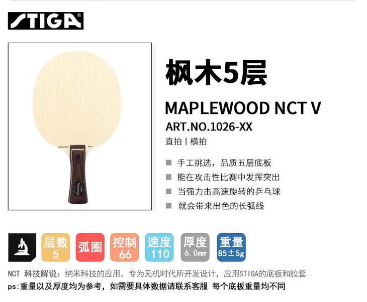 STIGA斯帝卡 枫木7/5MAPLEWOOD NCT VII纯木乒乓底板