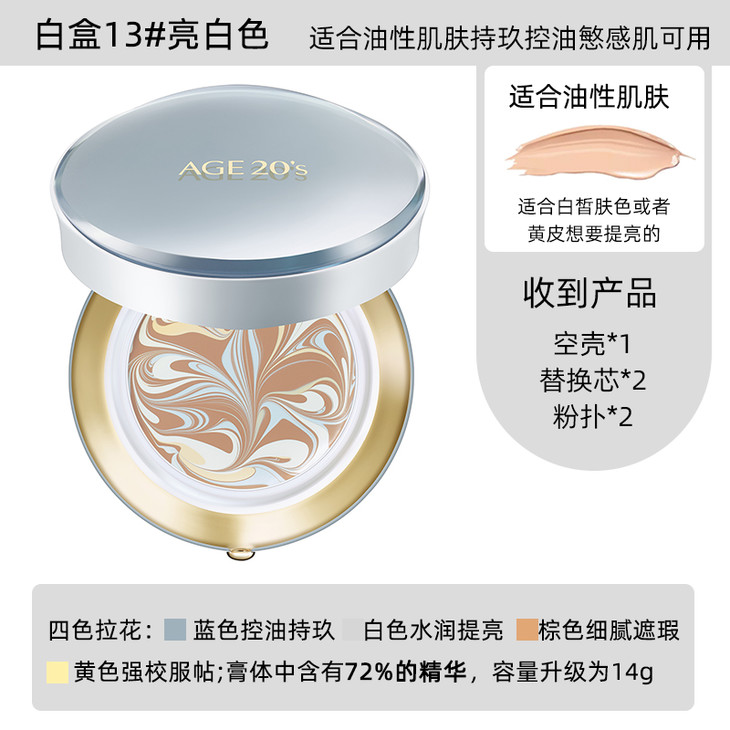 👑爱敬四色拉花气垫白金 👍“控油大师”💁——四色拉花白金款。 🔝全新升级~,立体拉花,用到铁皮还有拉花,且精华含有75% 💦富含超补水的蓝桉叶提取物,⚪️有效:缓解肌肤紧绷、修护皮肤水油平衡 💯气垫粉质十分细微,能吸收过多的皮脂,保持整一天都不脱妆,持久定妆一级棒! 👉白金款适合油性皮肤。 #13:亮白色,适合白皙皮肤(#13:367056) #21:象牙白,适合黄白皮肤(#21:367063) #23:自然色,适合暗黄偏黑肌肤(#23:367070)