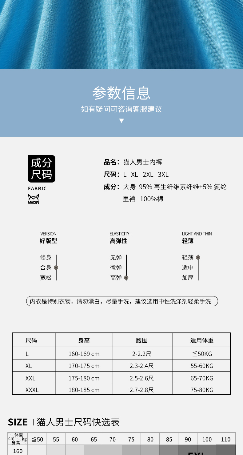 特惠款【59元4条】猫人男士莫代尔丝滑活力抗JUN内裤 轻薄透气单向导湿蜂窝内裤