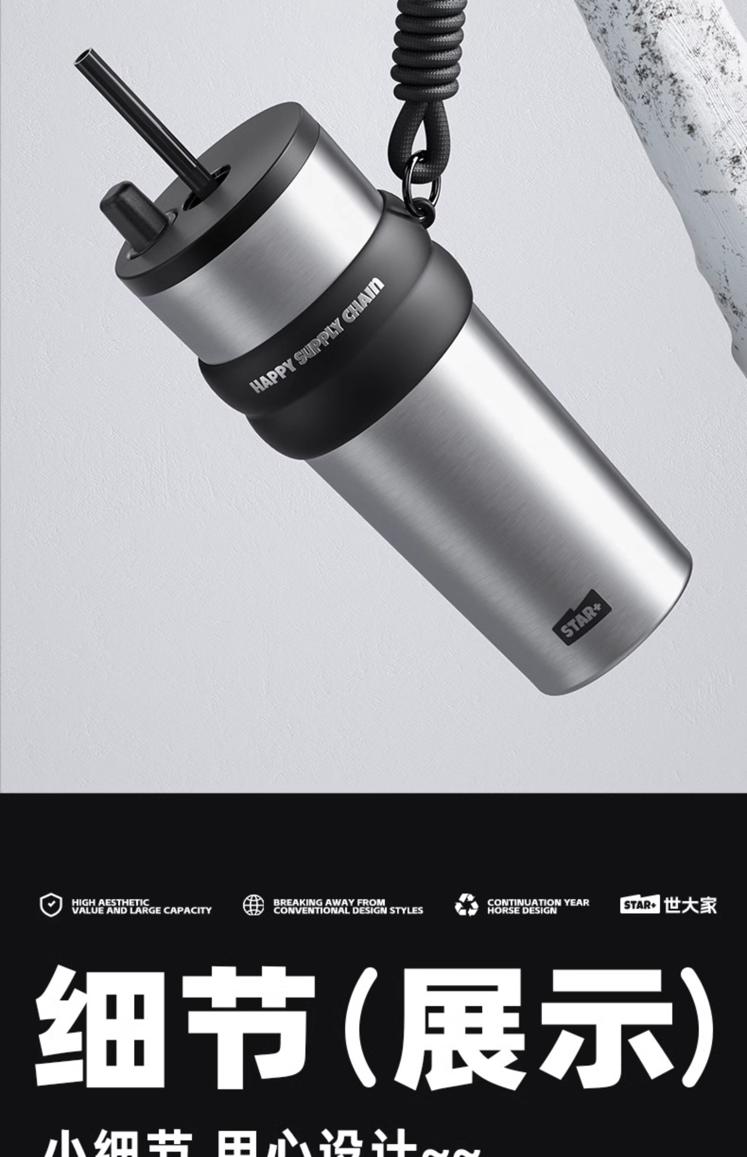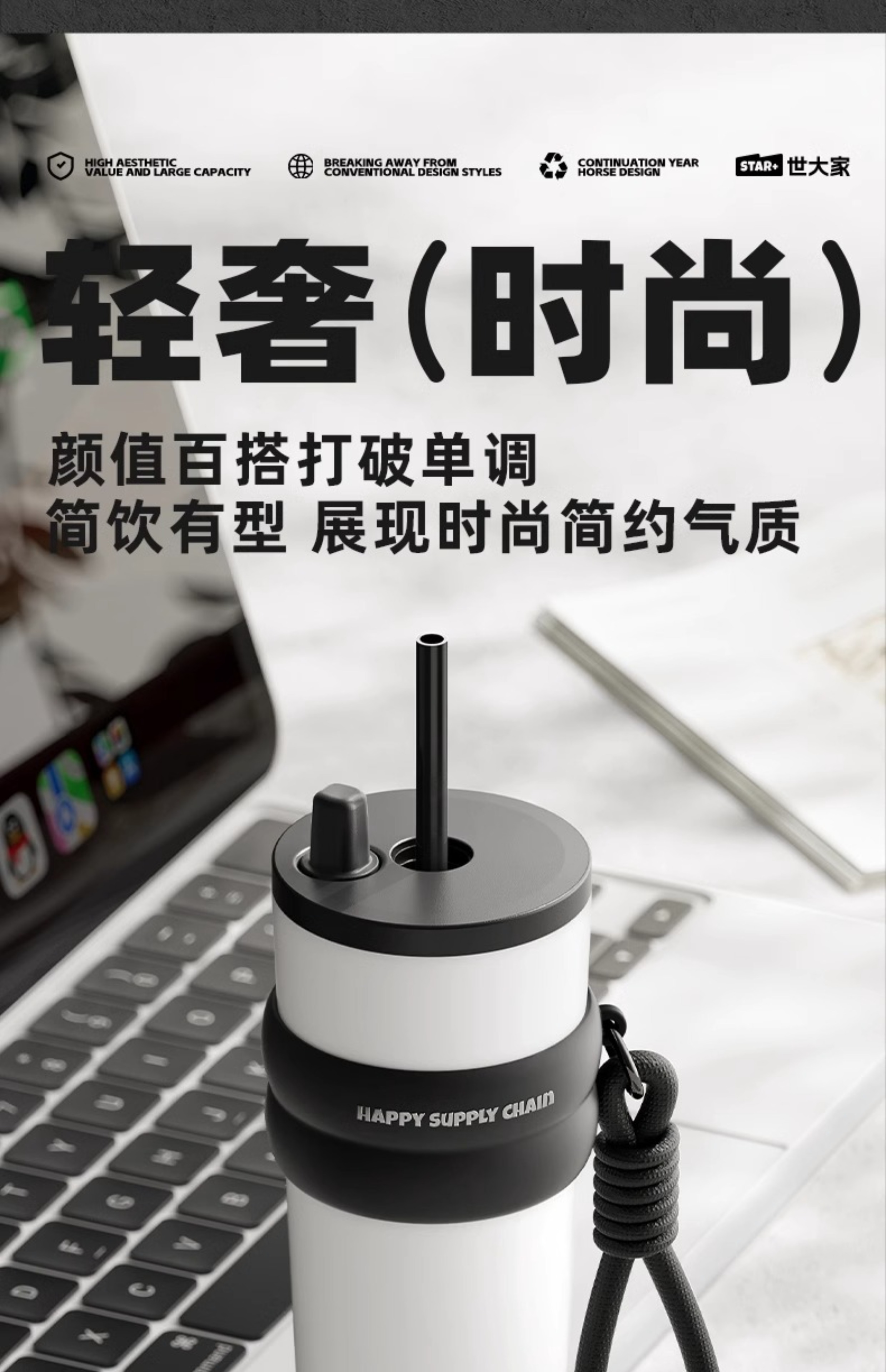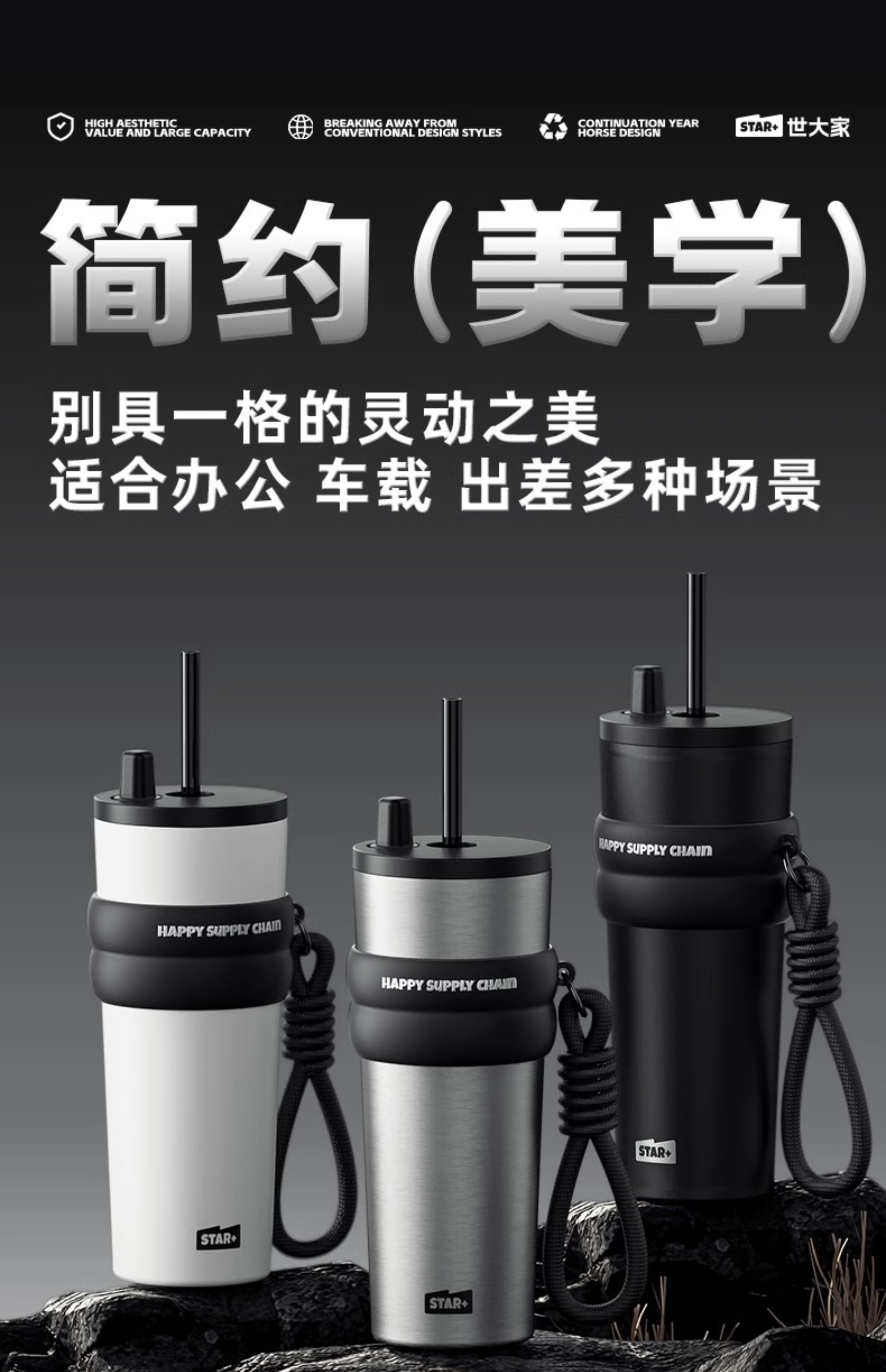 世大家极光星夜吸管杯神秘幻影(黑色)710ml