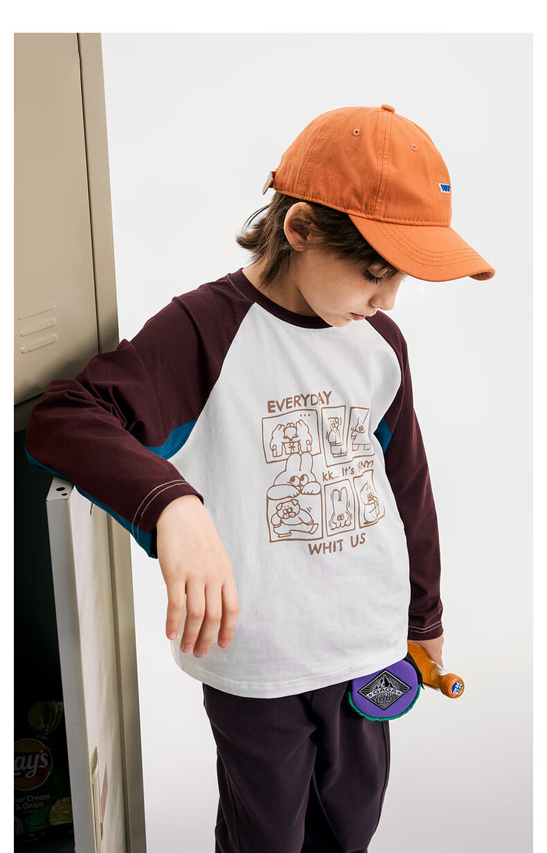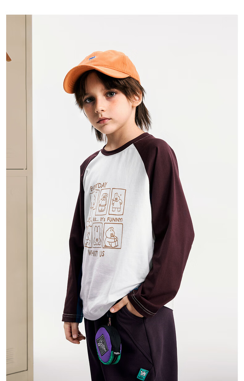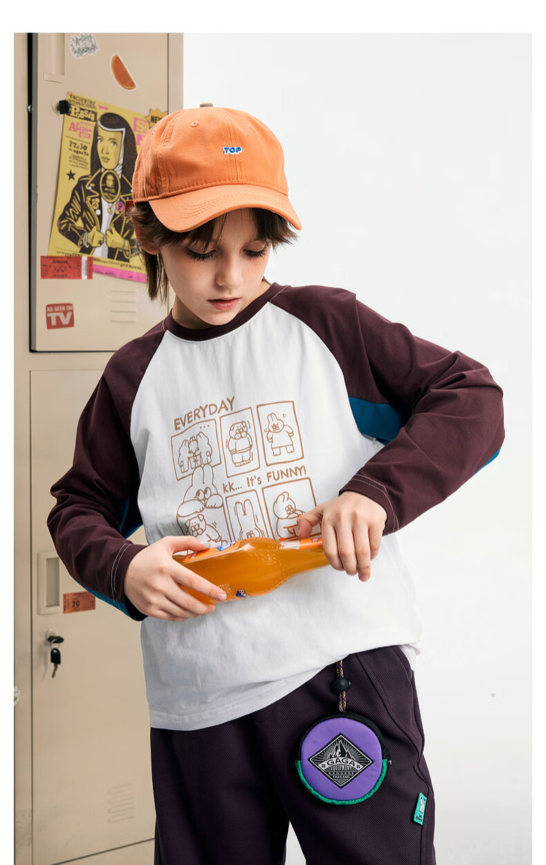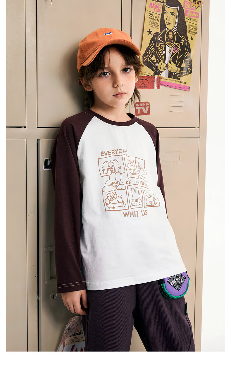 【MQD】男大童秋季潮酷休闲学院风插肩袖字母圆领T恤