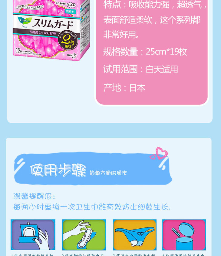 日本日本花王超薄零触感绵柔日用卫生巾 25CM