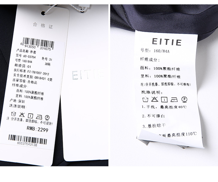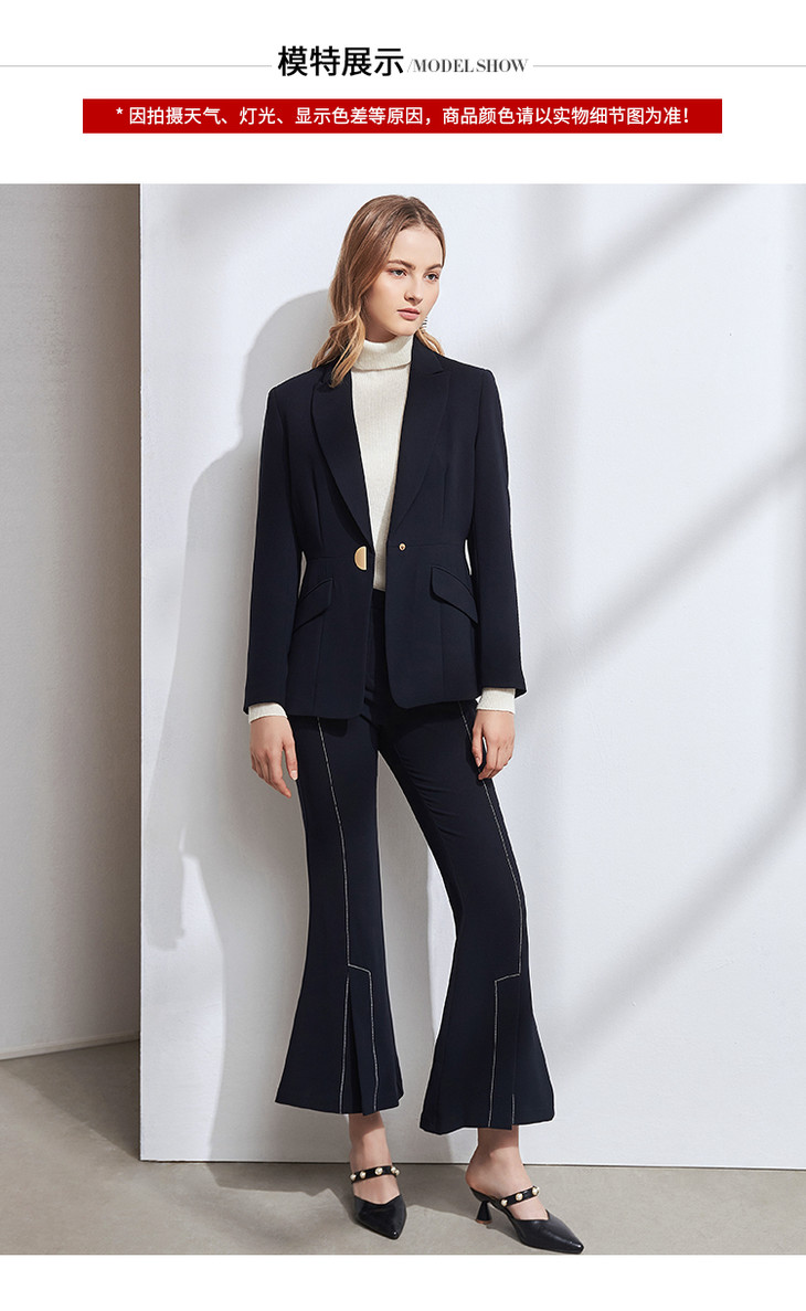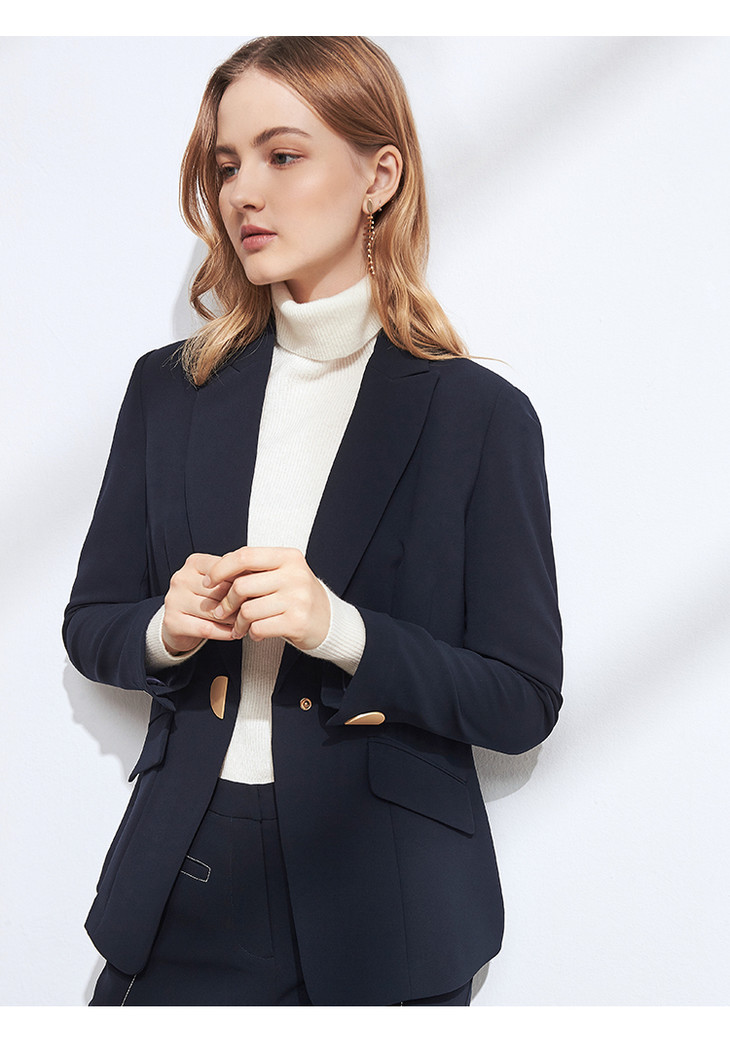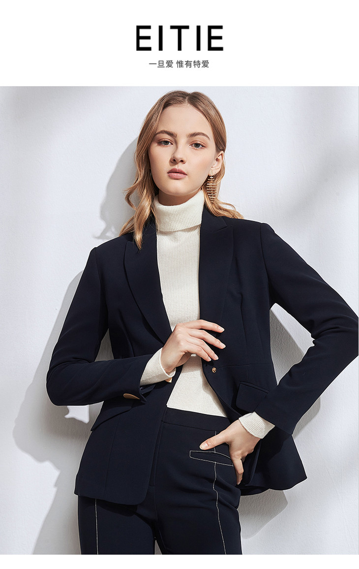 EITIE爱特爱冬季新款气质通勤修身收腰显瘦一字扣西装外套女6003704