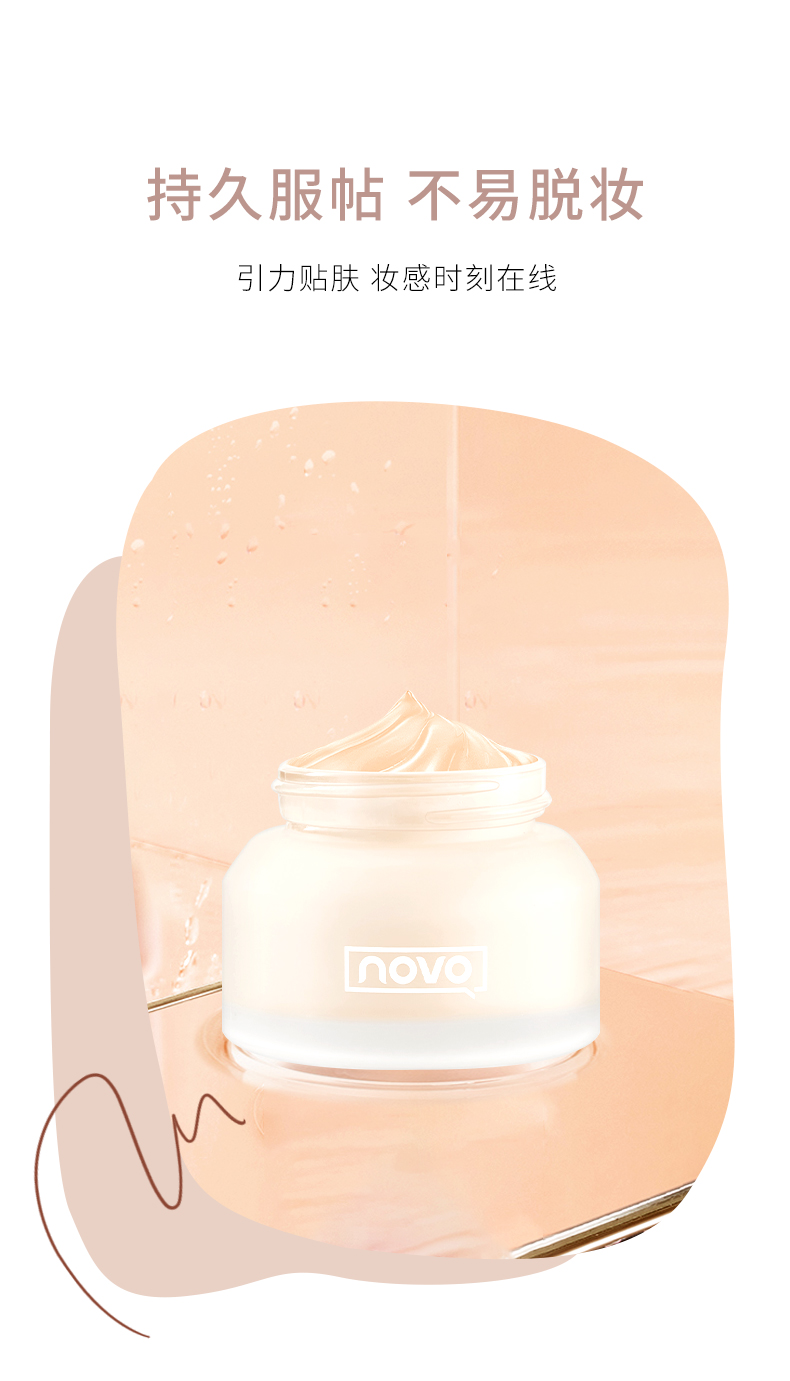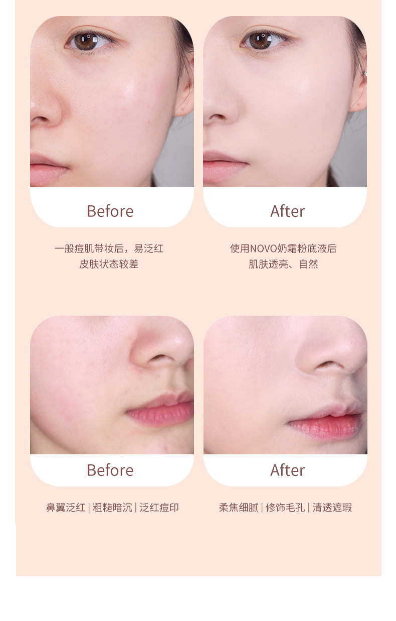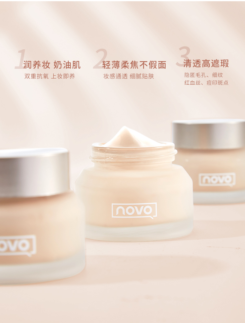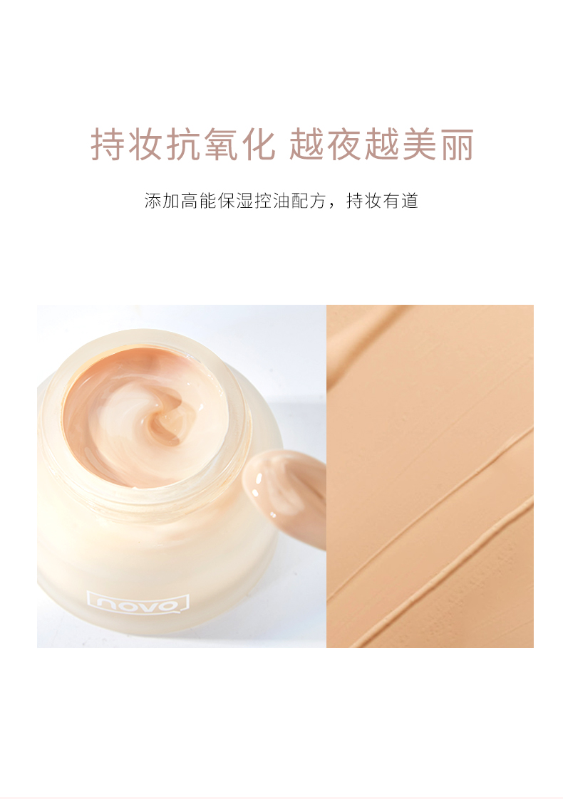 【团购秒杀】NOVO奢宠柔光粉底液防水防汗不脱妆遮瑕补水保湿学生党平价粉底霜