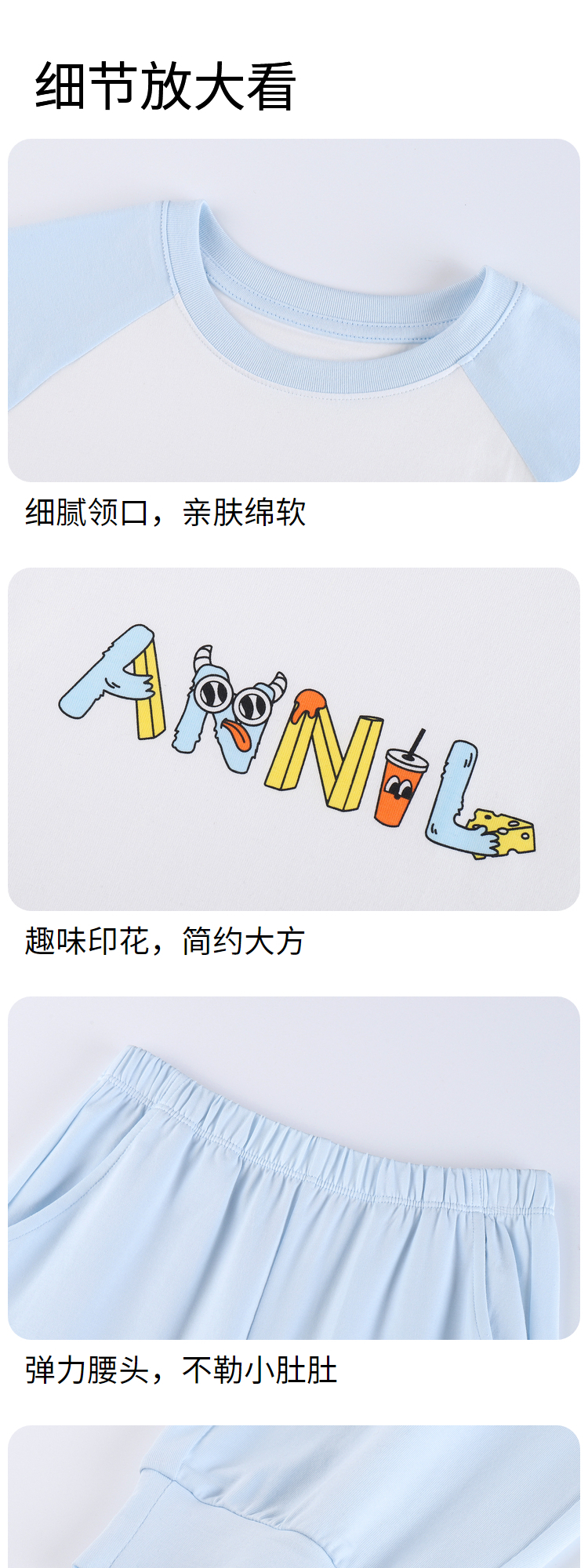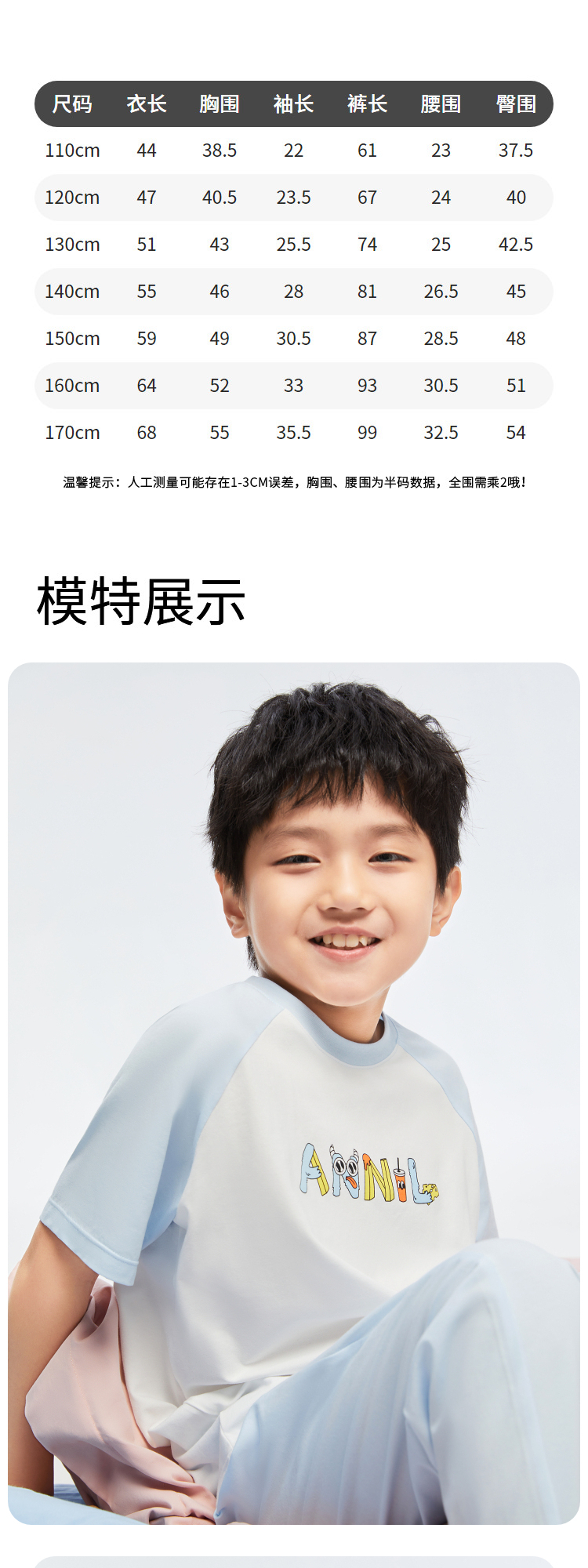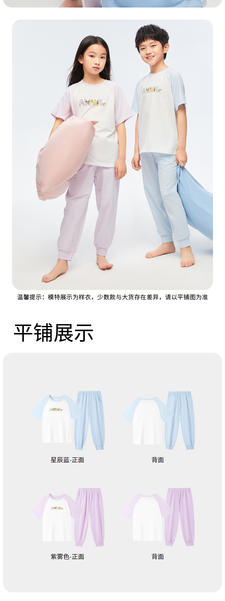 男女童休闲简约短袖家居服套装睡衣套装夏季新款安奈儿童装J童装小程序专享JM421065