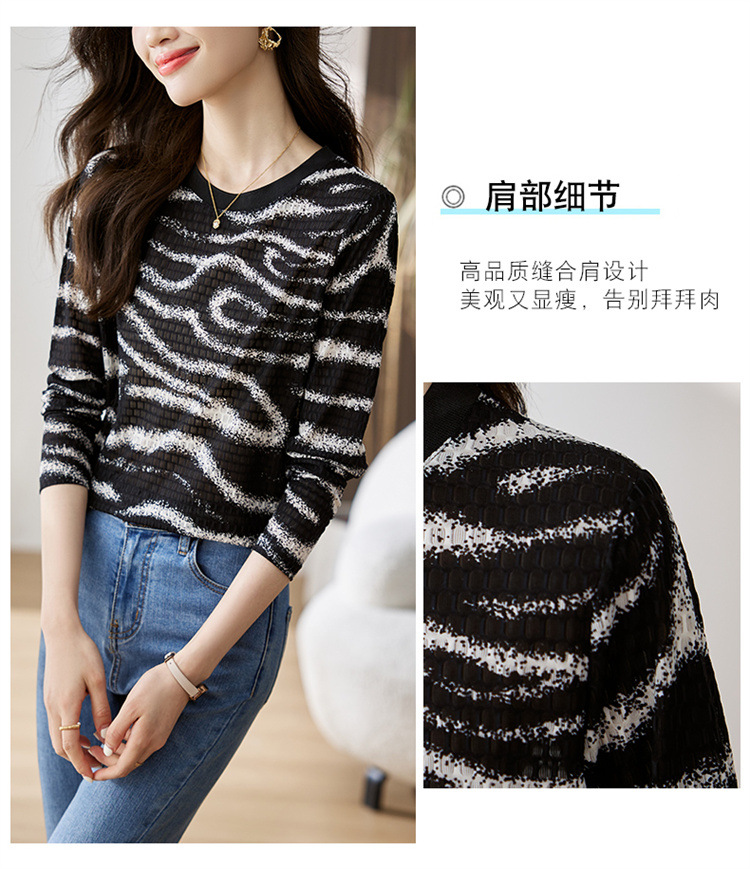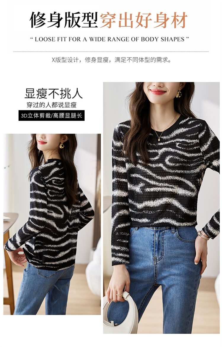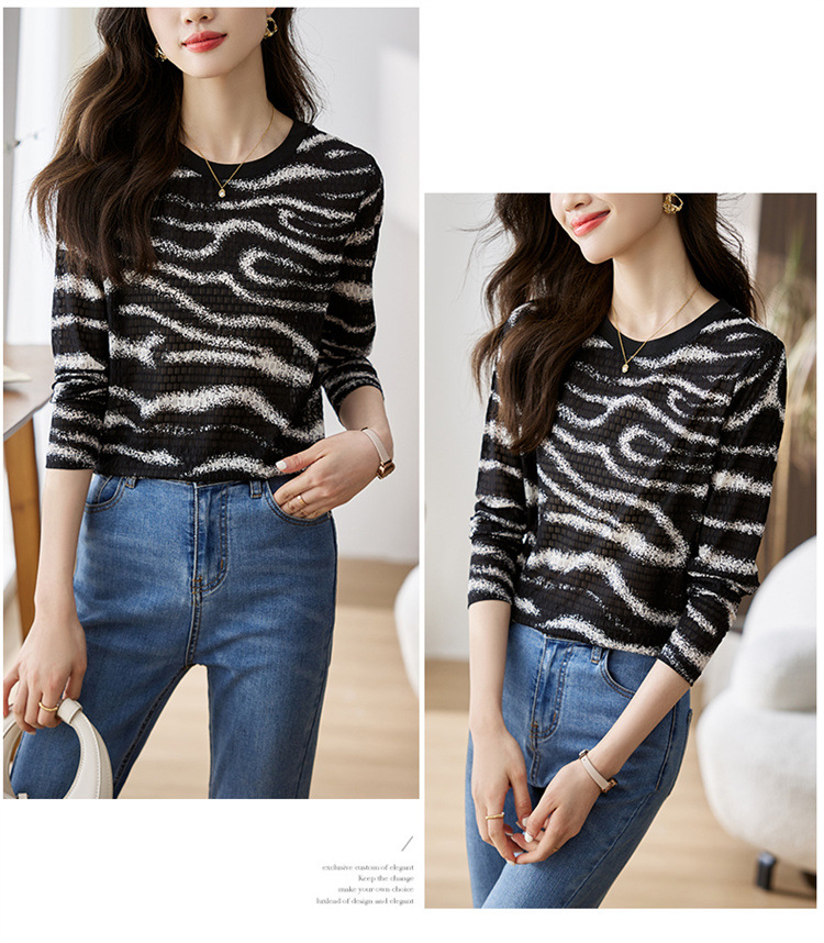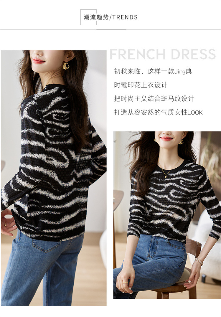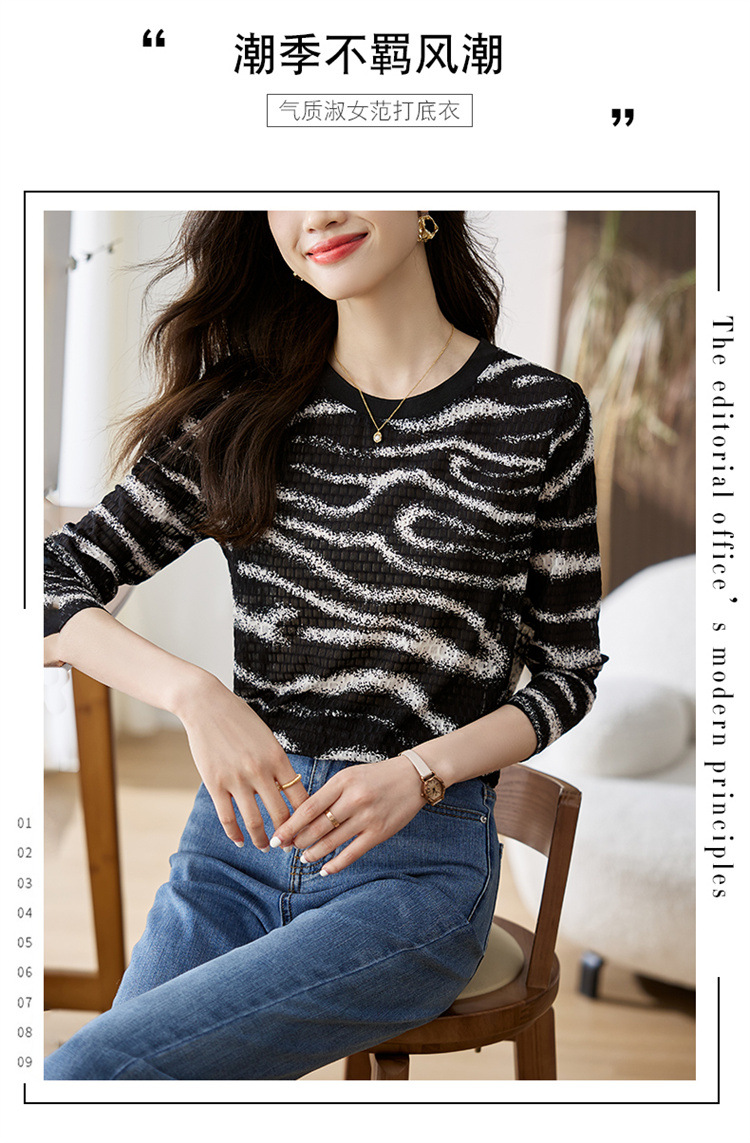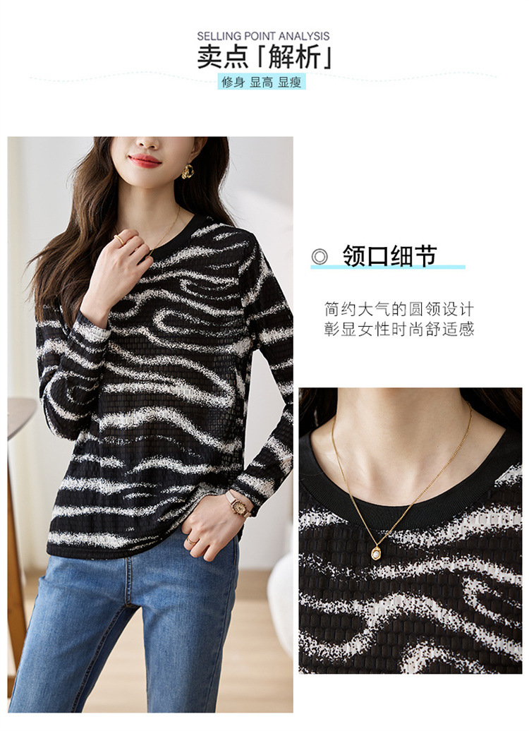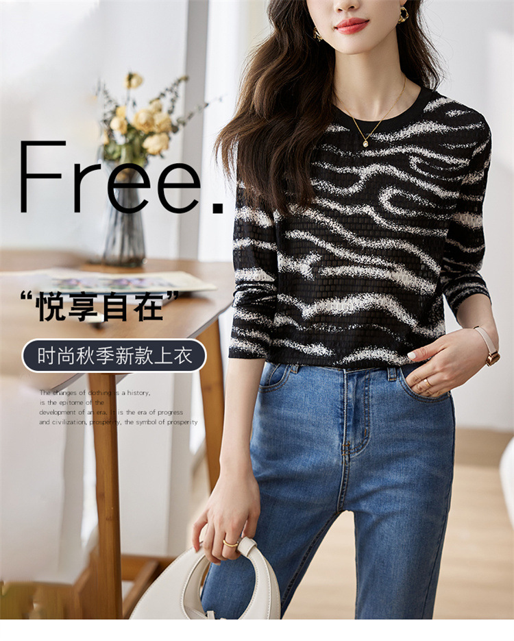 雀说波浪纹T恤新款时尚洋气圆领宽松斑马纹显瘦百搭上衣AL26