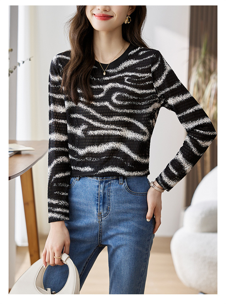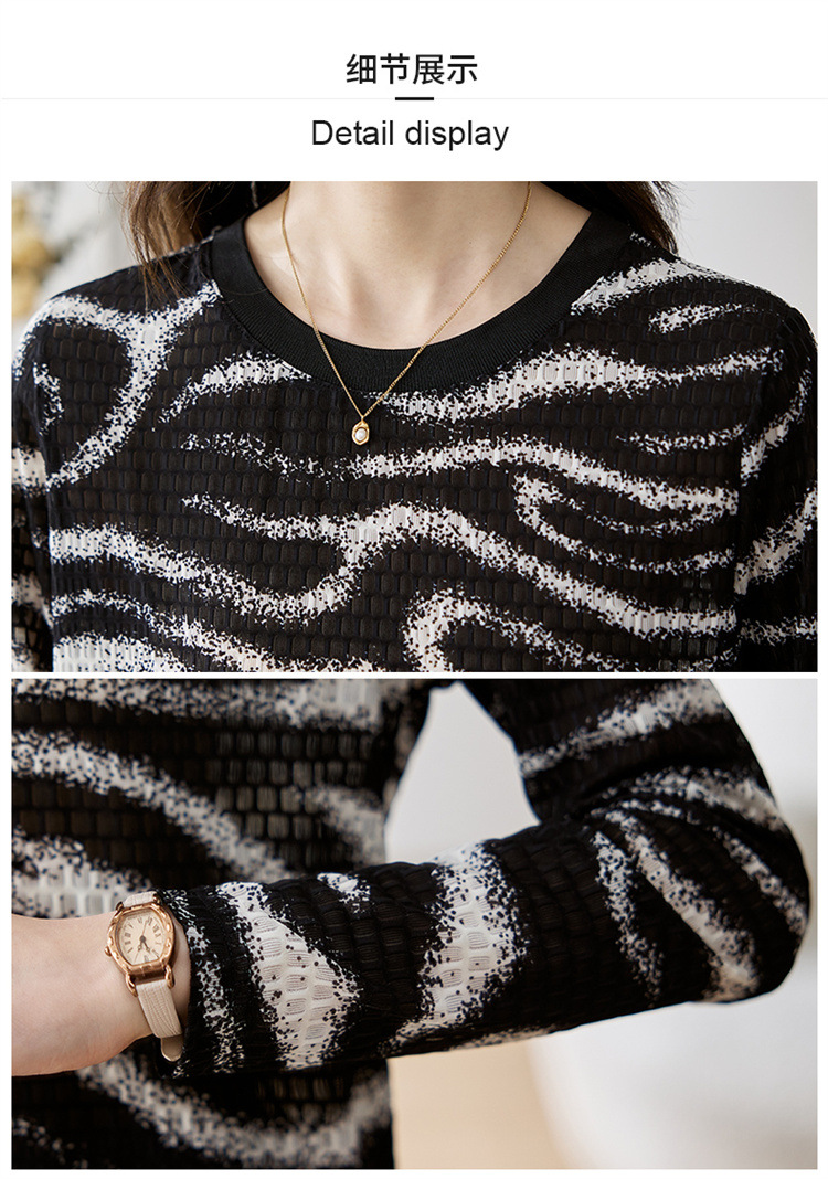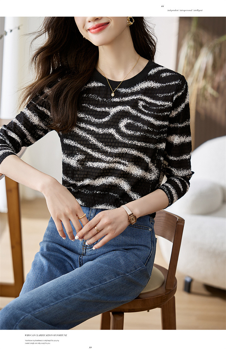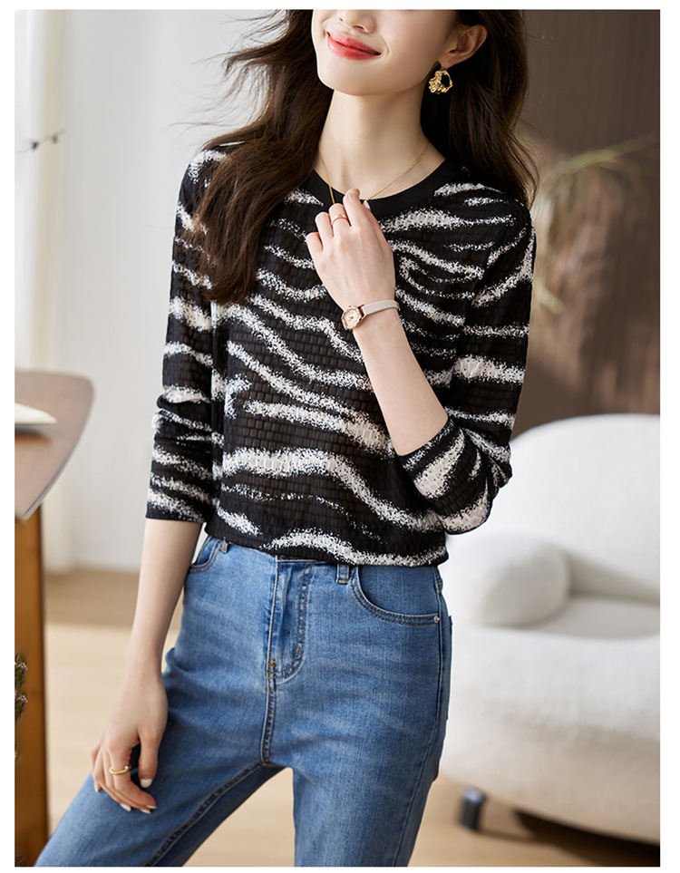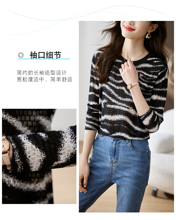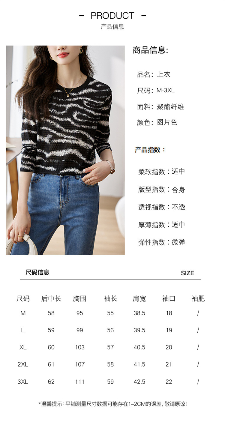 雀说波浪纹T恤新款时尚洋气圆领宽松斑马纹显瘦百搭上衣AL26