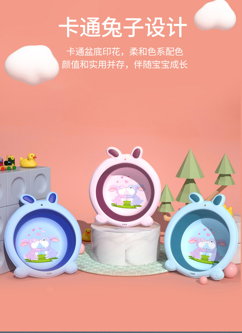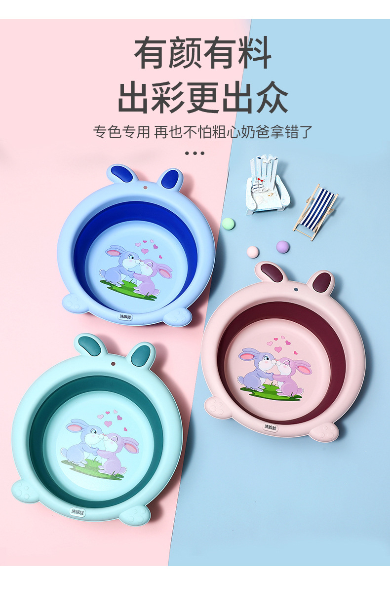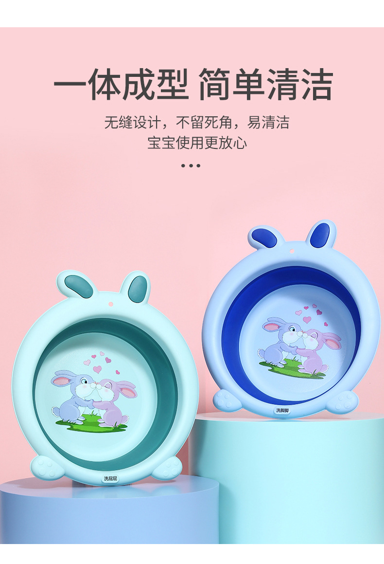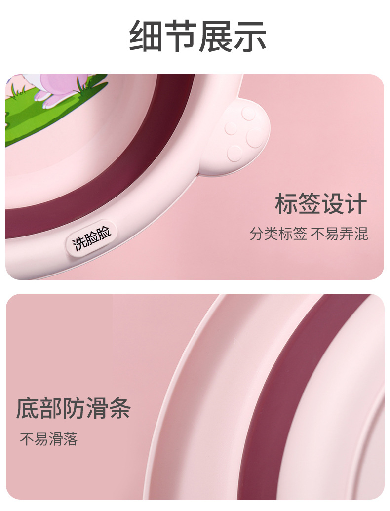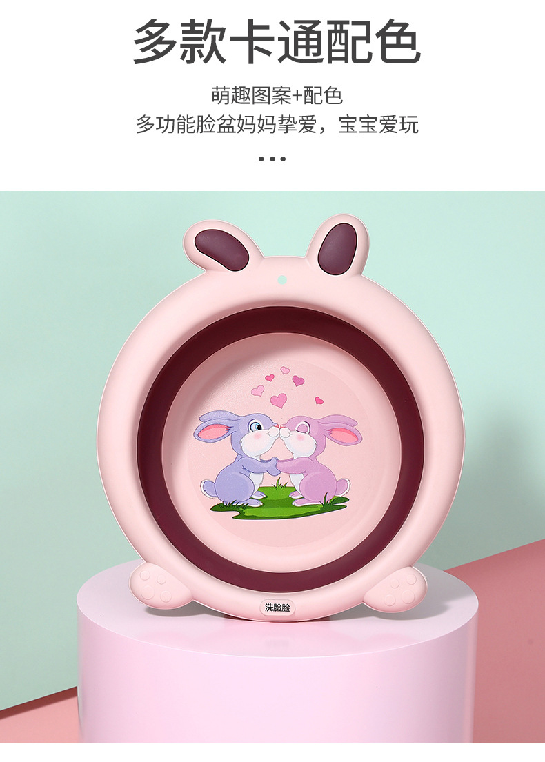 [两个装] 折叠婴儿脸盆便携儿童脸盆宝宝硅胶可折叠洗脸盆户外卡通洗PP洗脚