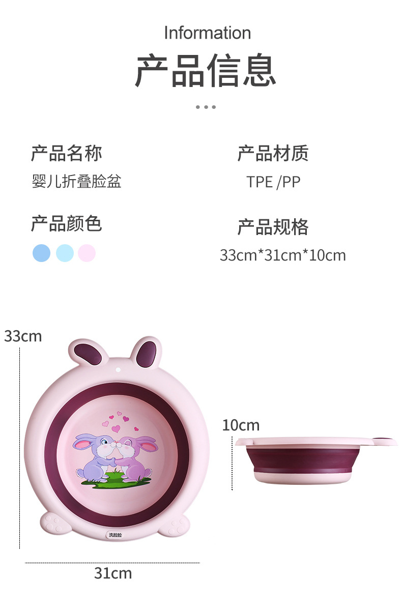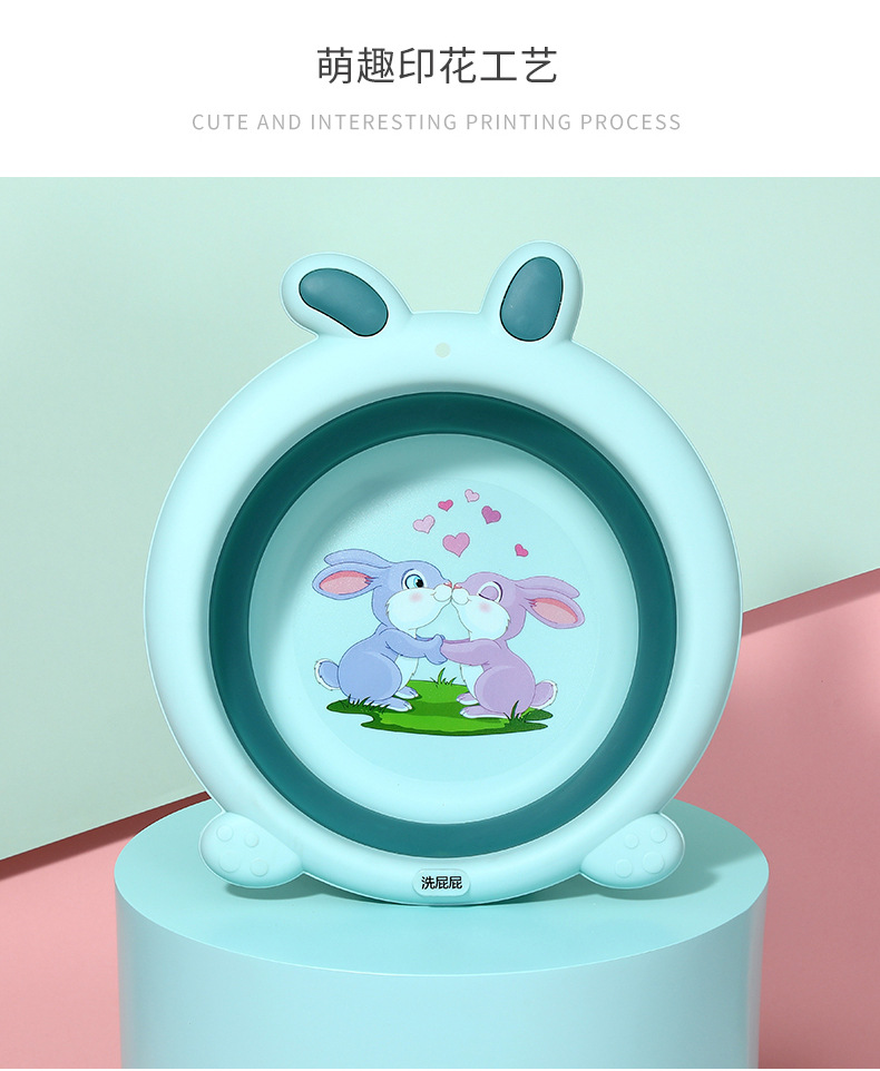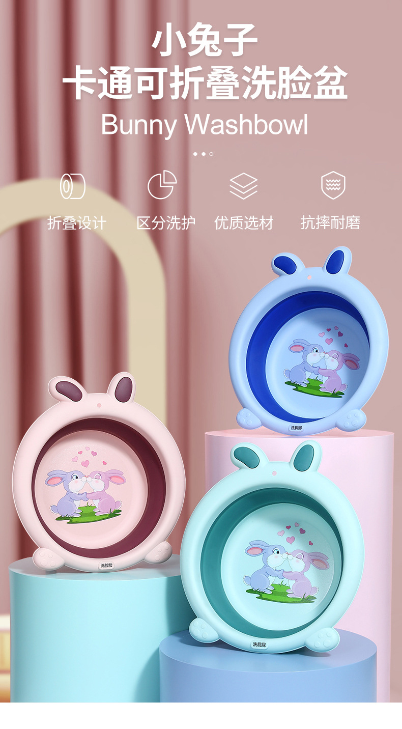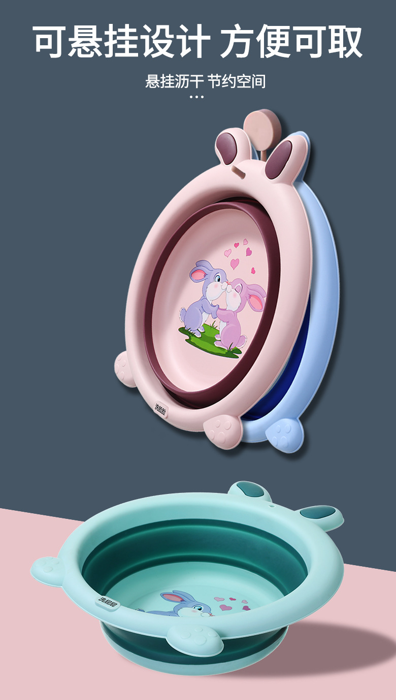 [两个装] 折叠婴儿脸盆便携儿童脸盆宝宝硅胶可折叠洗脸盆户外卡通洗PP洗脚