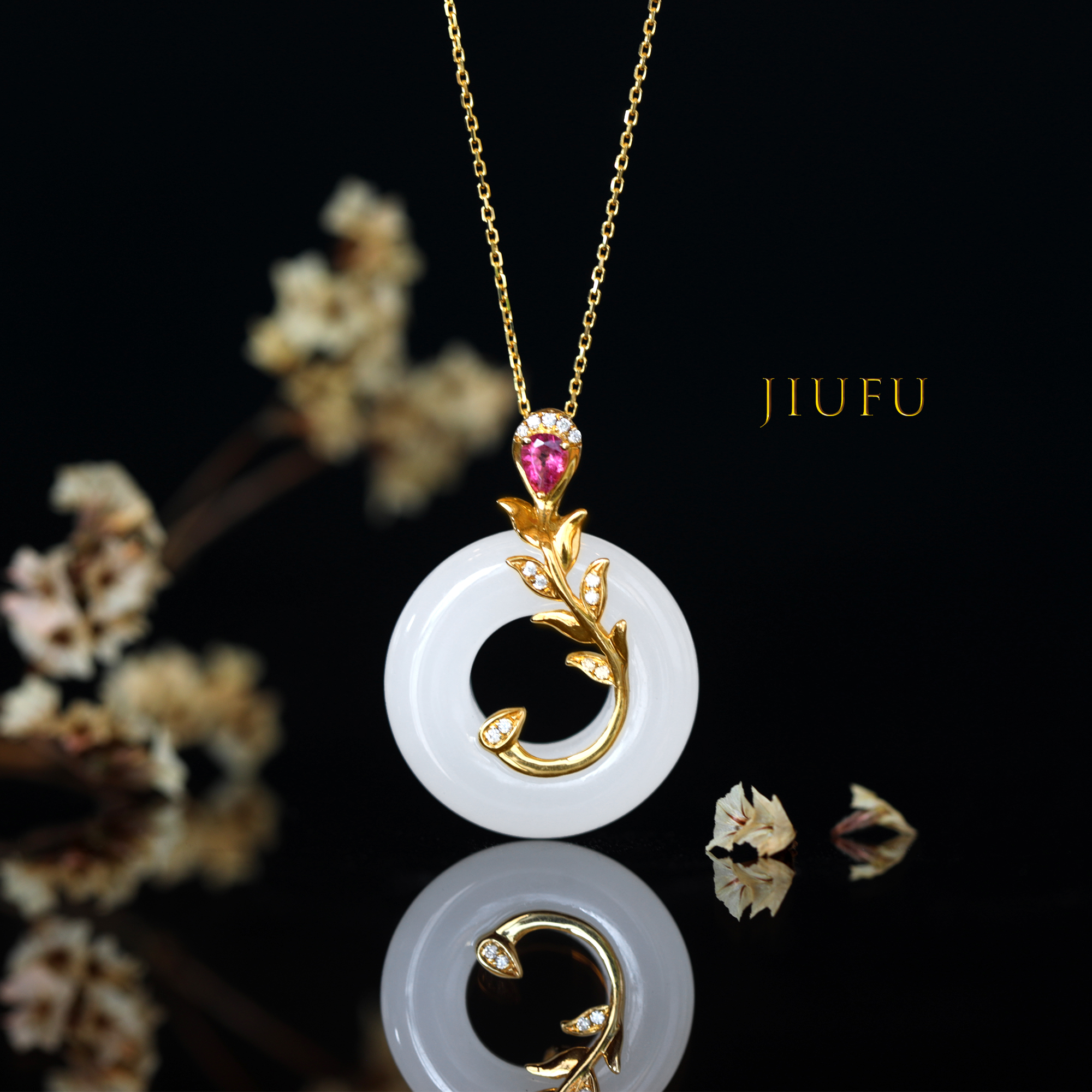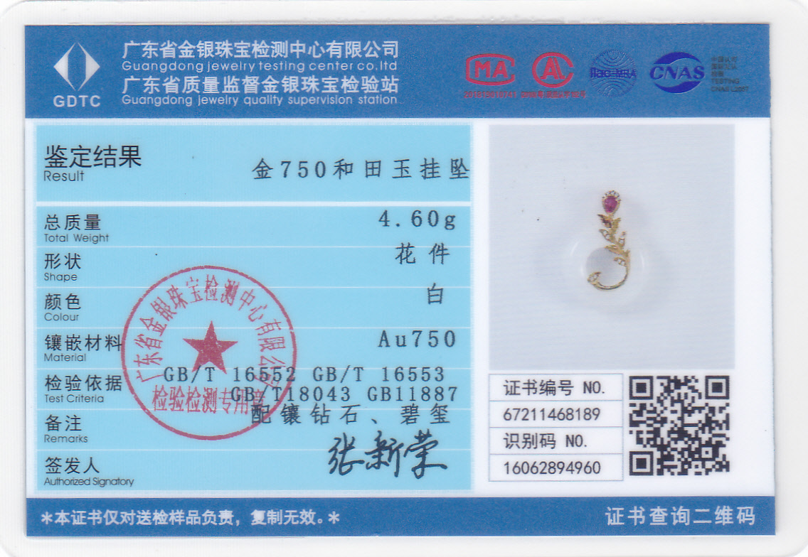 18K黄金和田玉(白玉)吊坠