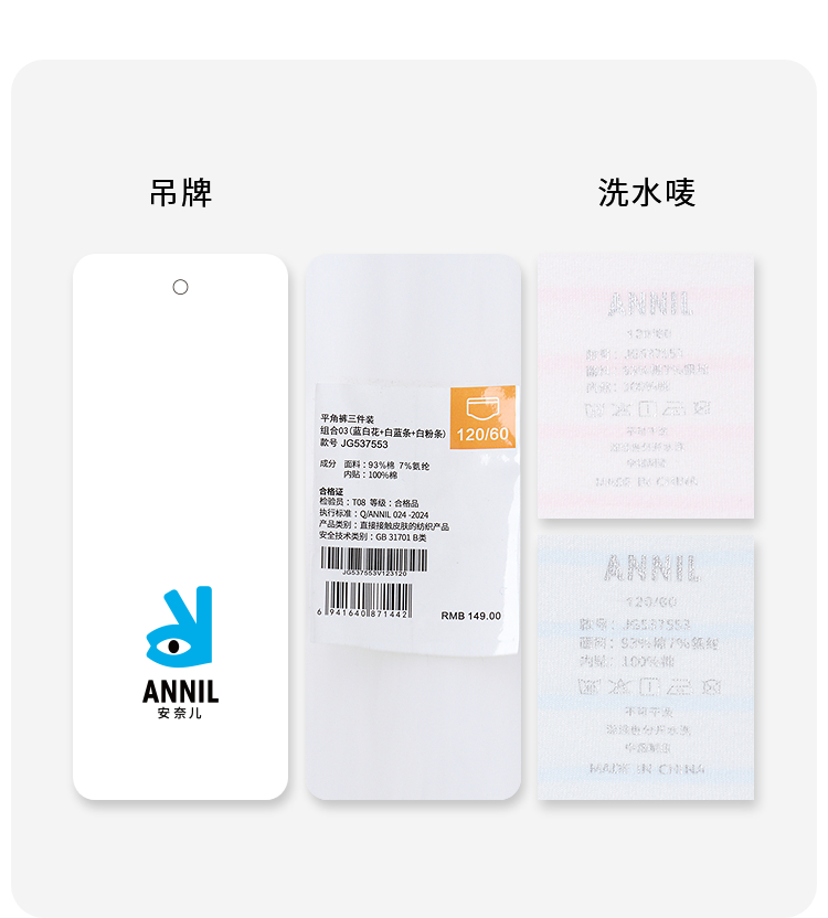 女童平角裤三件装秋季新款安奈儿童装JG537553