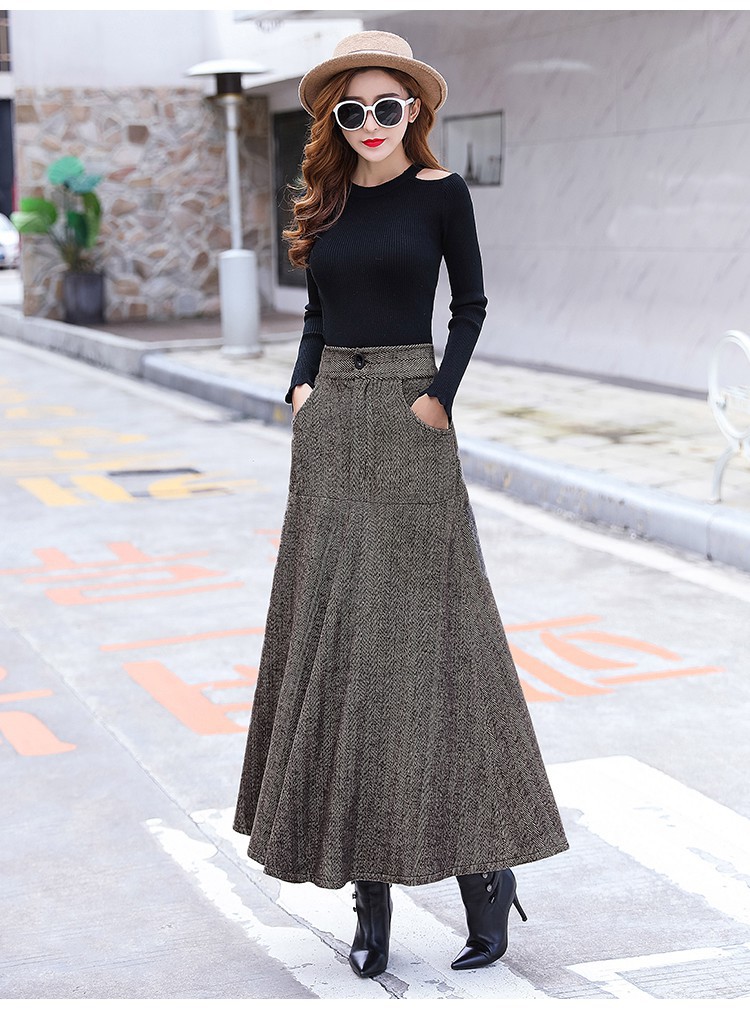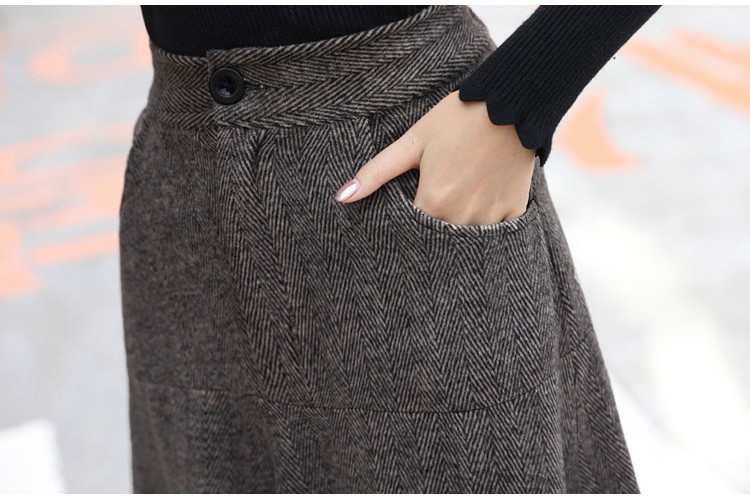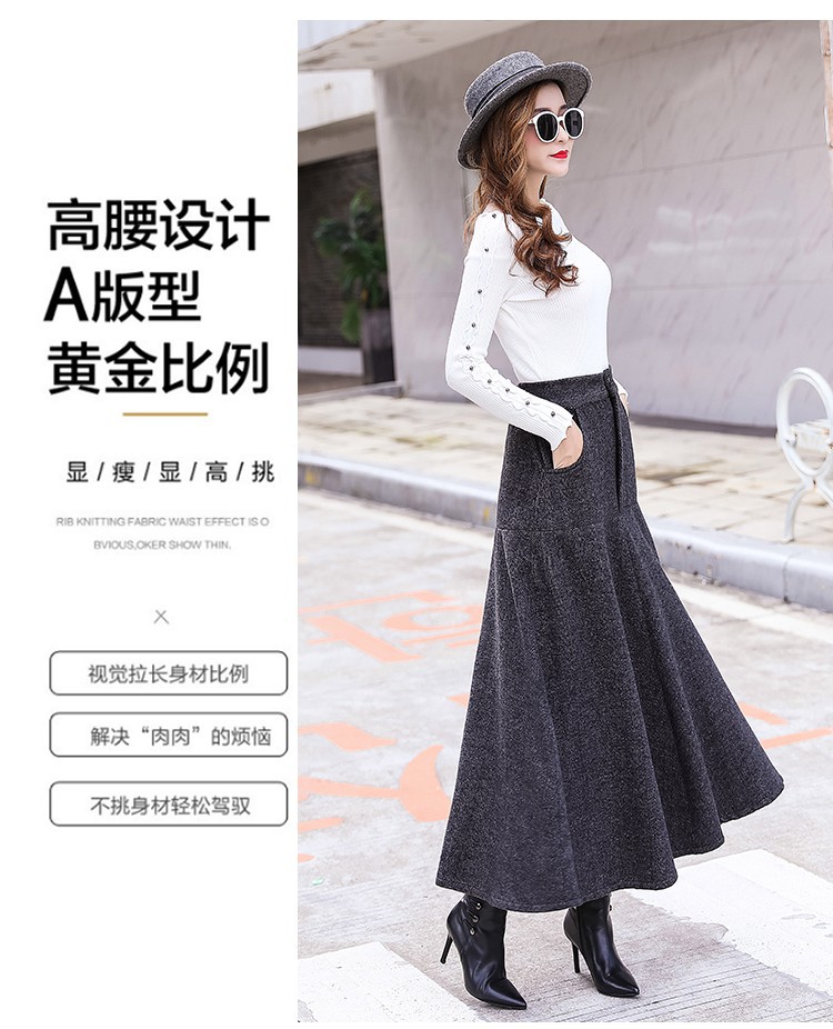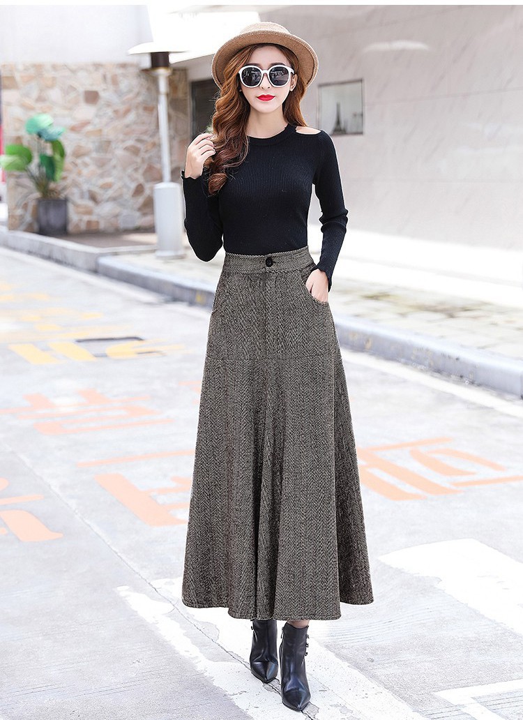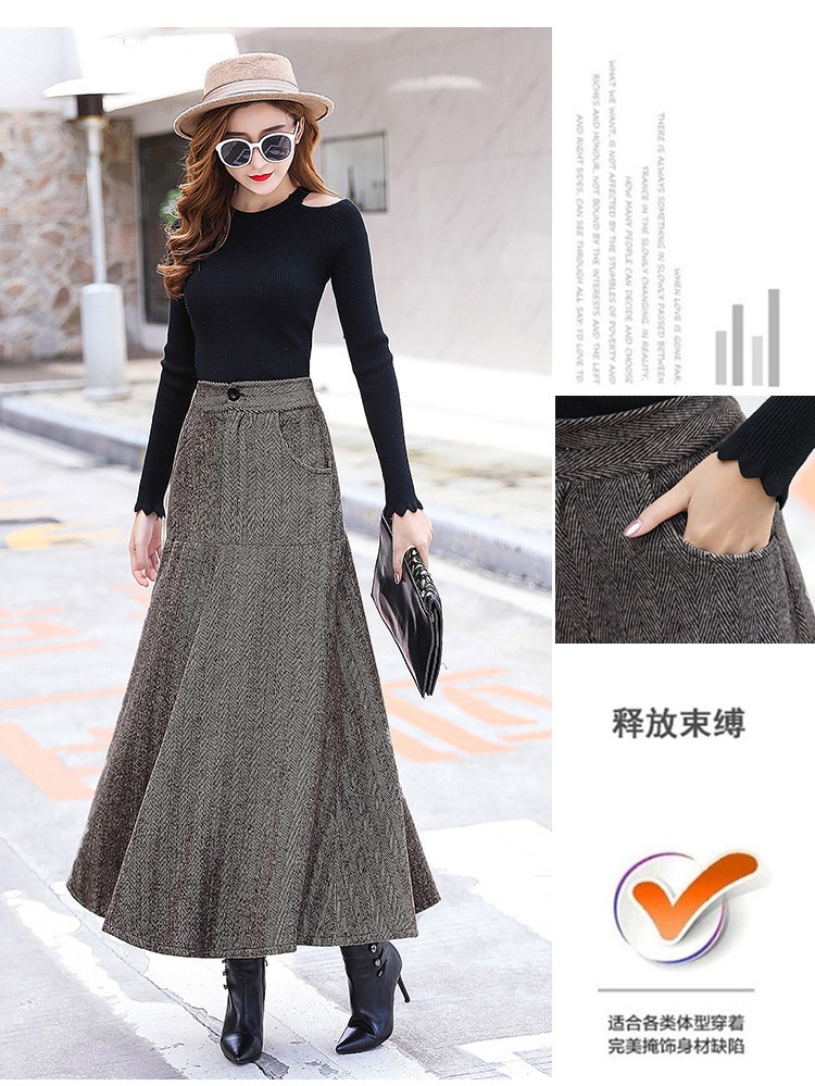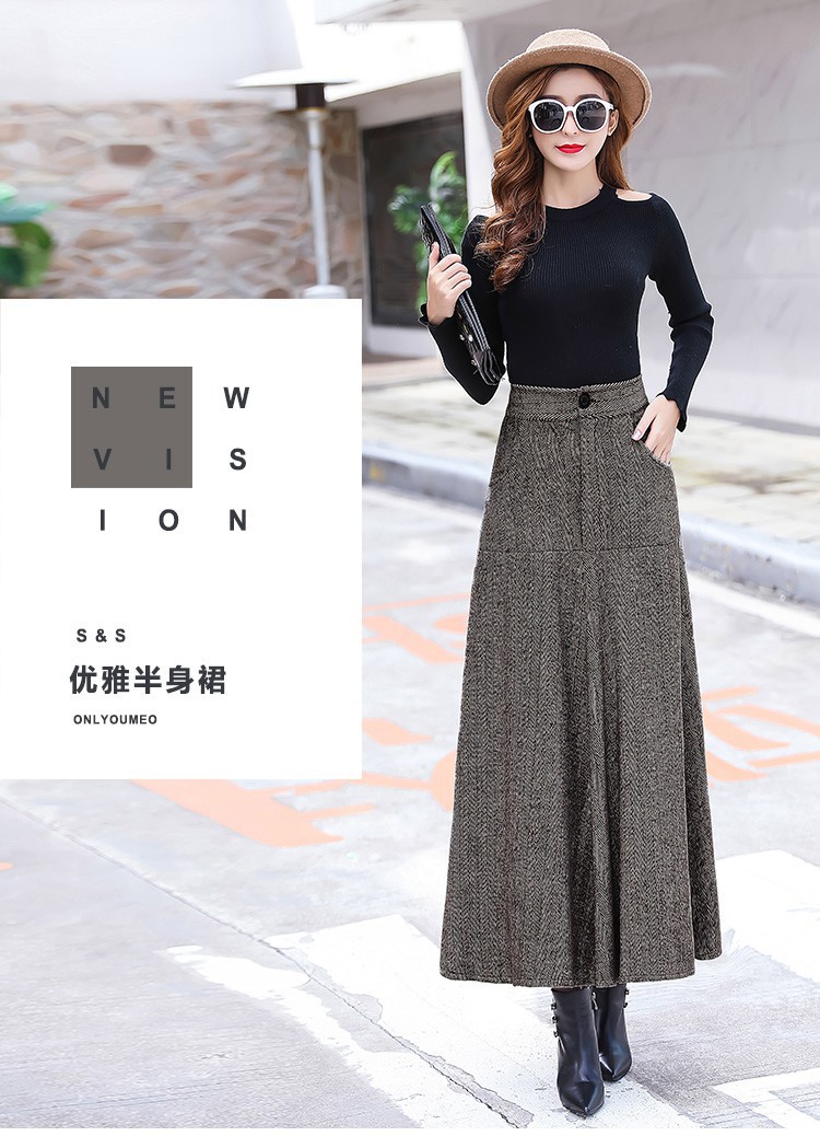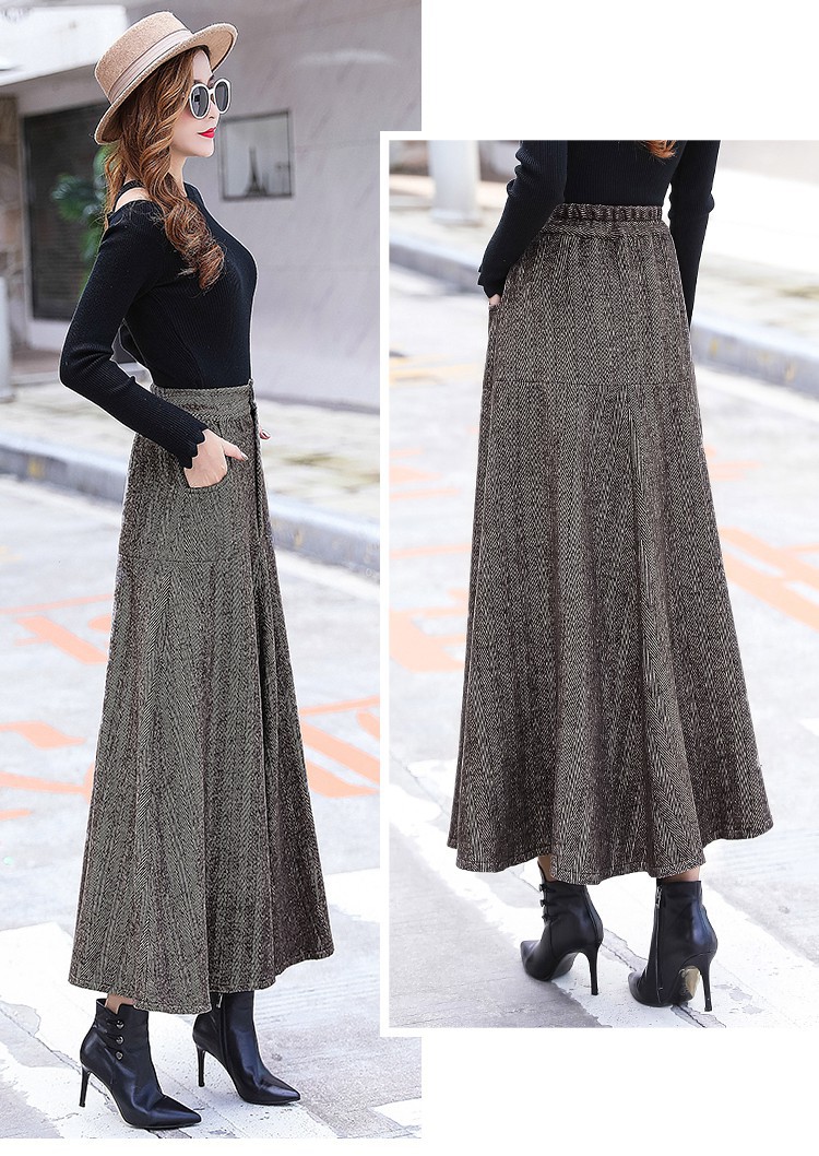 XTH-复古条纹长裙高腰大摆A字裙