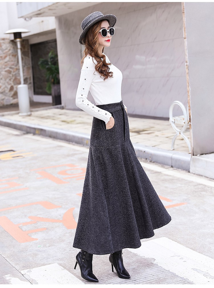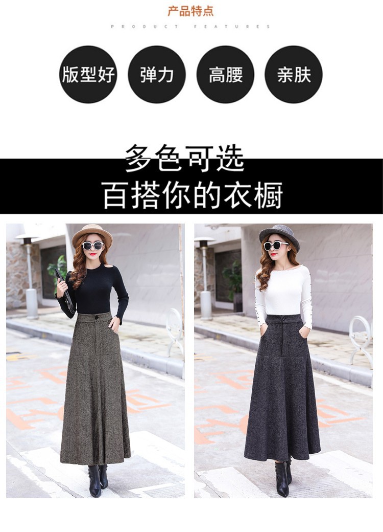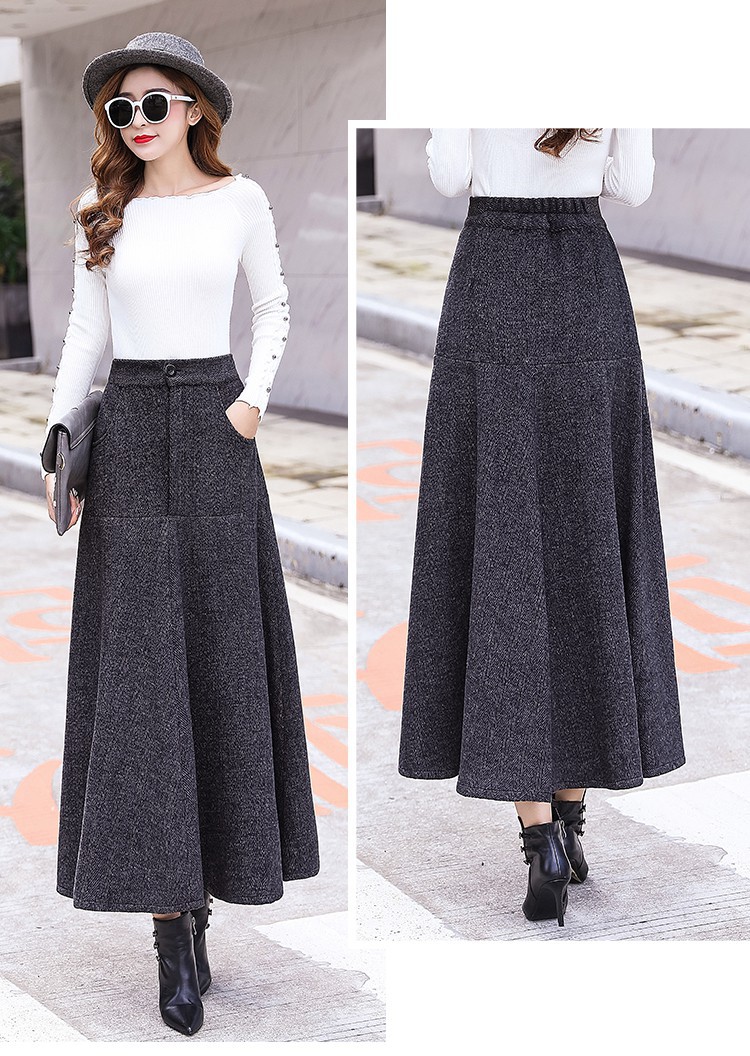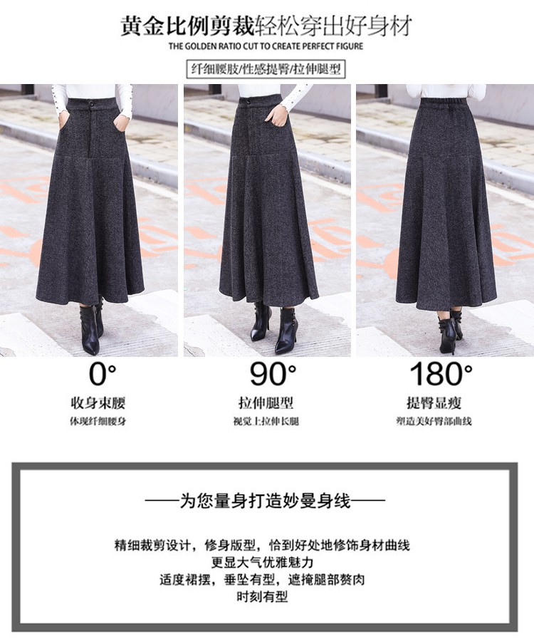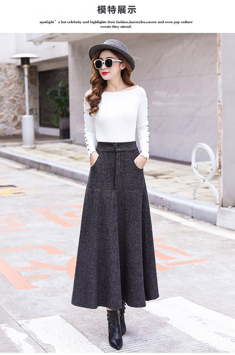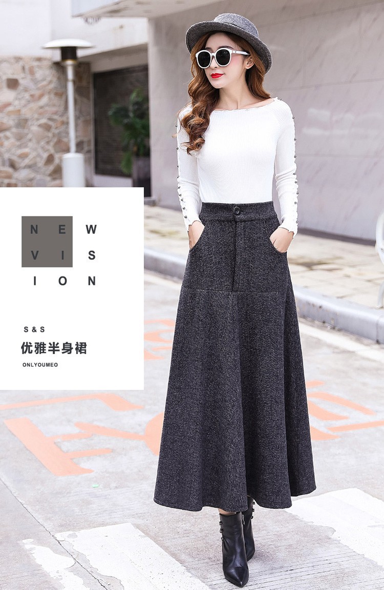 XTH-复古条纹长裙高腰大摆A字裙