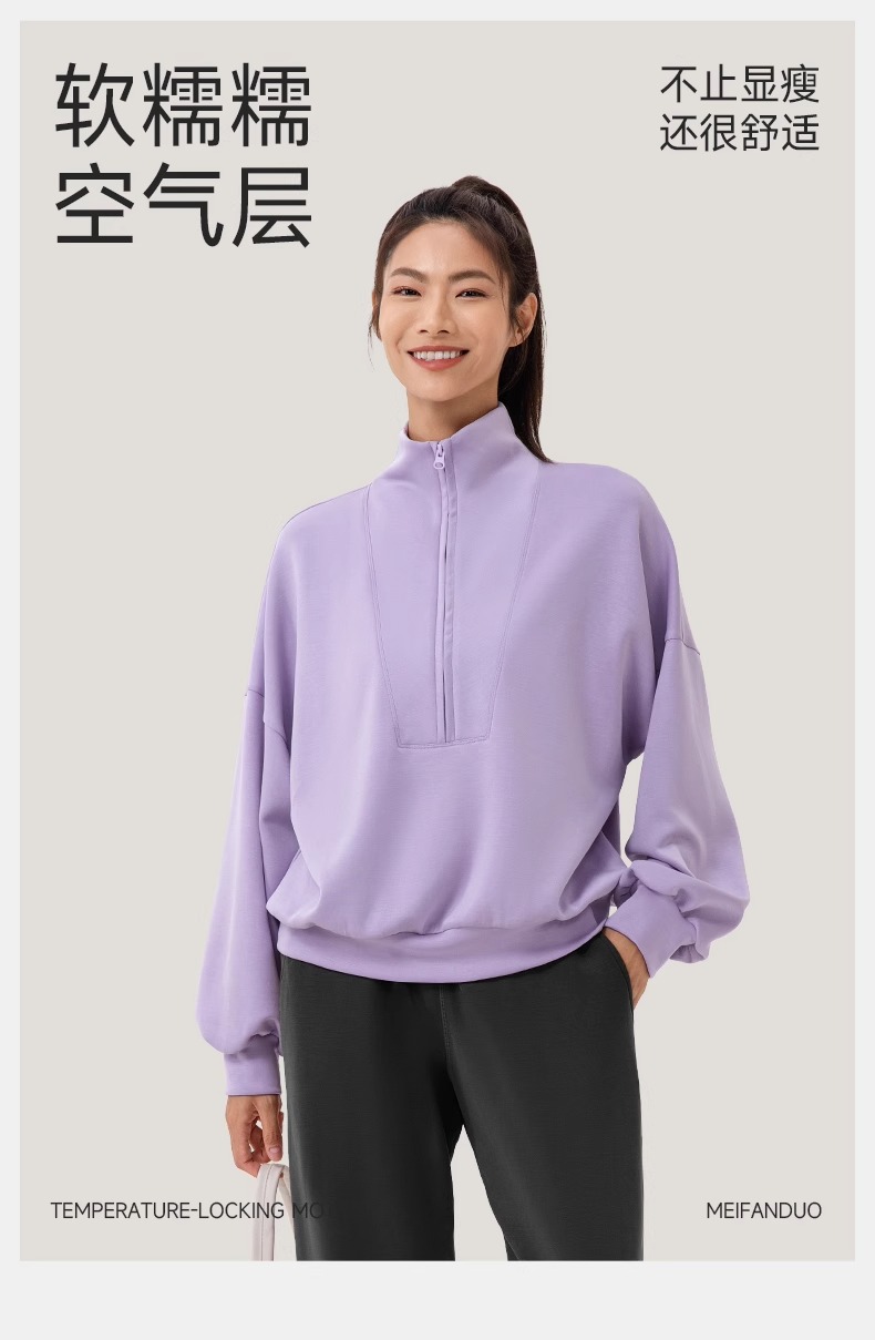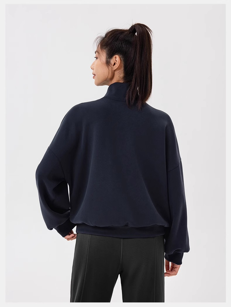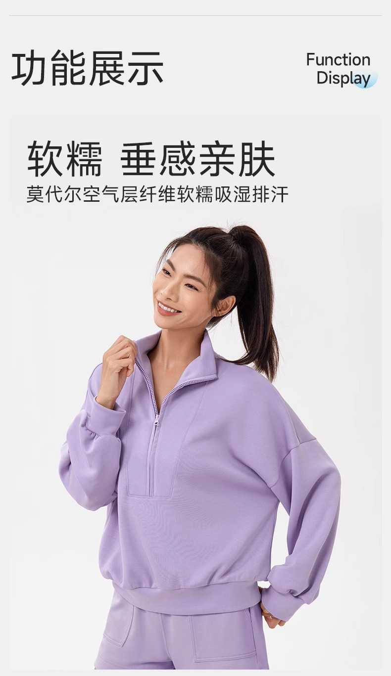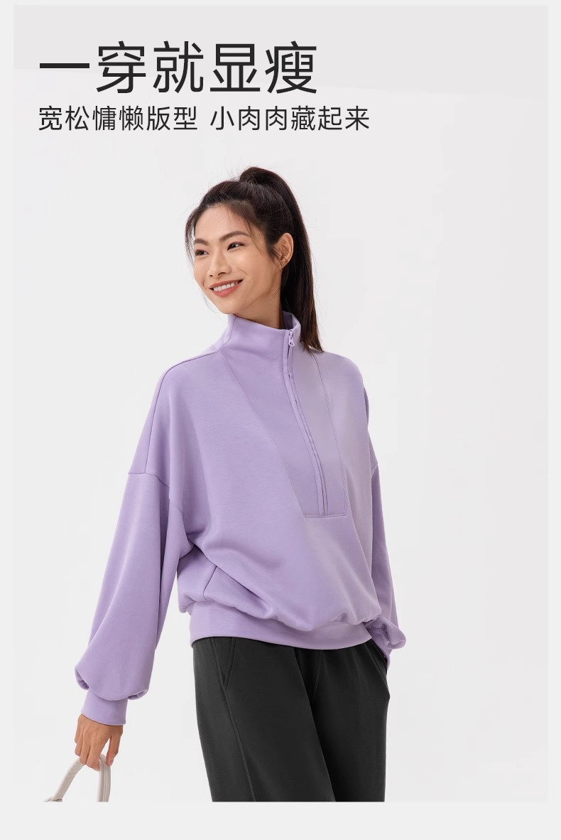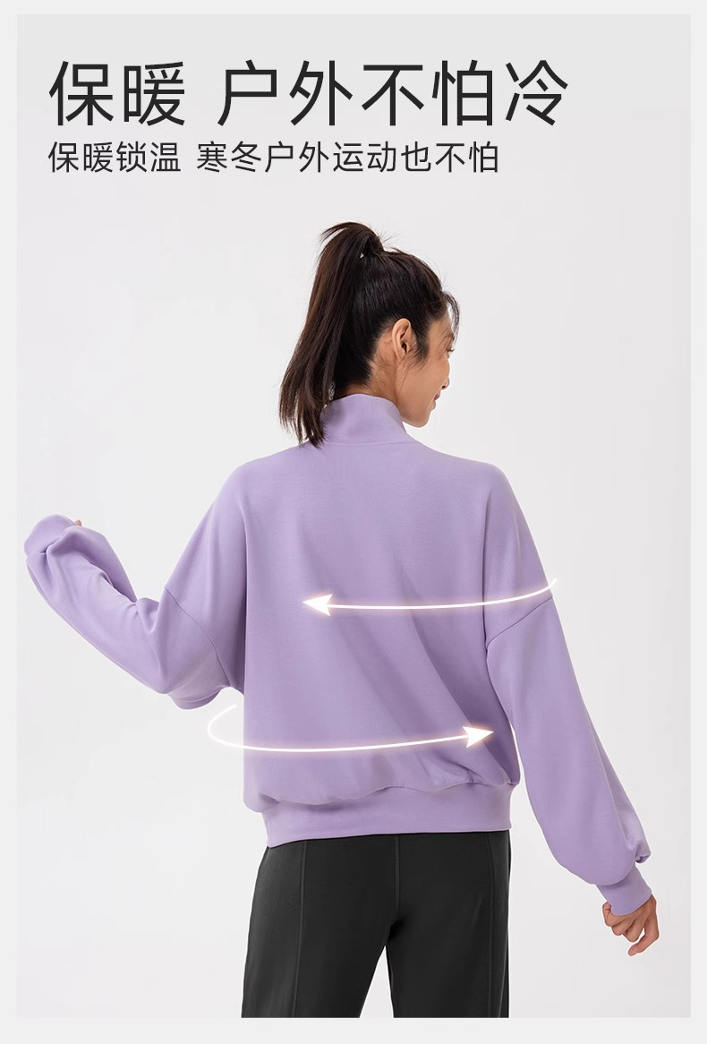 跃牌【欲动春风】系列 秋冬新款卫衣女莫代尔空气层宽松立领跑步健身休闲上衣24301