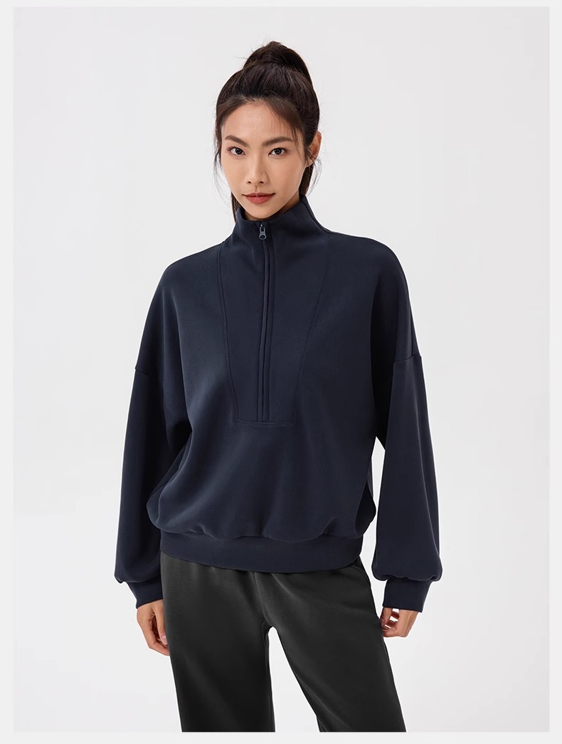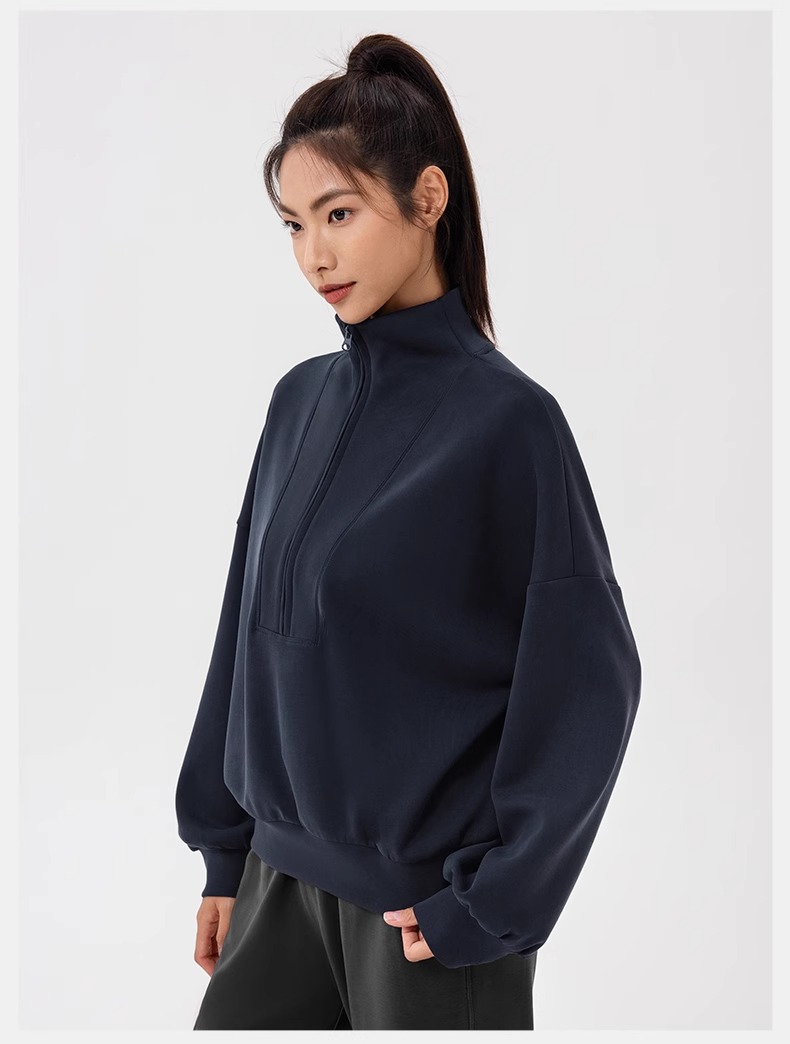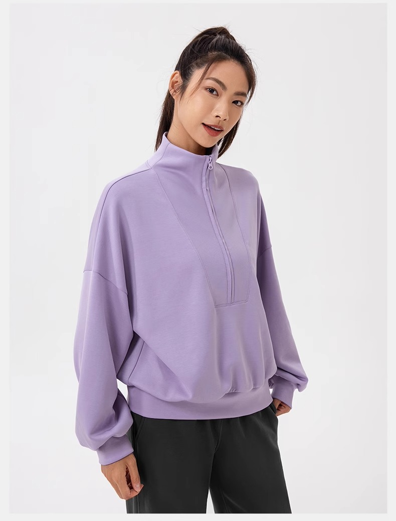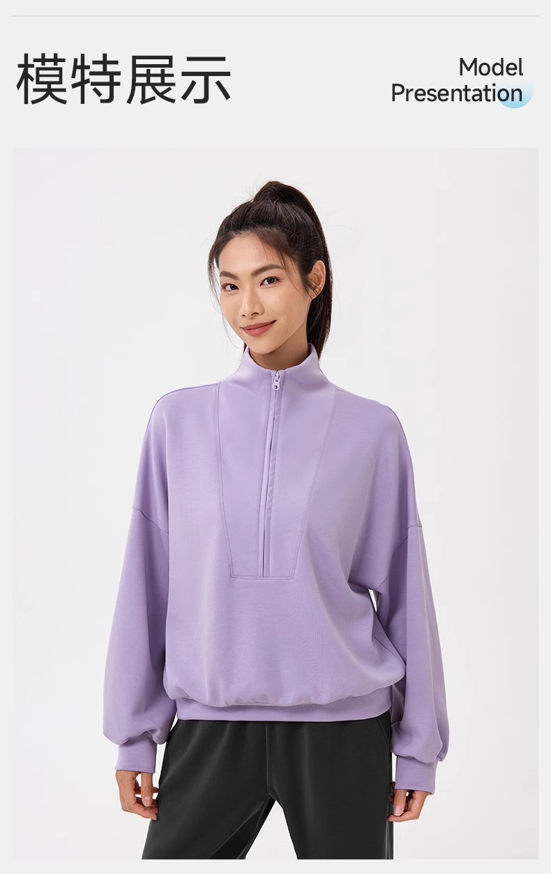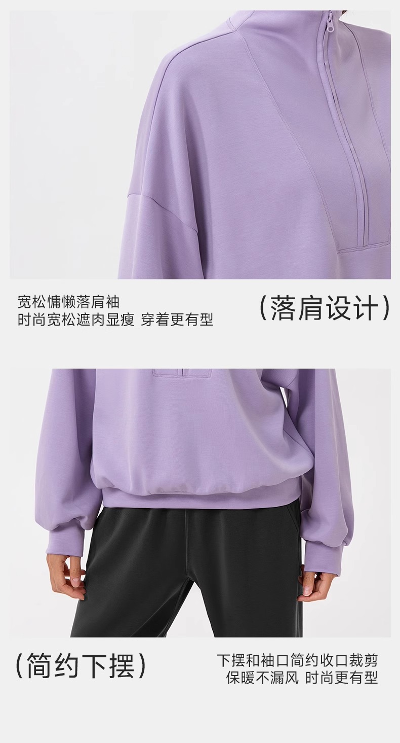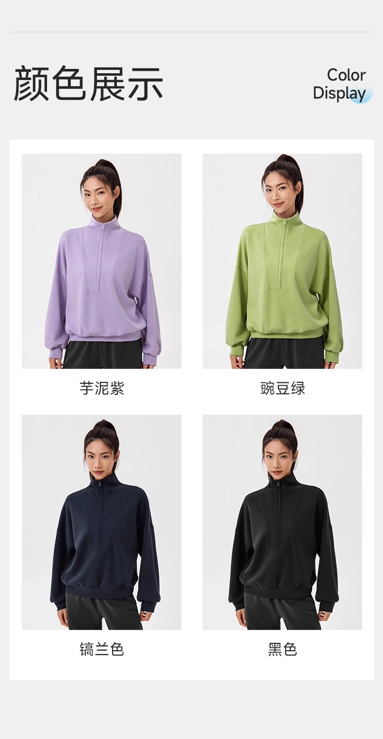 跃牌【欲动春风】系列 秋冬新款卫衣女莫代尔空气层宽松立领跑步健身休闲上衣24301