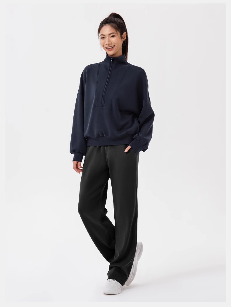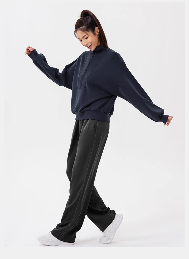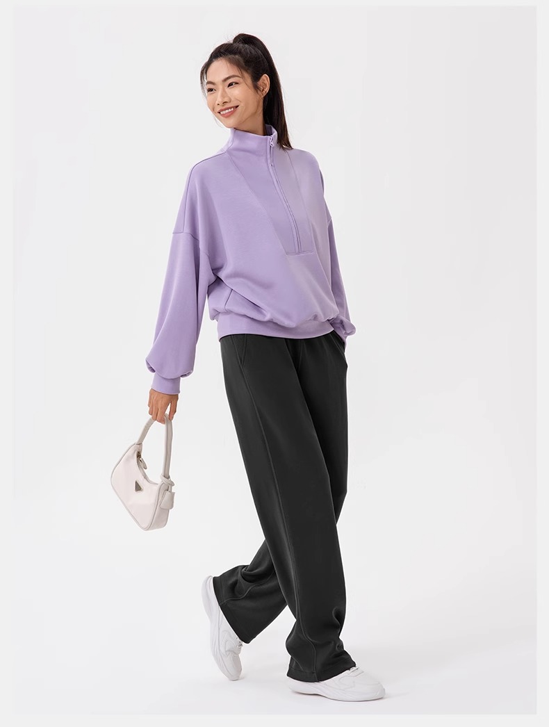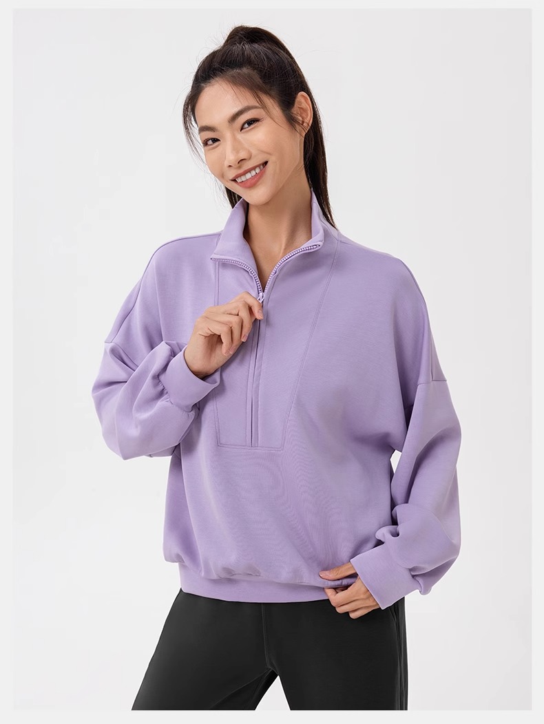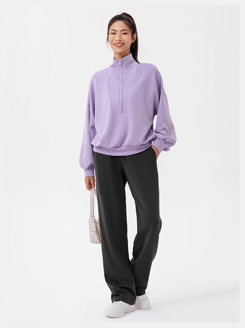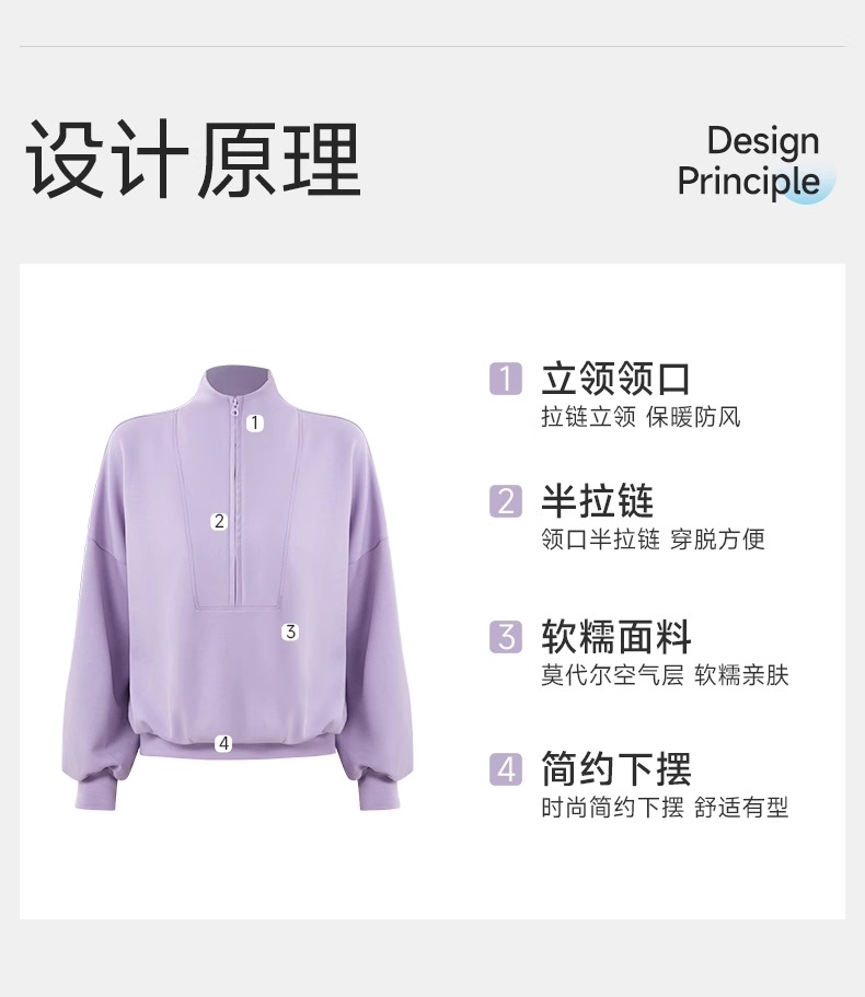 跃牌【欲动春风】系列 秋冬新款卫衣女莫代尔空气层宽松立领跑步健身休闲上衣24301