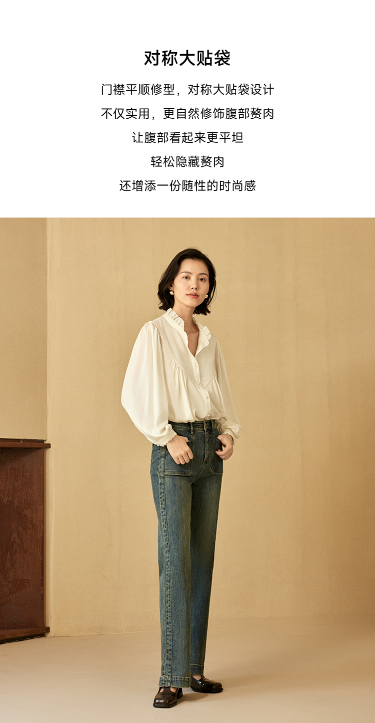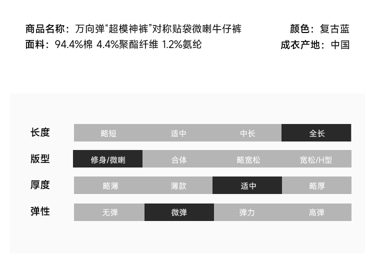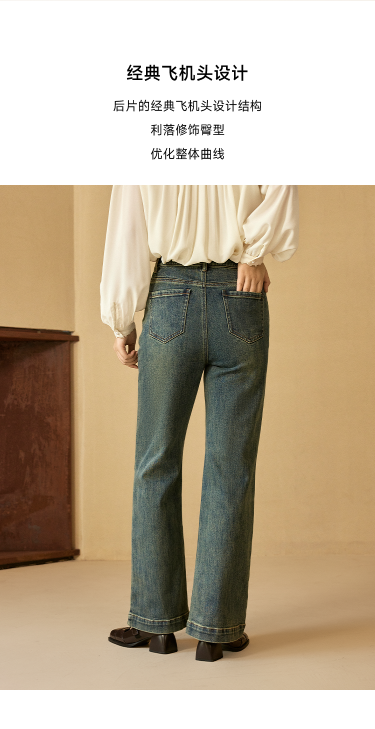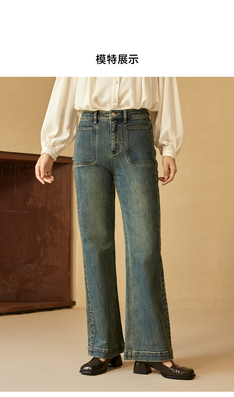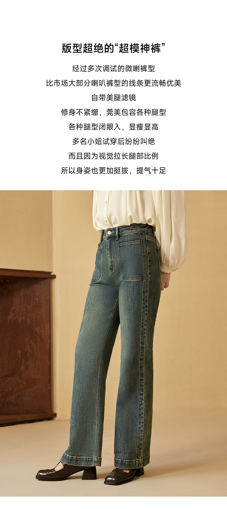 万向弹“超模神裤”对称贴袋微喇牛仔裤FCE3JEN183