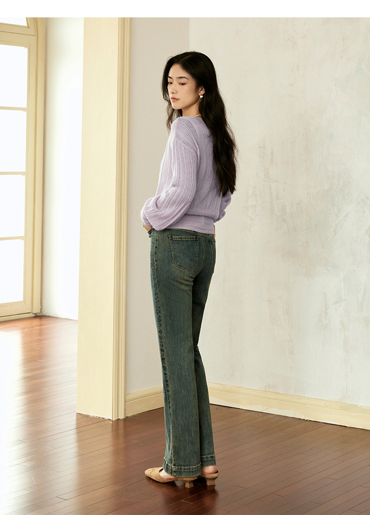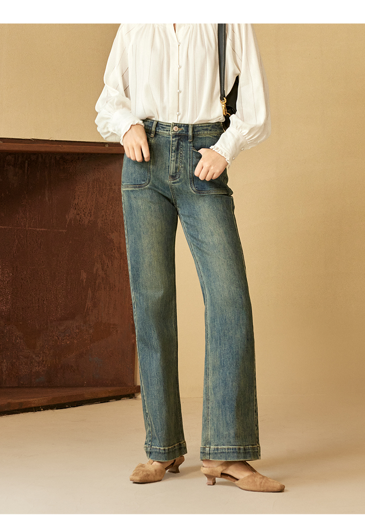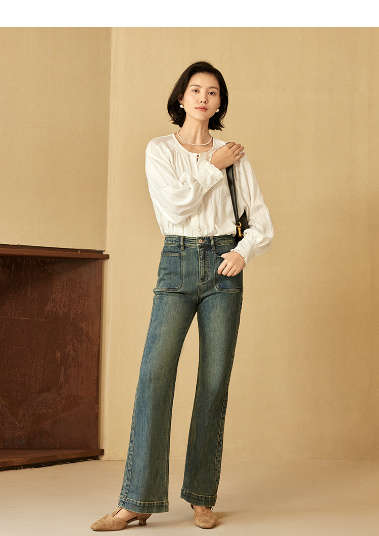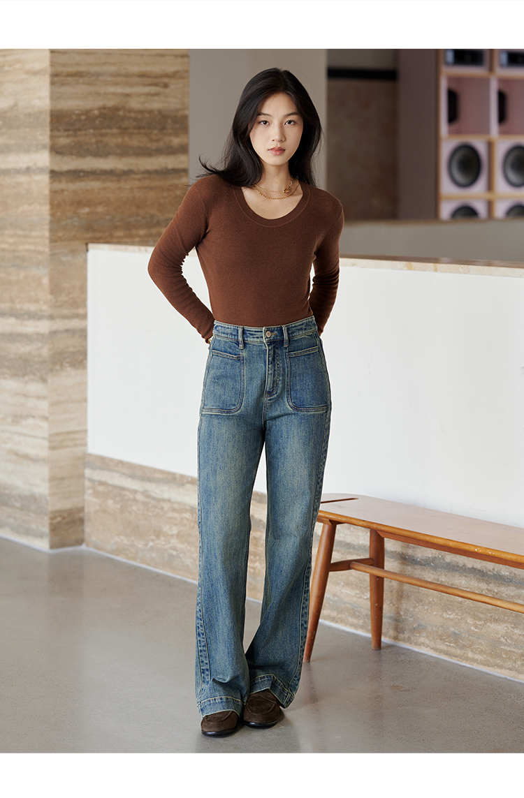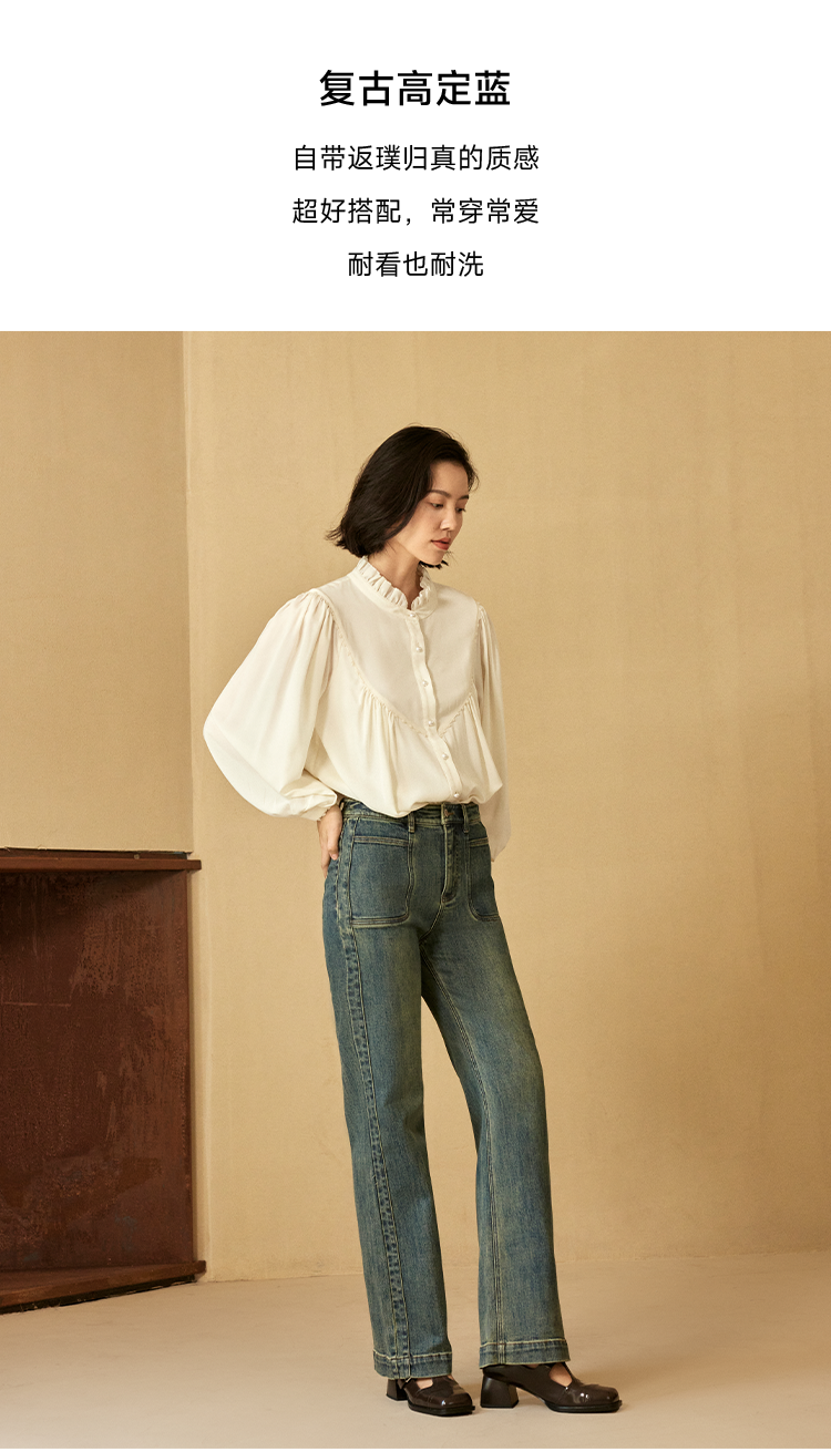 万向弹“超模神裤”对称贴袋微喇牛仔裤FCE3JEN183