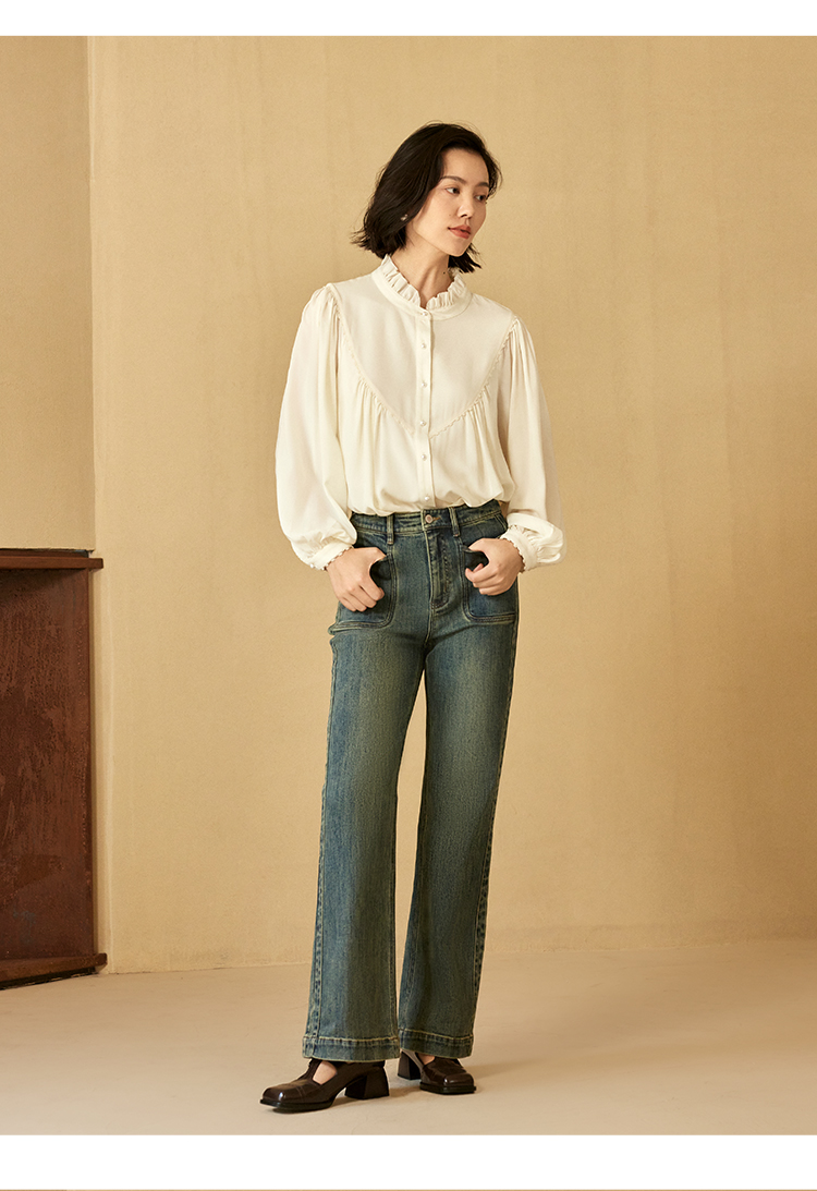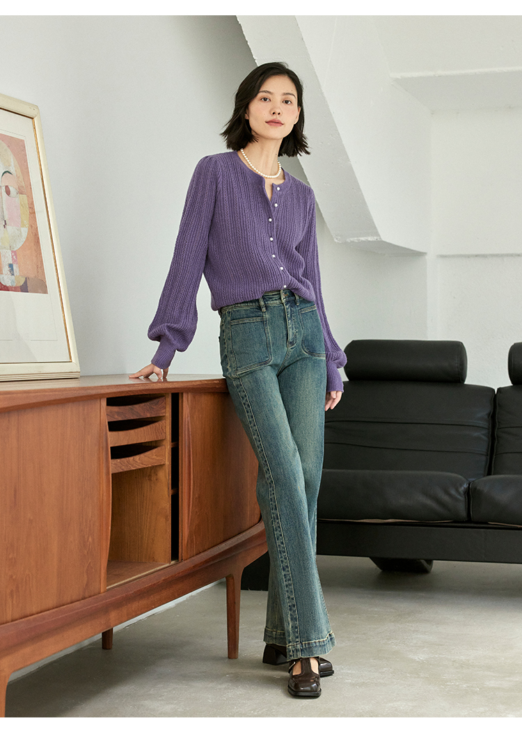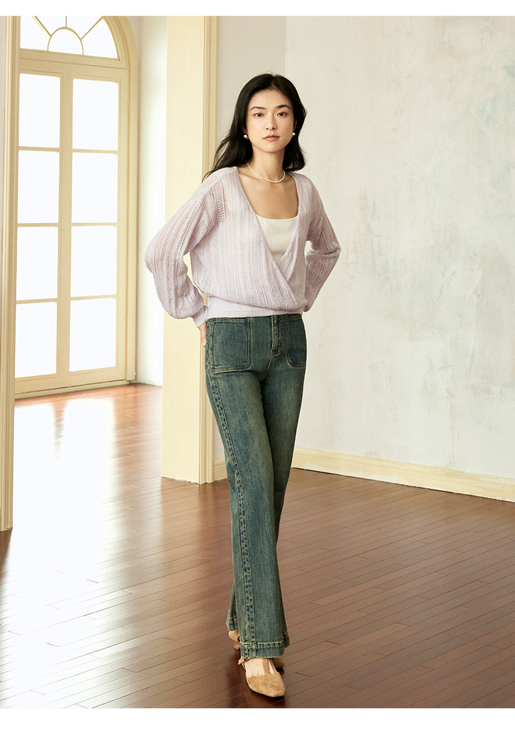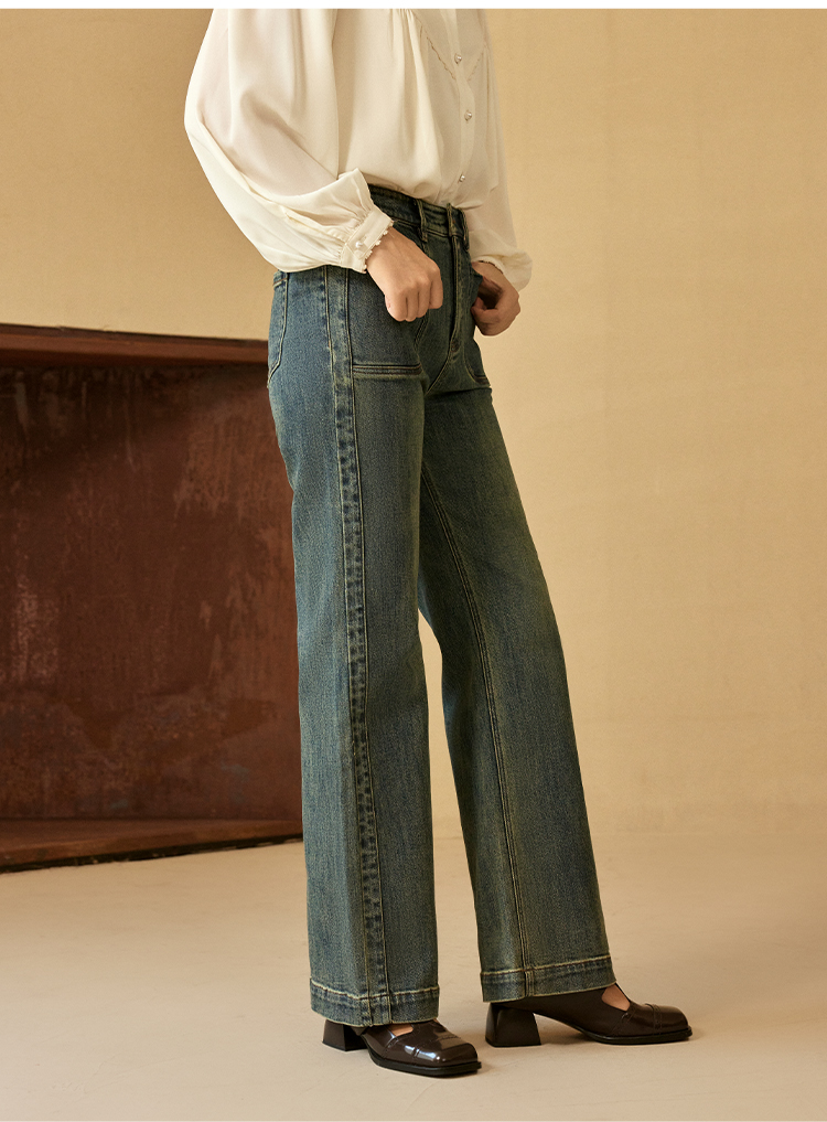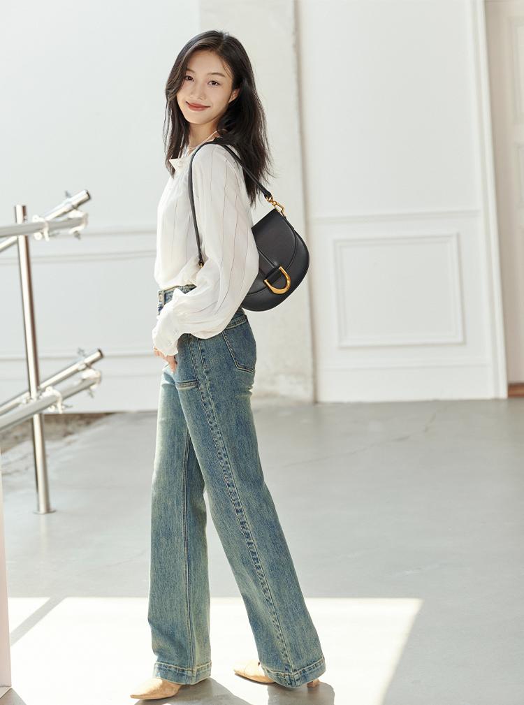 万向弹“超模神裤”对称贴袋微喇牛仔裤FCE3JEN183