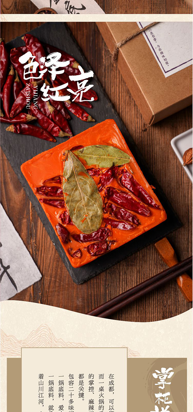 【温馨提示】收到后,建议将火锅底料密封冷藏储存;开袋后,请在一周内食用完毕。