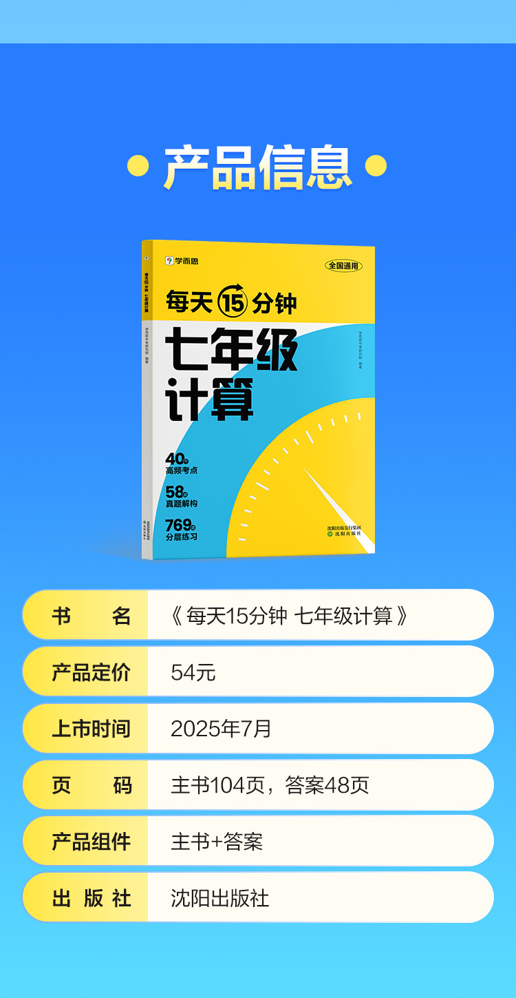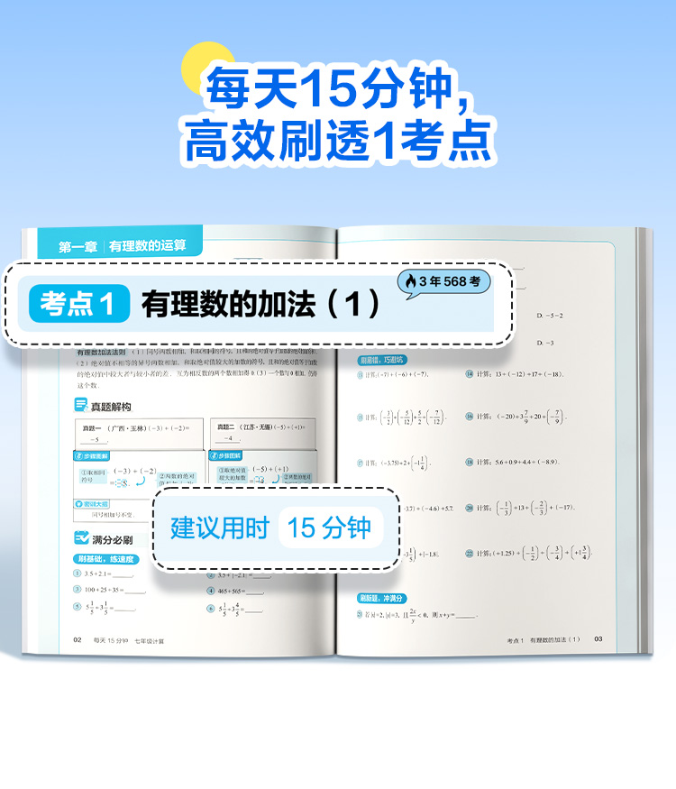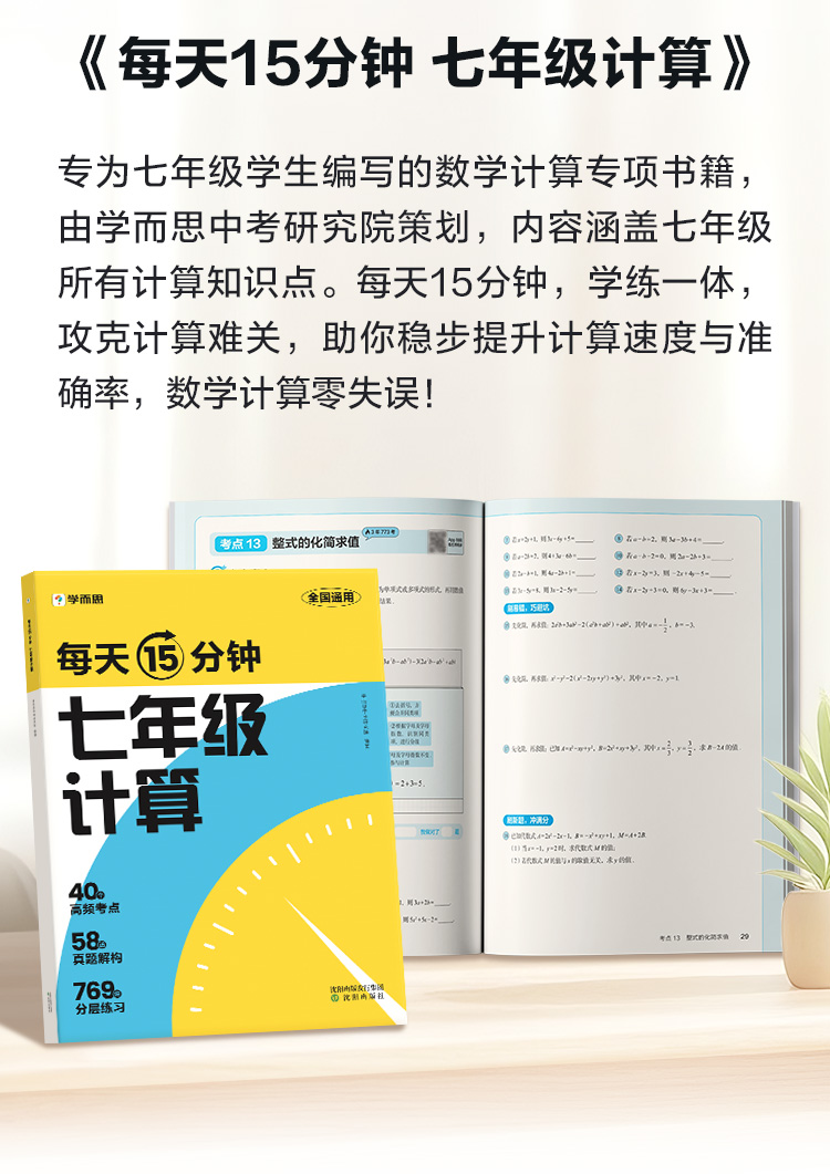 学而思图书2025版七年级初中数学计算全覆盖每天15分钟分层练习计算不丢分