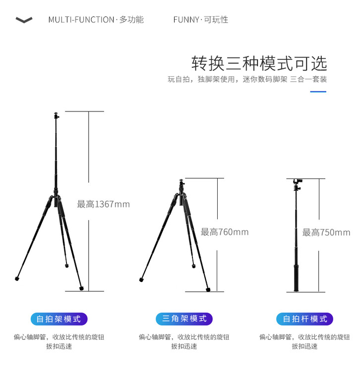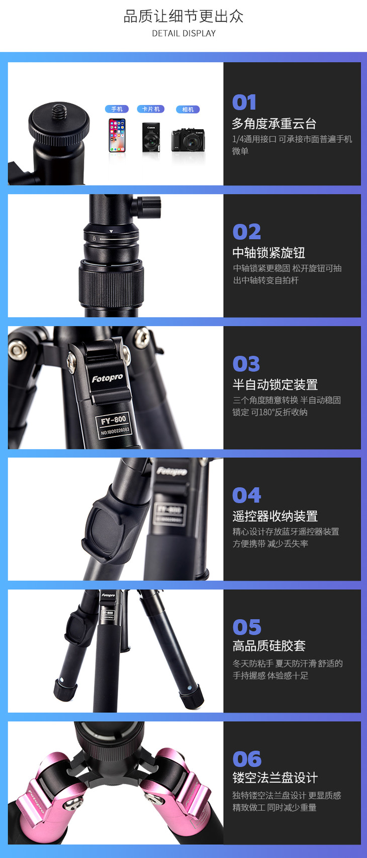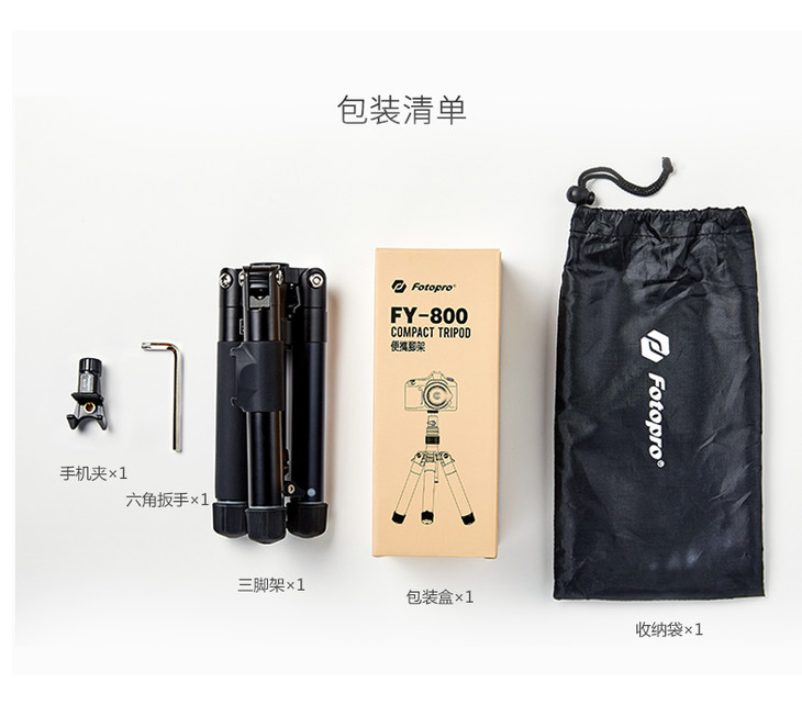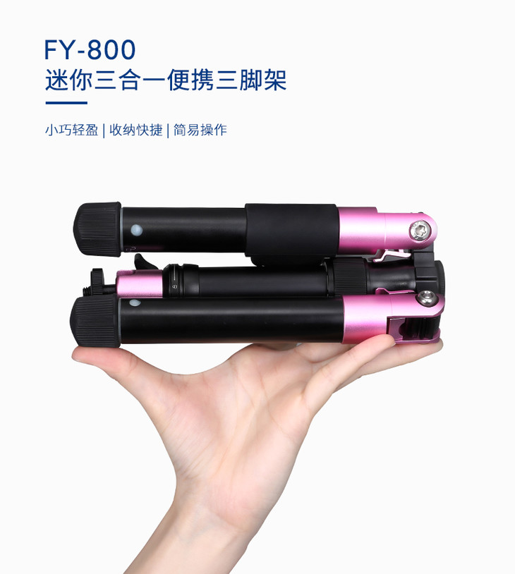富图宝FY800微单三脚架单反相机手机gopro通用户外直播多功能超轻便携迷你小型旅行摄影拍照自拍摄像三角支架
