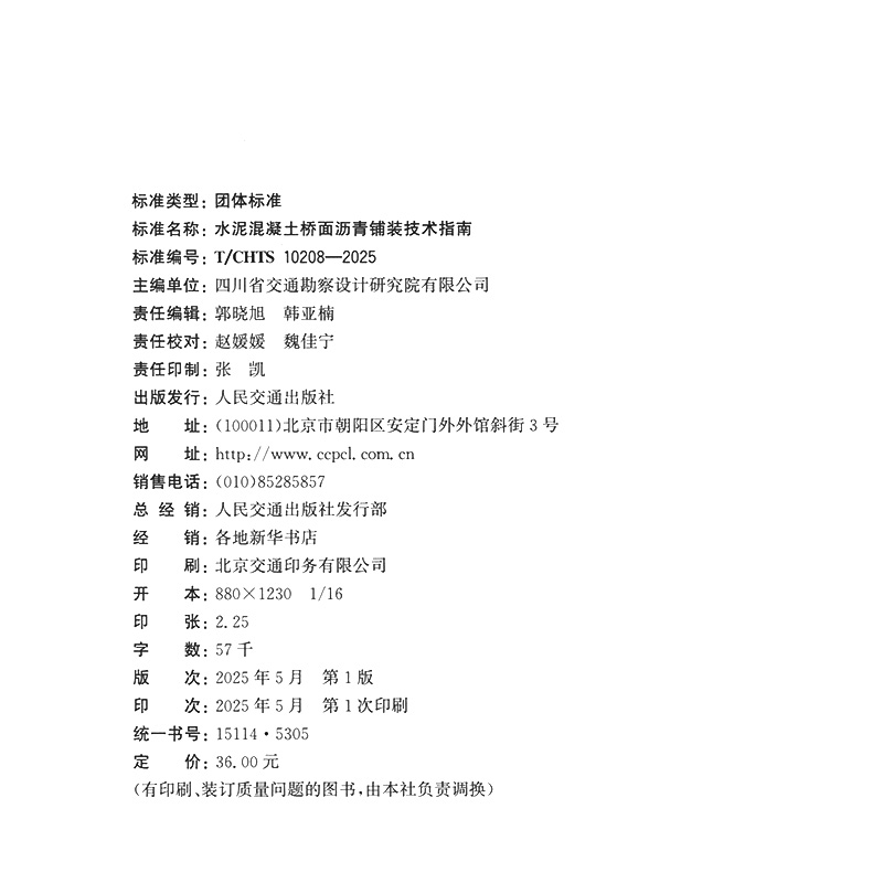 书名:水泥混凝土桥面沥青铺装技术指南(T/CHTS 10208—2025)