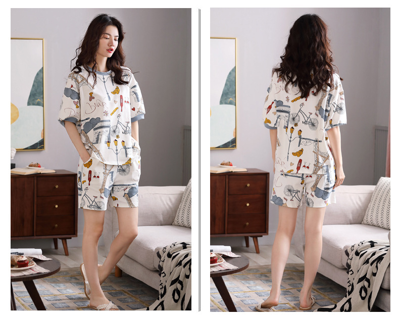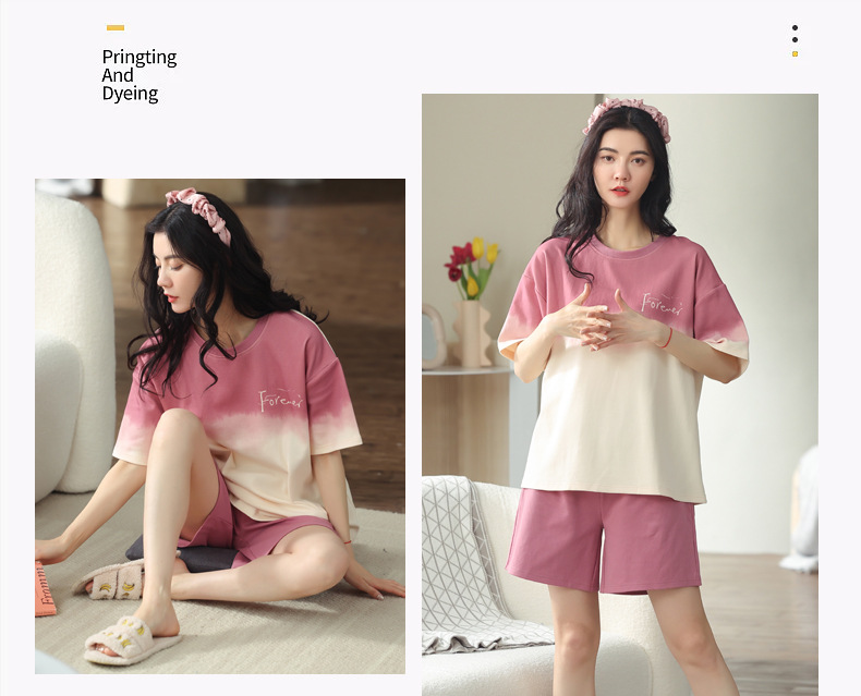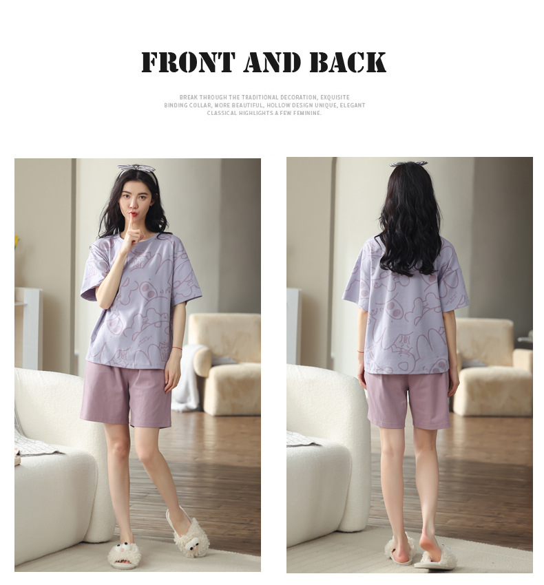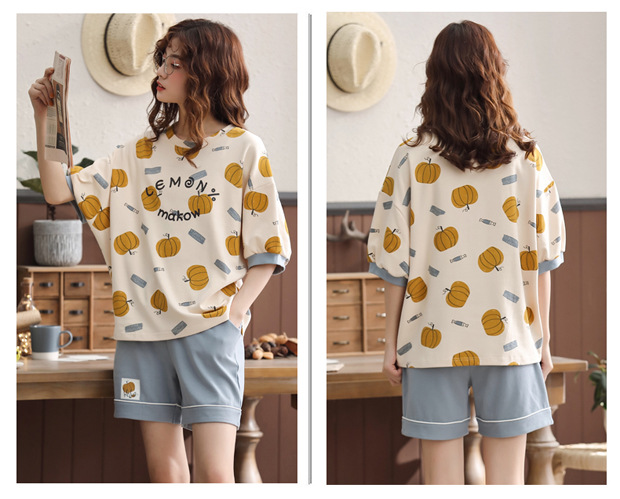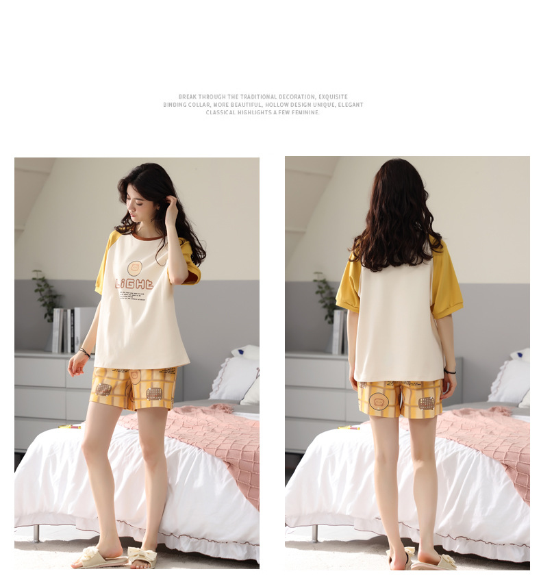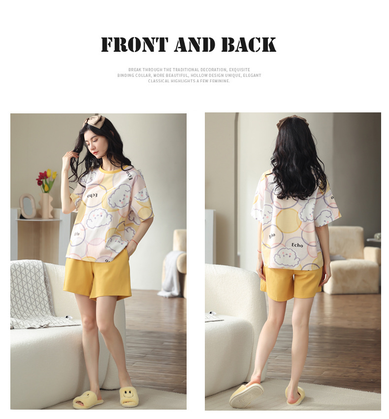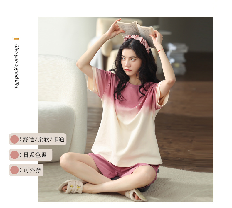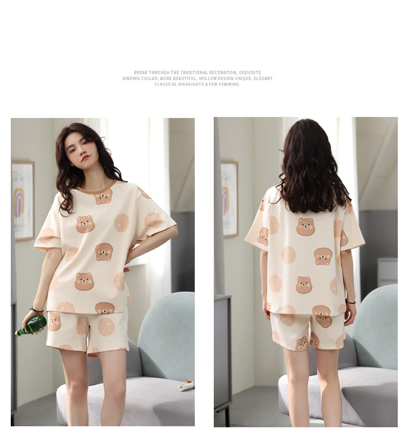 【可外出纯棉家居服】女士夏季全棉短袖睡衣套装 甜美可外穿家居服套装