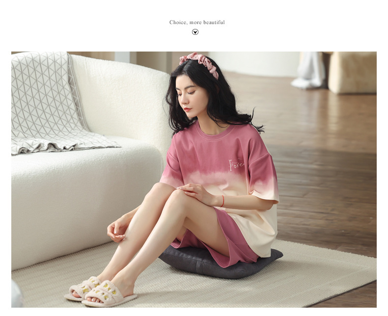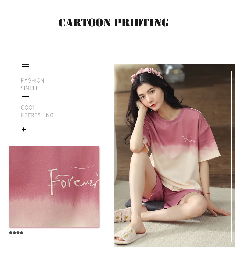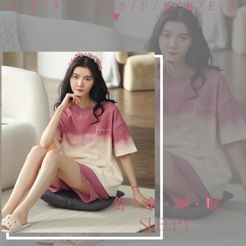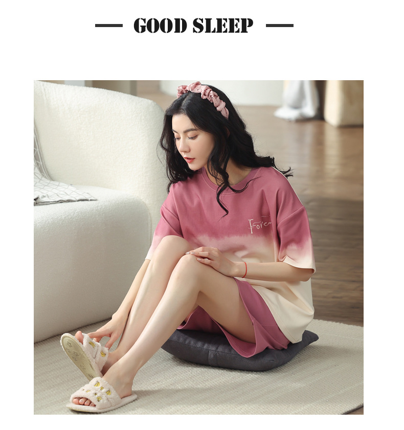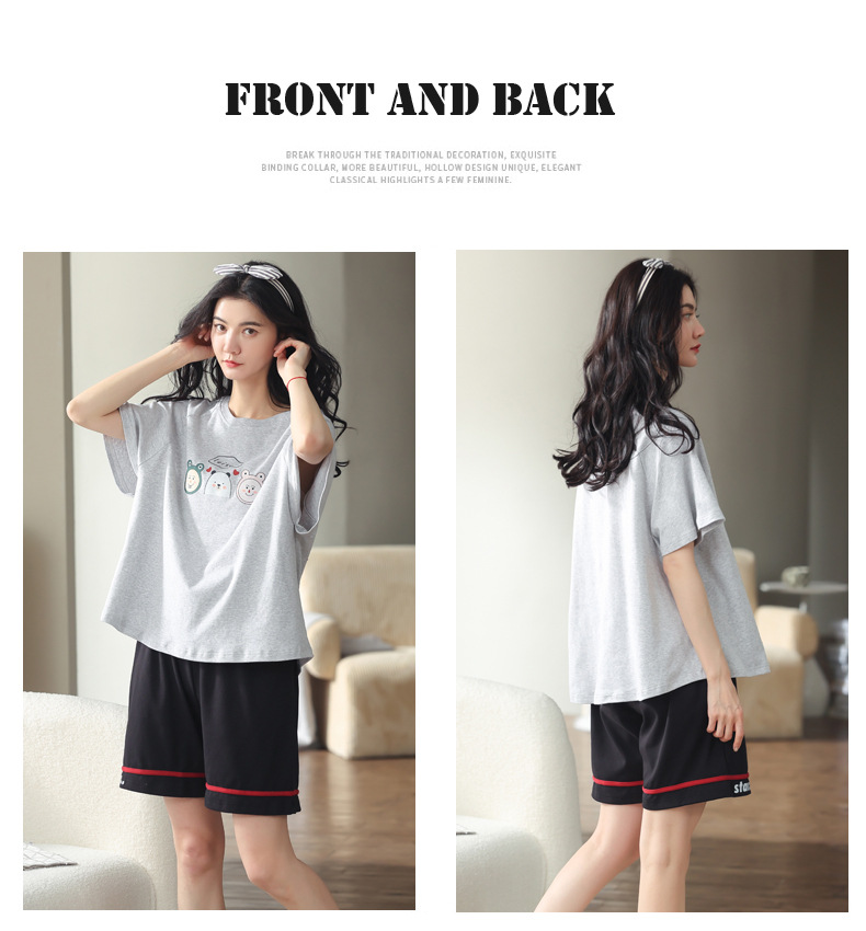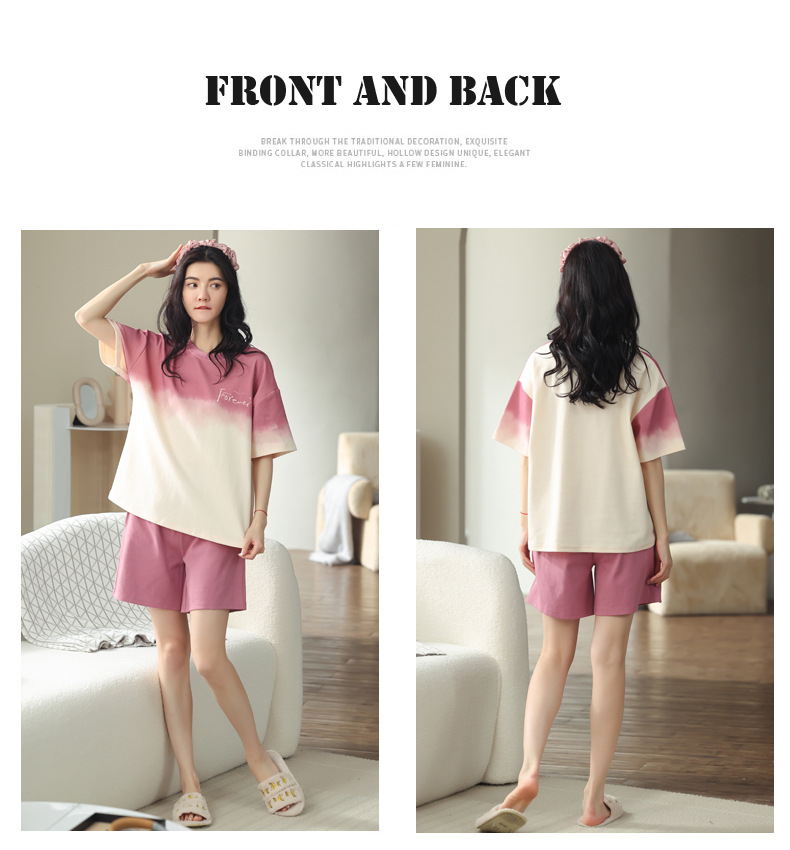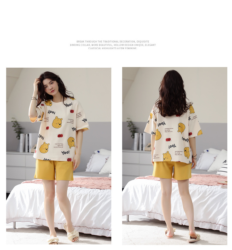 【可外出纯棉家居服】女士夏季全棉短袖睡衣套装 甜美可外穿家居服套装
