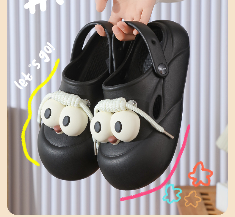【可爱大眼仔❗趣味洞洞鞋】新款diy卡通包头拖鞋女夏季外穿厚底踩屎感凉鞋女两穿洞洞鞋。ri