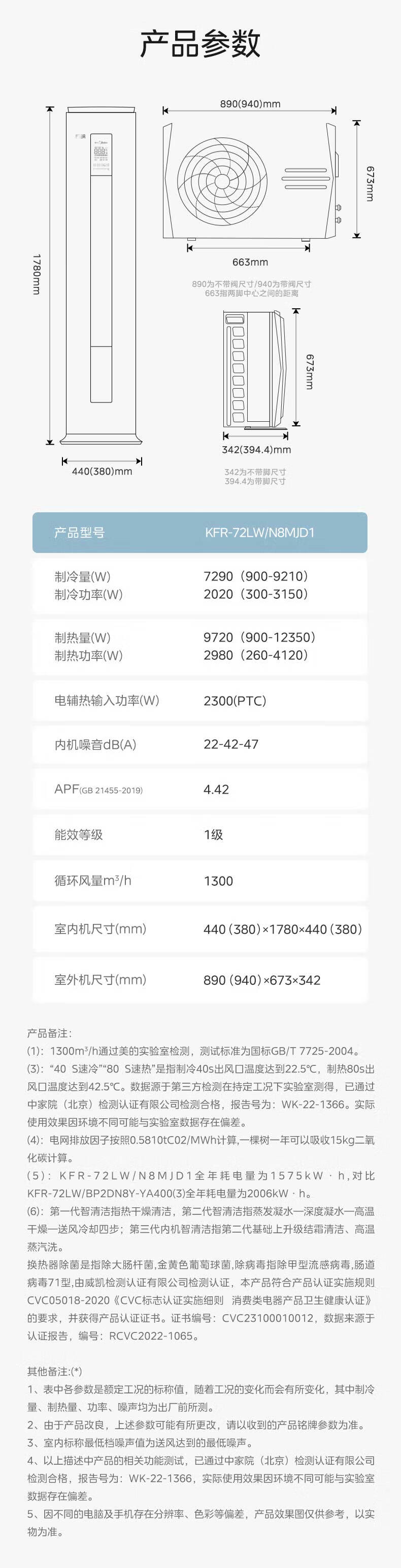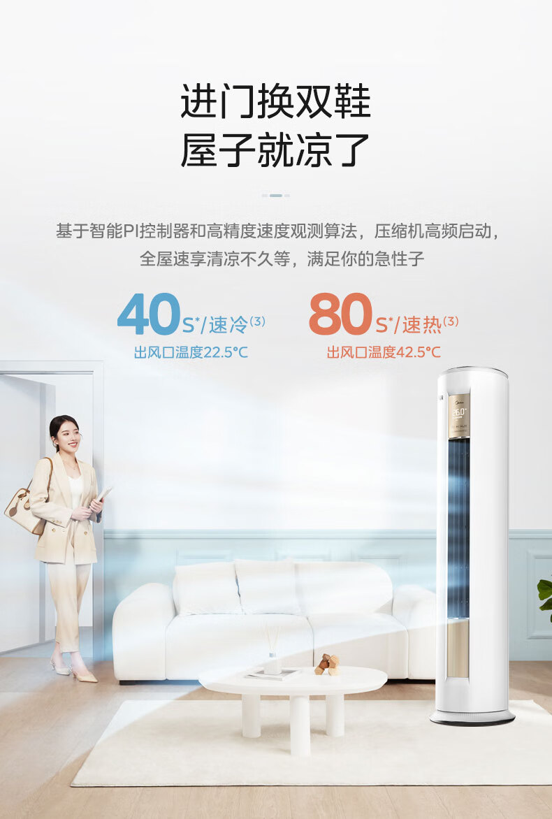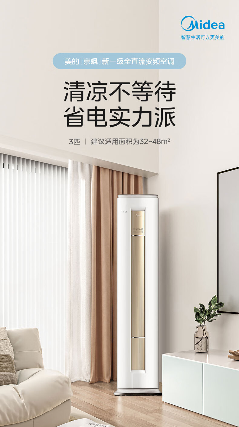 美的(Midea)3匹 京飒 新一级能效 变频冷暖 自清洁 40秒速冷 第四代智清洁 wifi智能控制 客厅圆柱空调立式柜机 KFR-72LW/N8MJD1