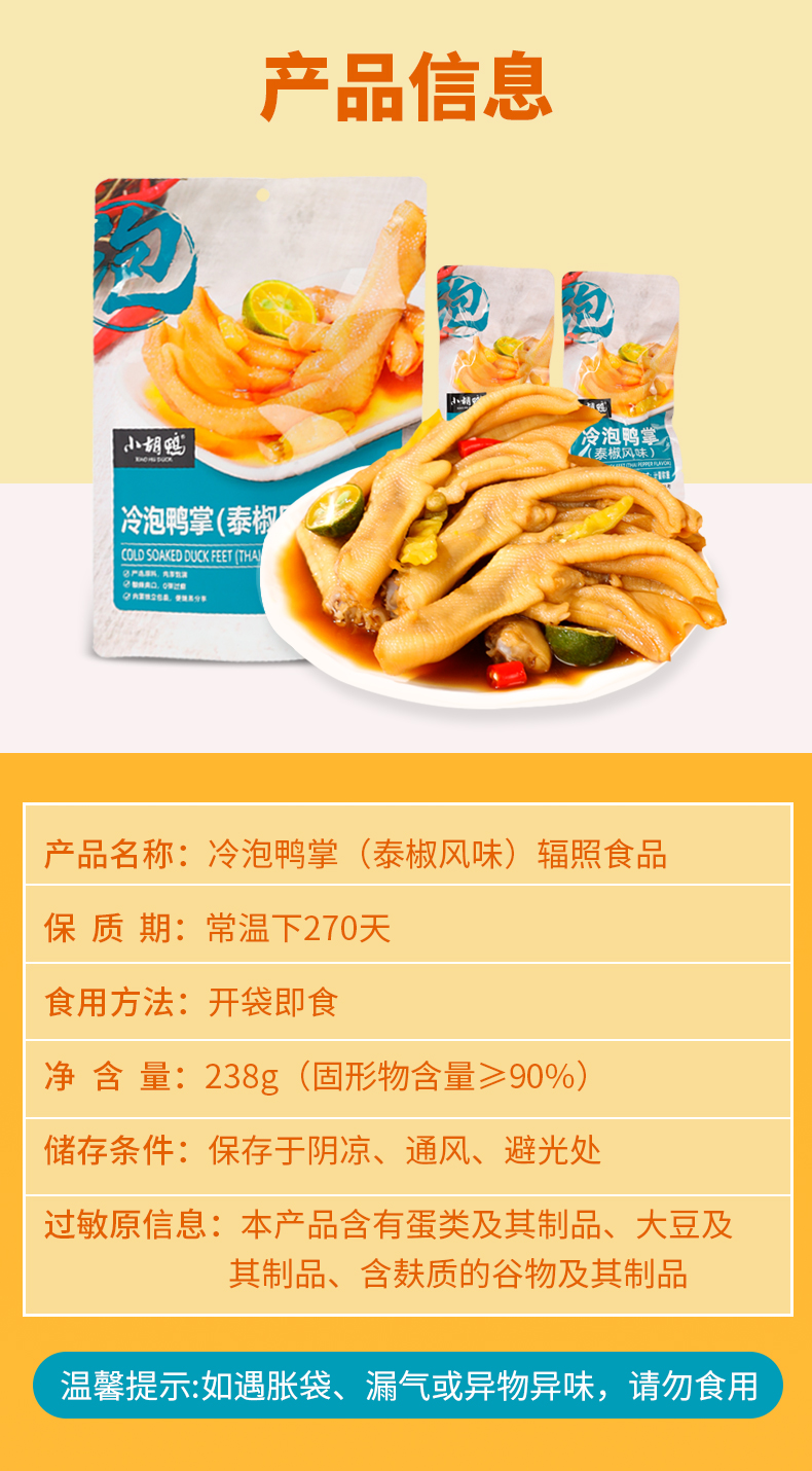 小胡鸭 冷泡鸭掌 泰椒风味 酸辣味 238g