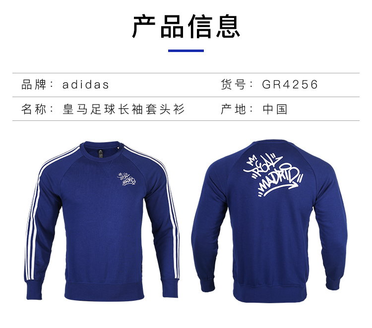 ADIDAS/阿迪达斯皇马足球休闲成人套头卫衣男GR4256