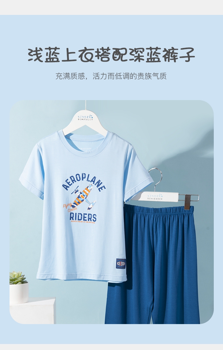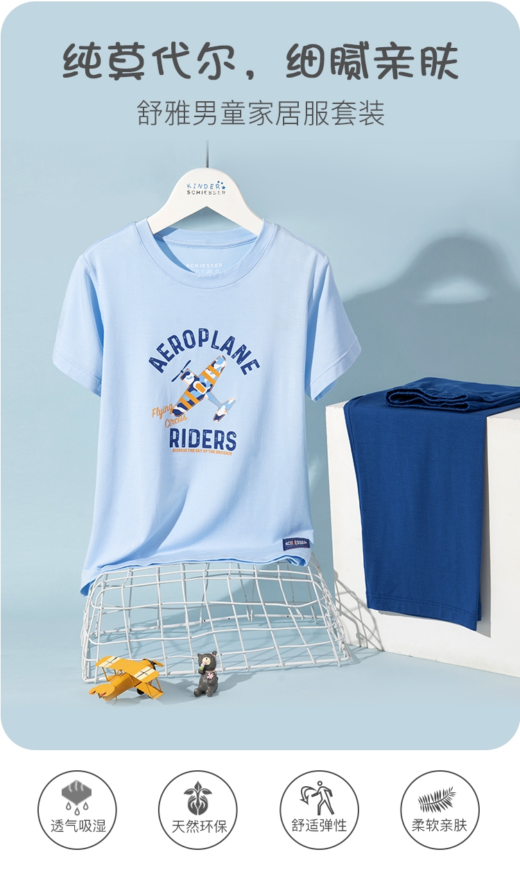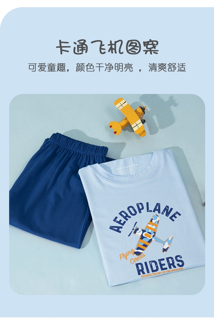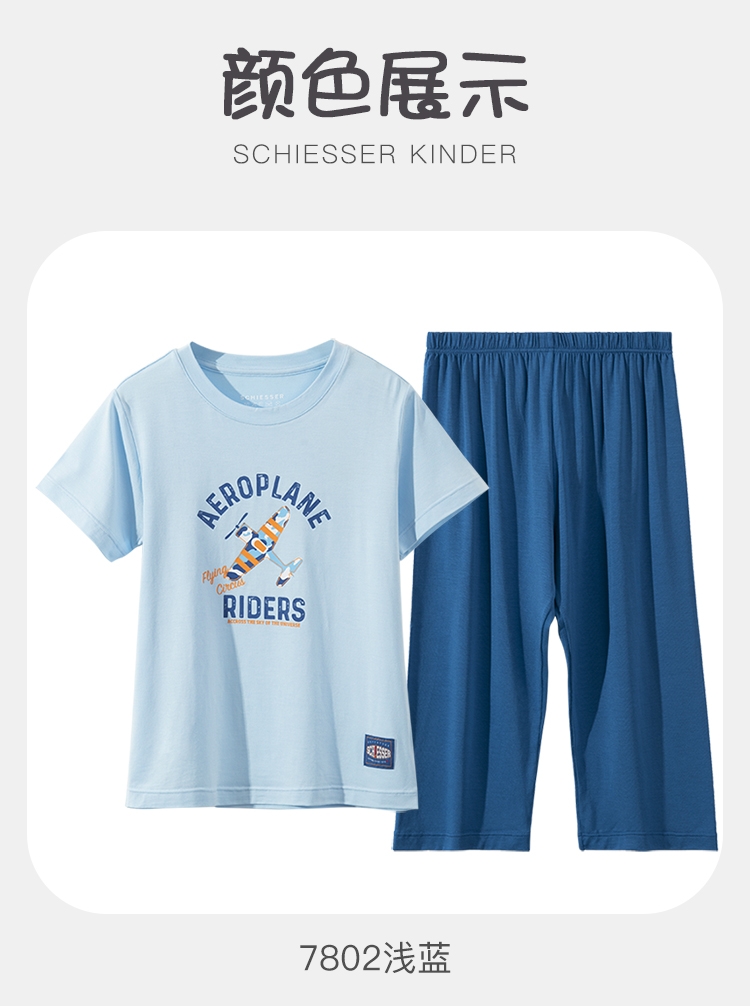 【印花莫代尔】SCHIESSER舒雅儿童睡衣2023春夏新款莫代尔男童卡通短袖七分裤家居服套装3B-20830H