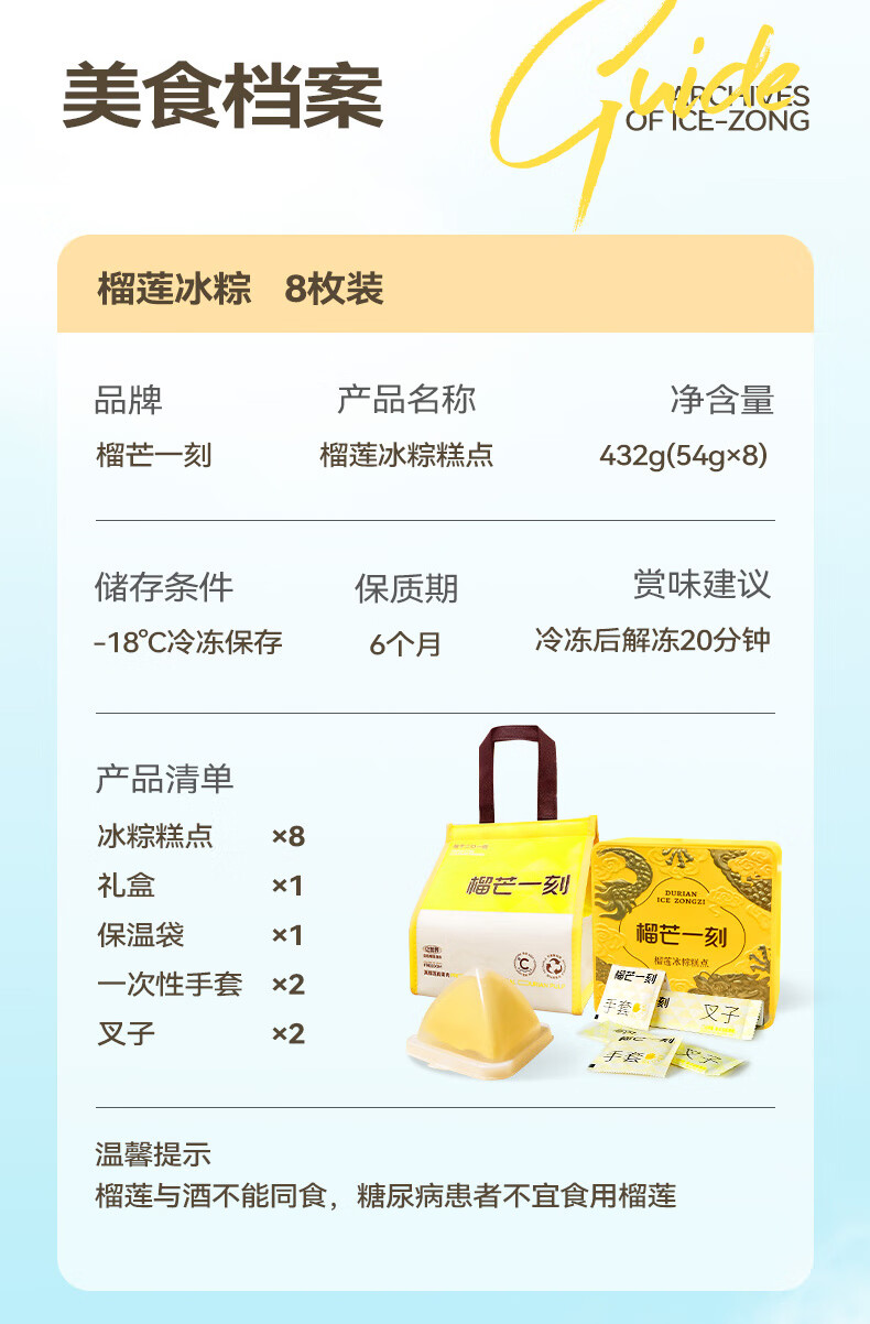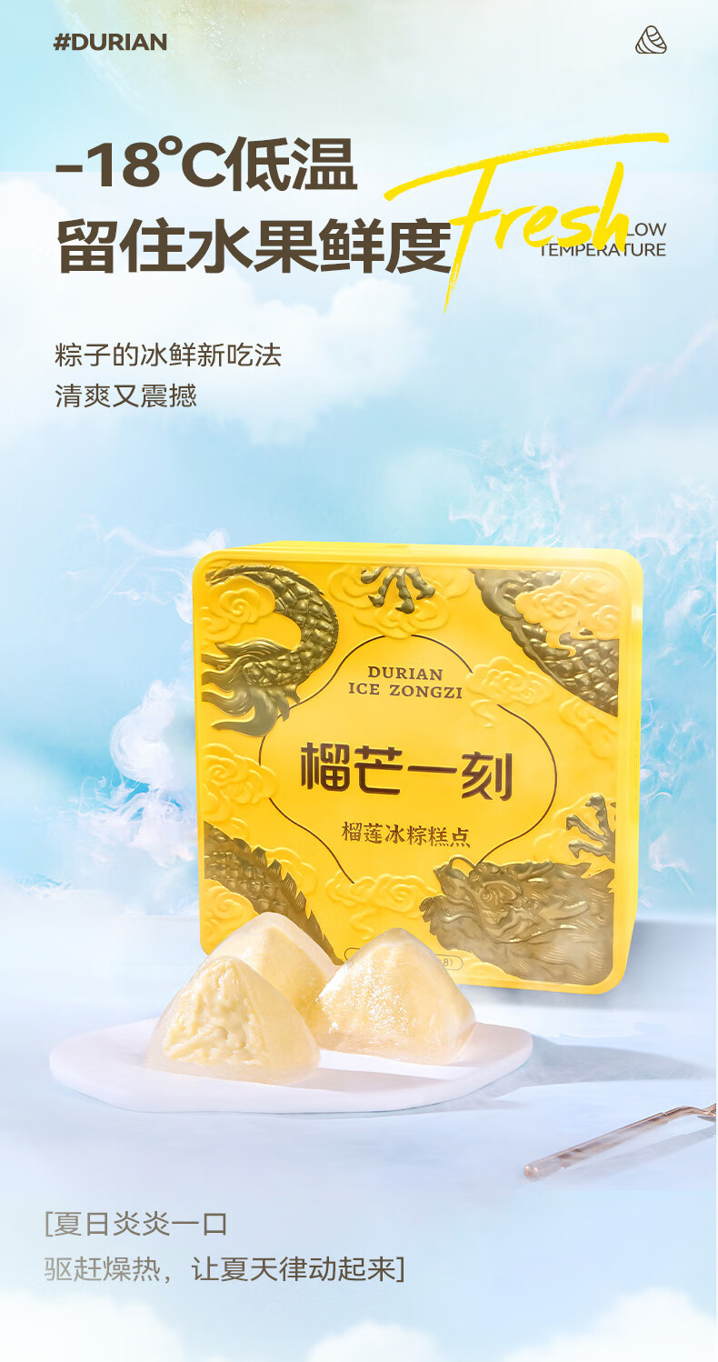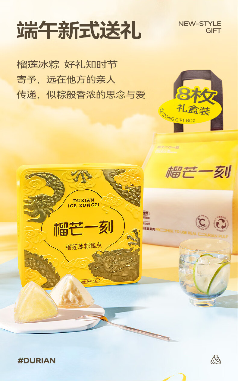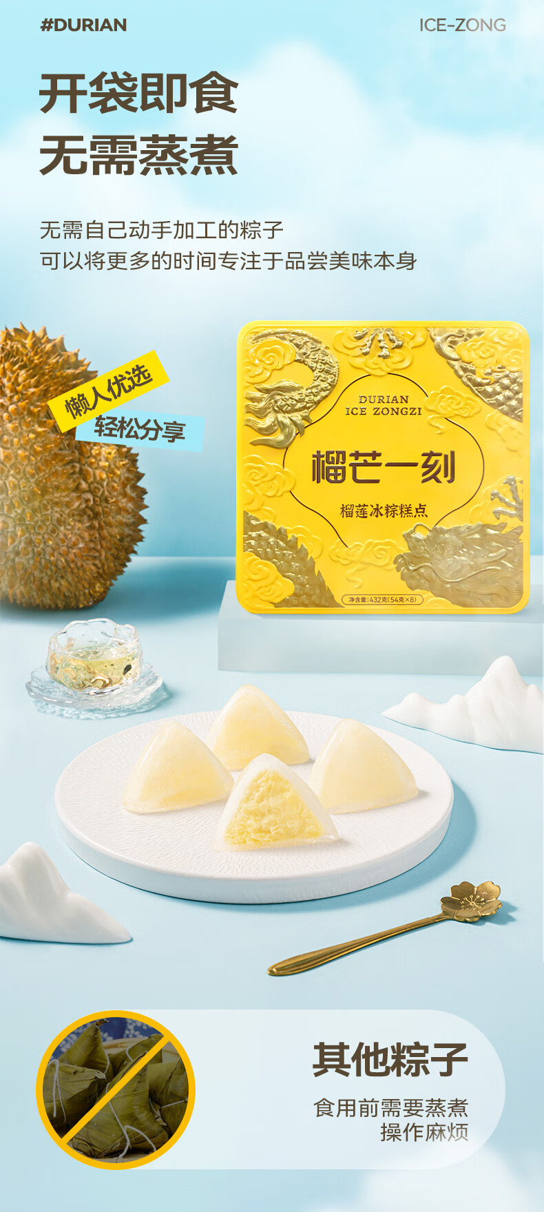 榴芒一刻榴莲冰粽铁盒装432g(金枕4枚+猫山王4枚)