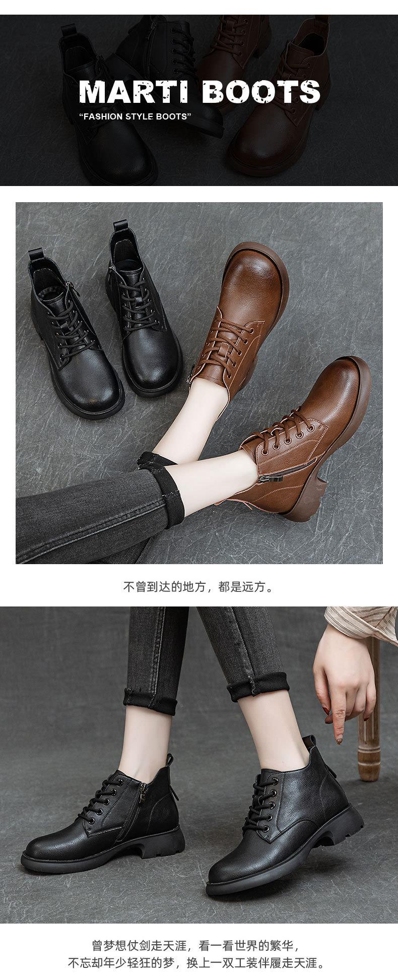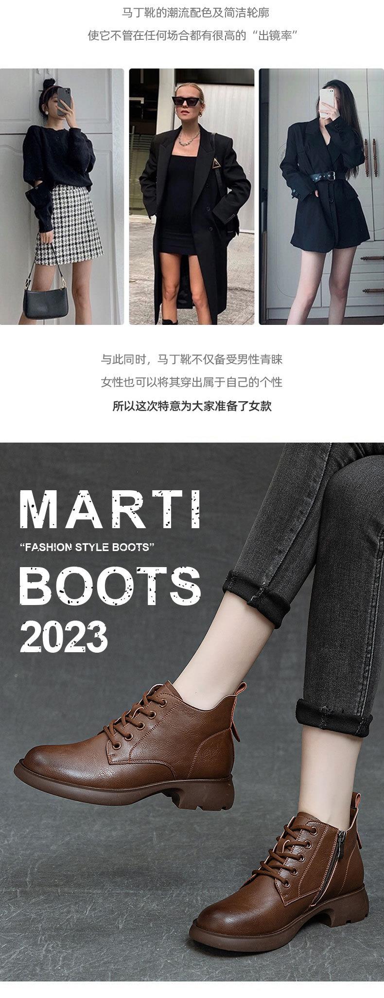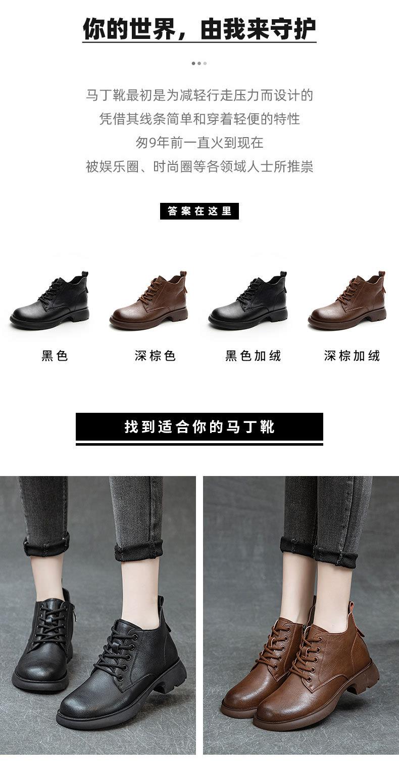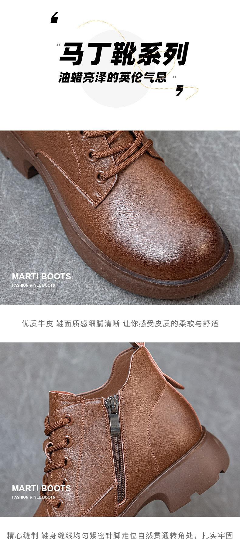 真皮马丁靴女英伦风复古短靴子百搭平底短靴圆头粗跟休闲女鞋