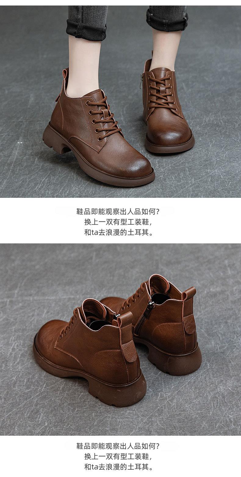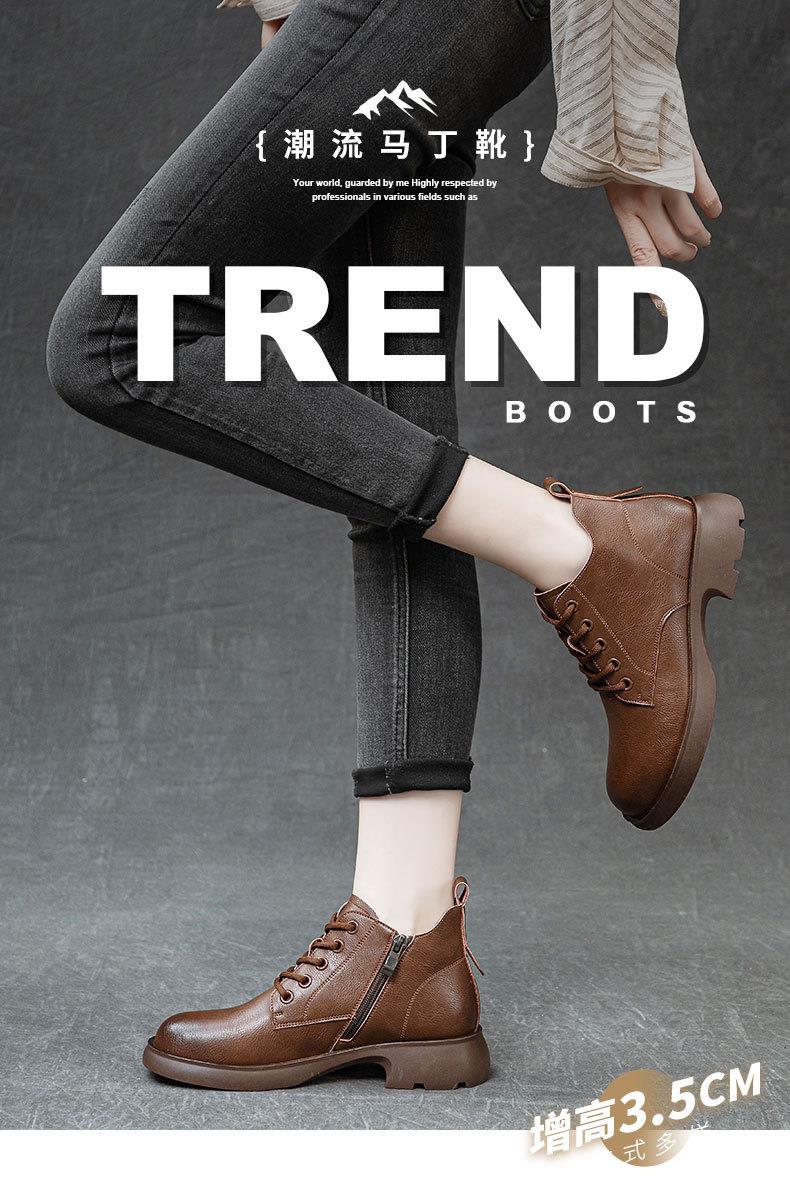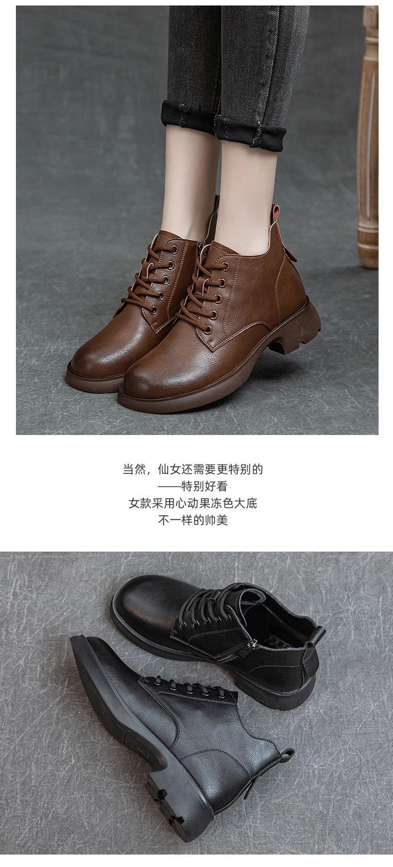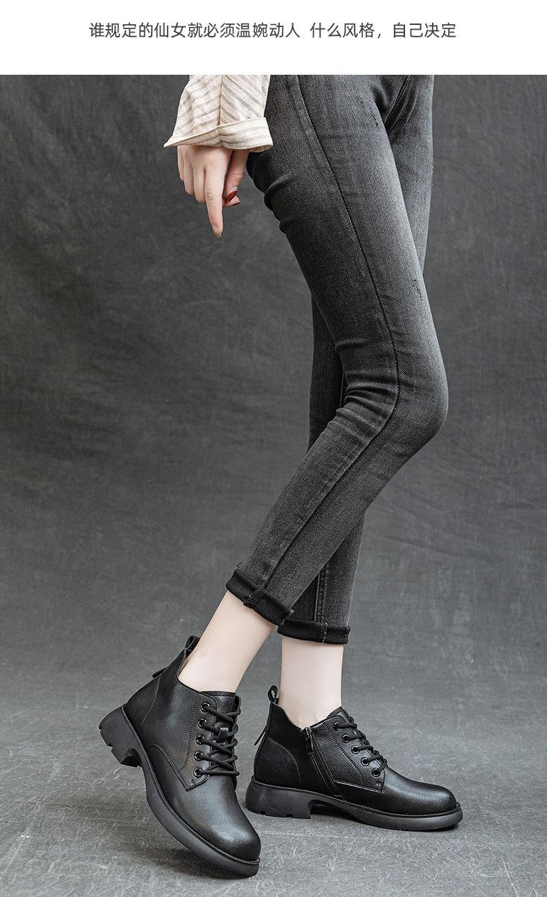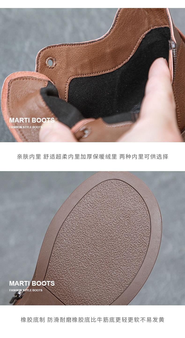 真皮马丁靴女英伦风复古短靴子百搭平底短靴圆头粗跟休闲女鞋
