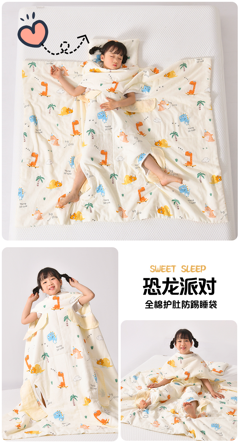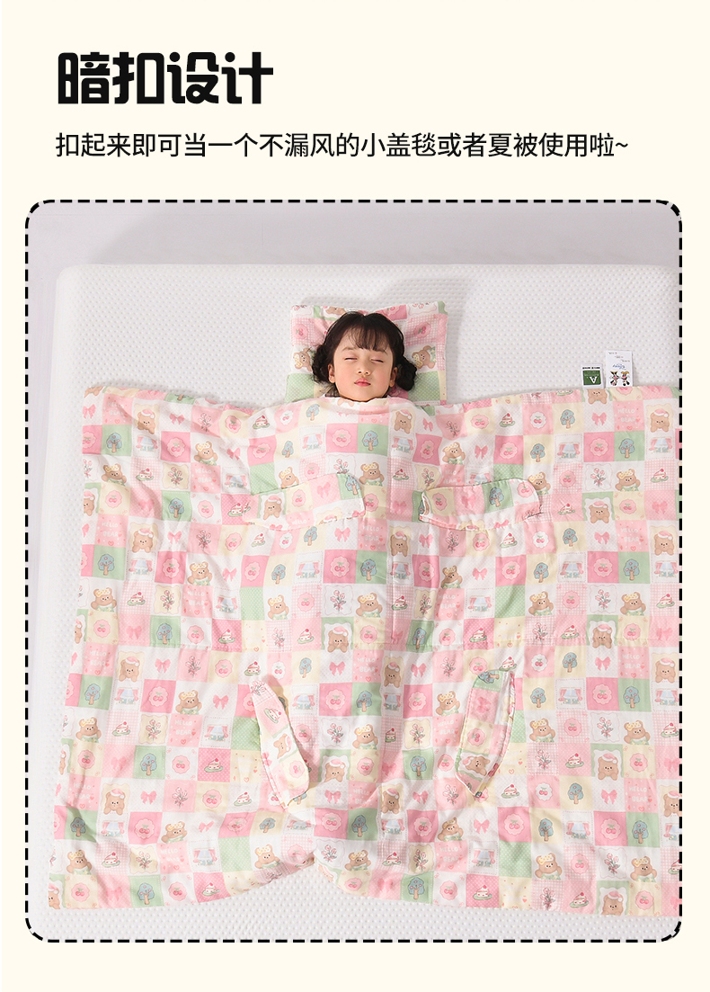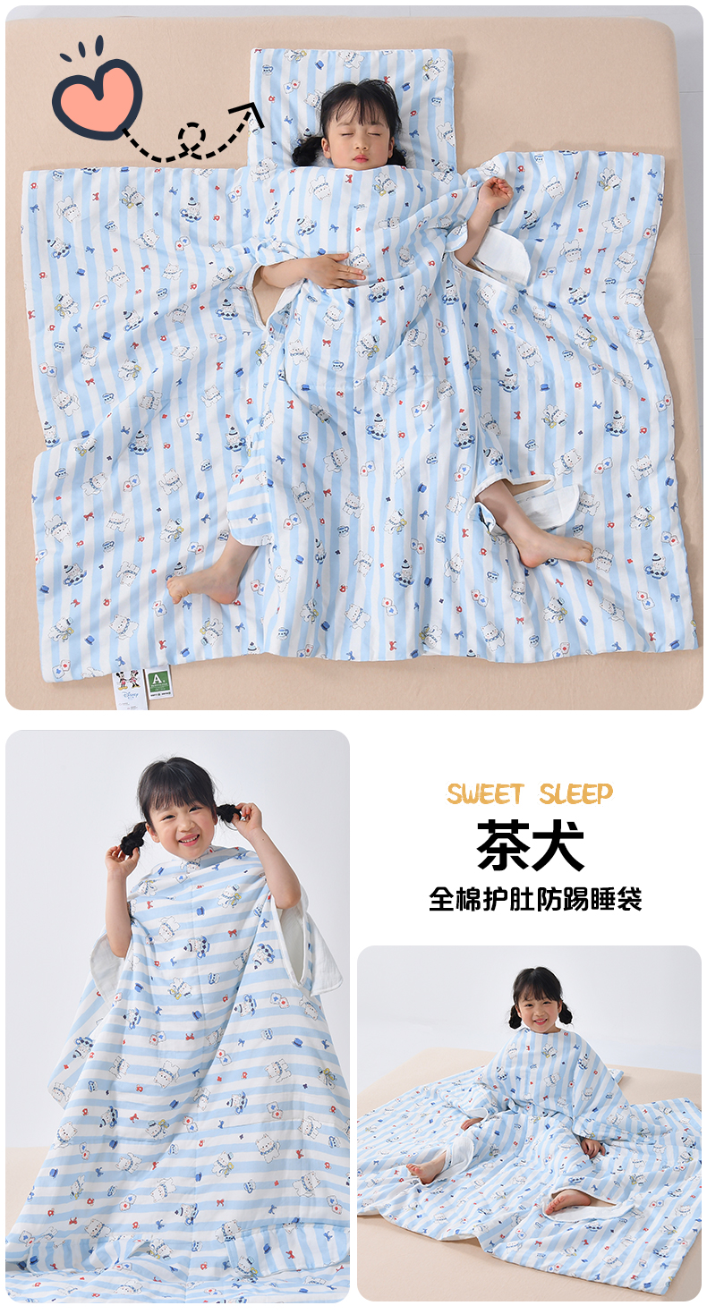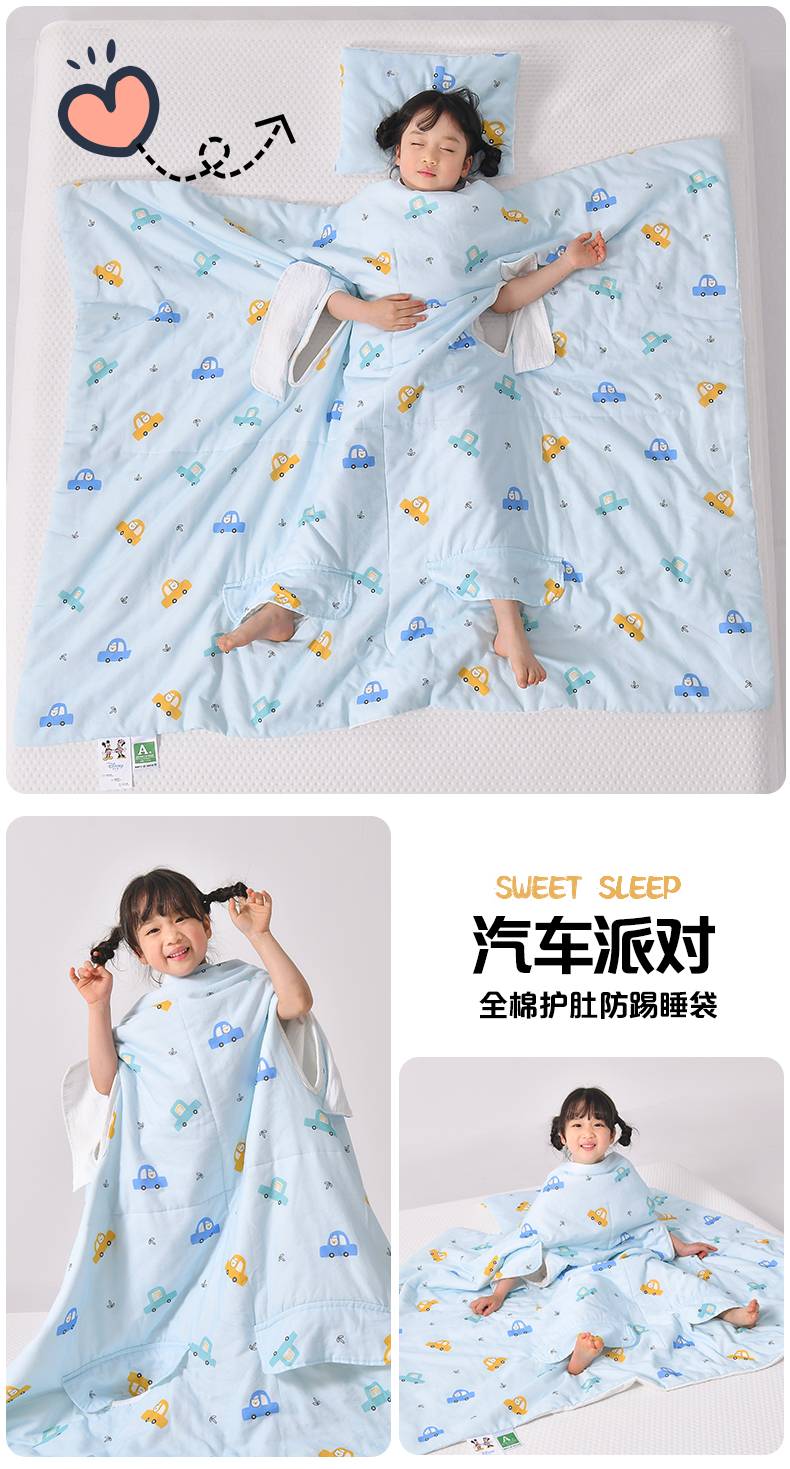 A类全棉双层纱儿童防踢被 纯棉四层纱布多功能盖毯幼儿园宝宝夏凉被