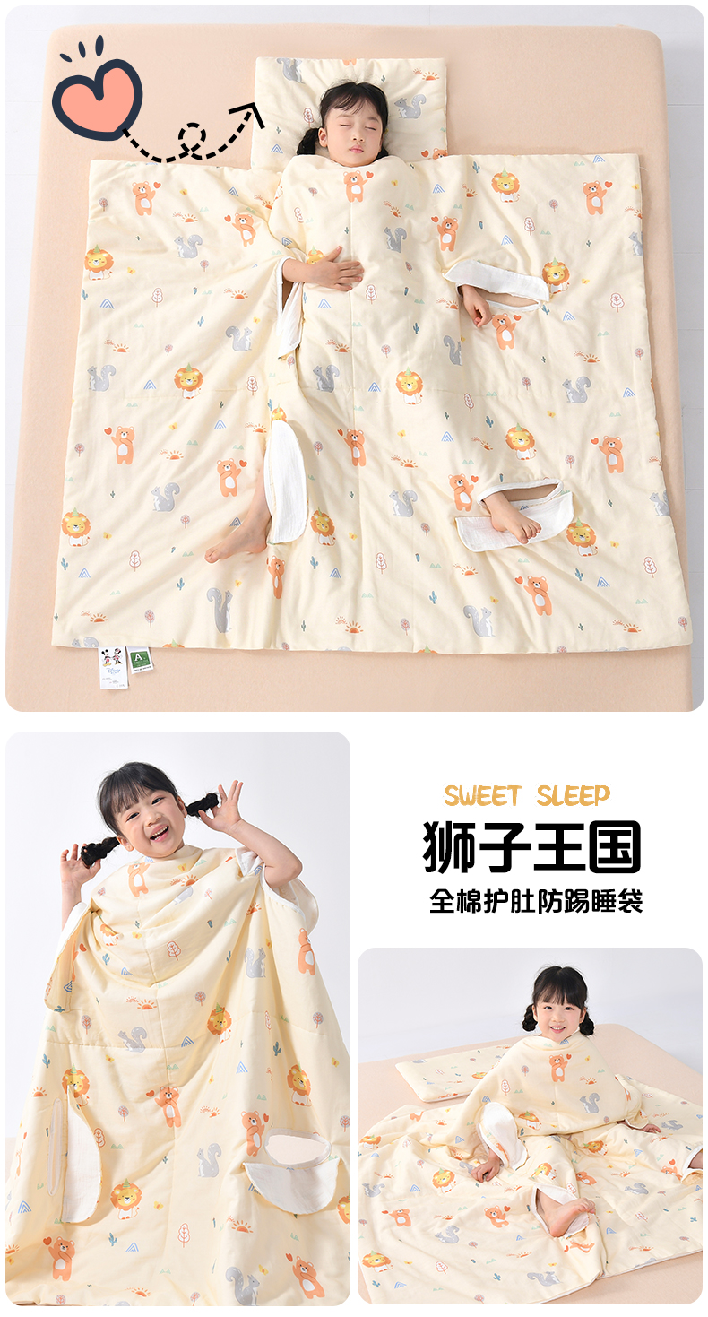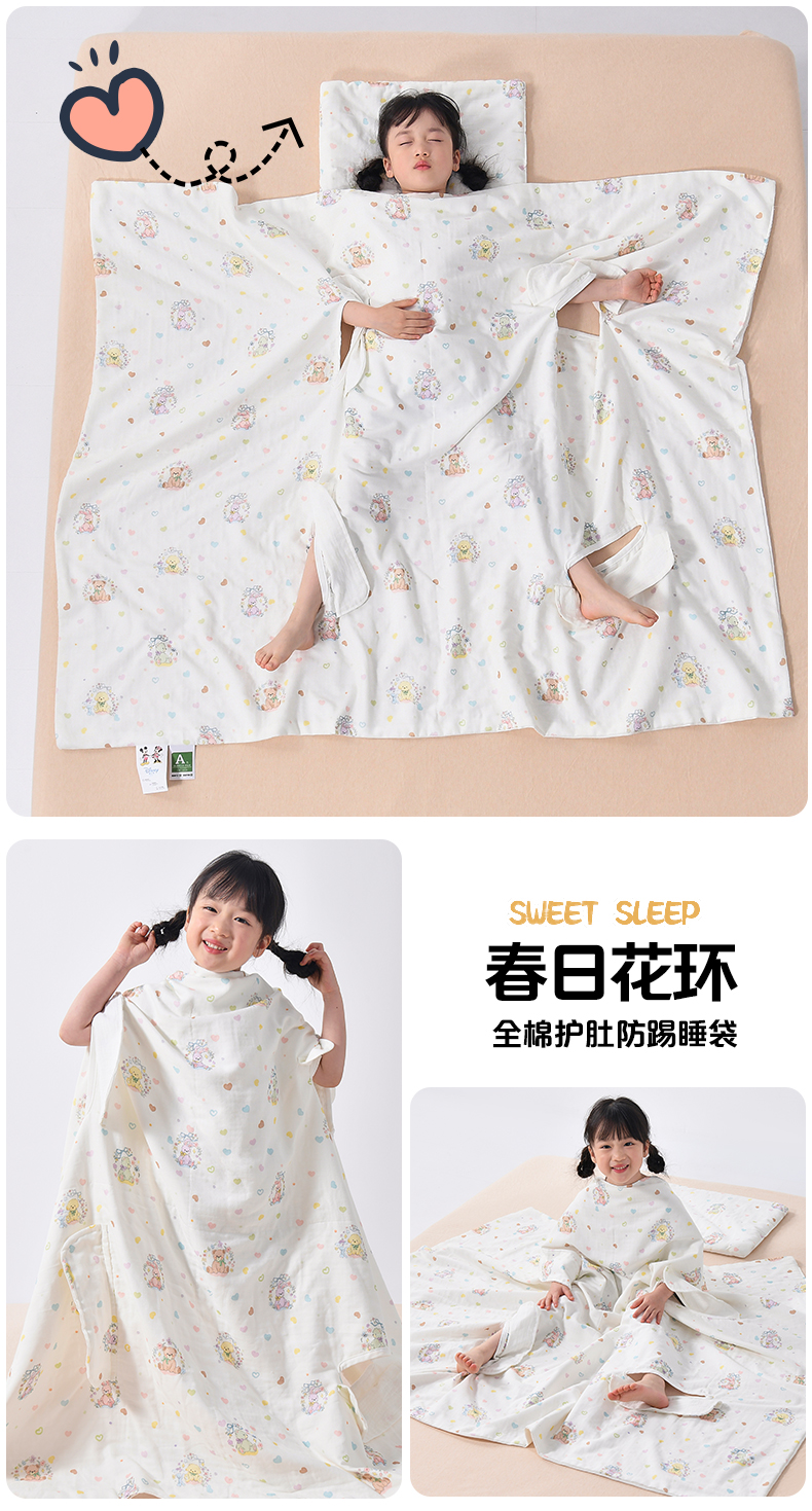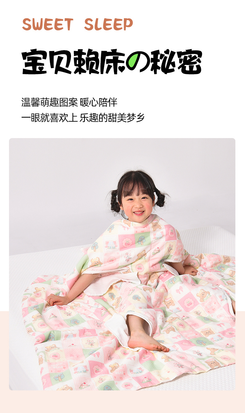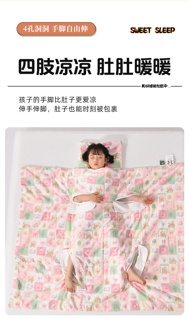 A类全棉双层纱儿童防踢被 纯棉四层纱布多功能盖毯幼儿园宝宝夏凉被