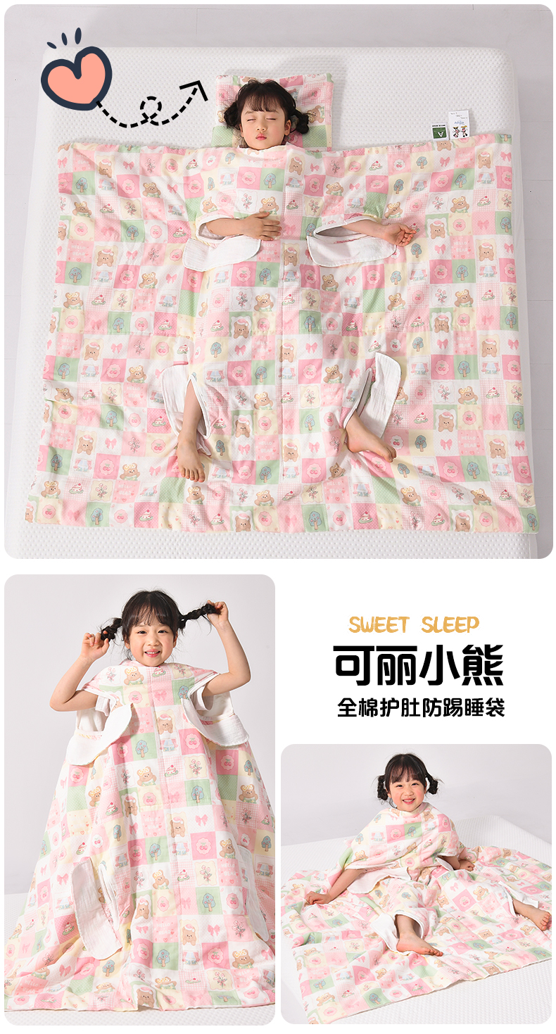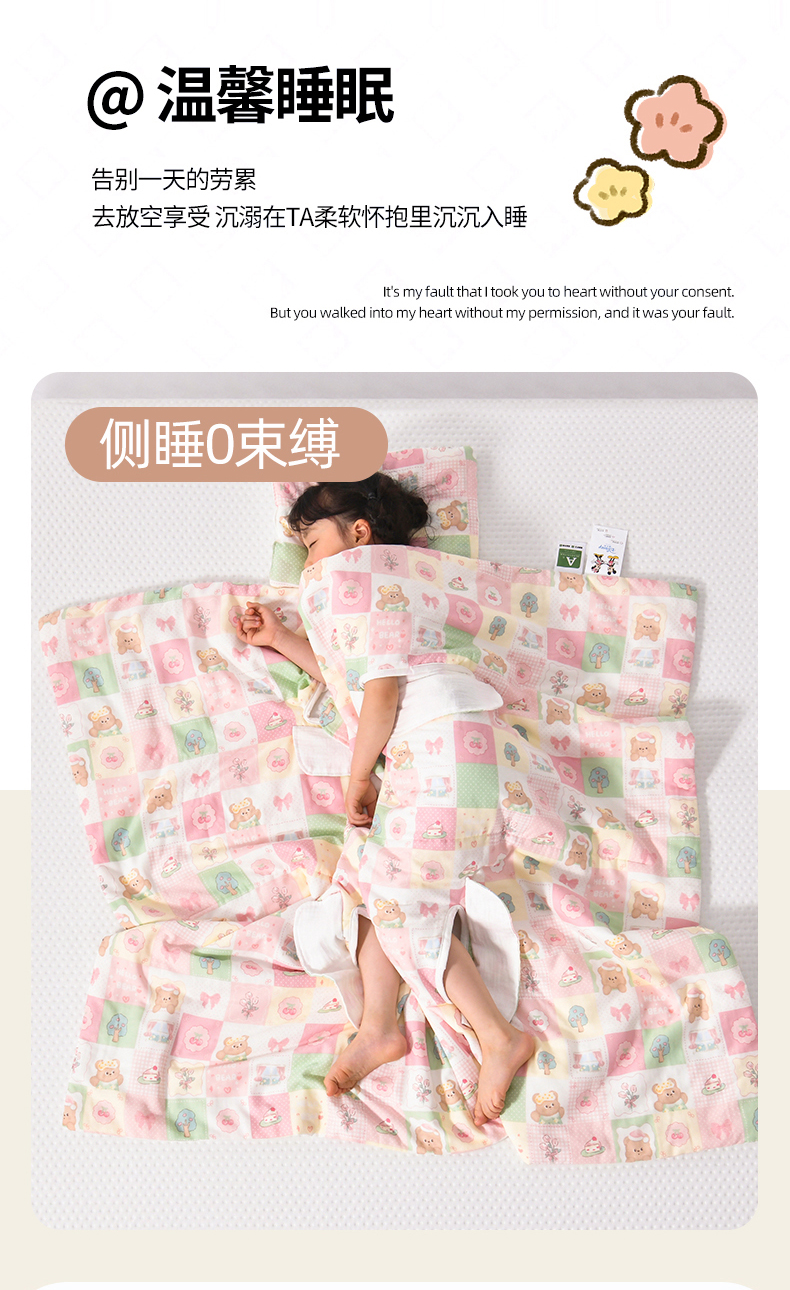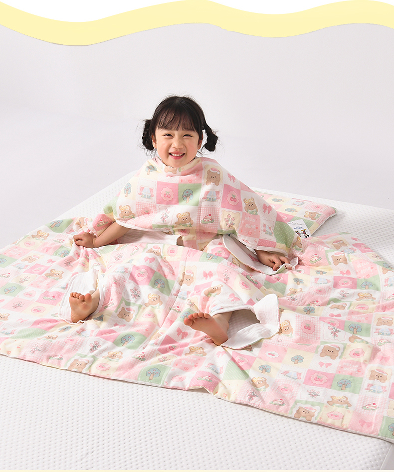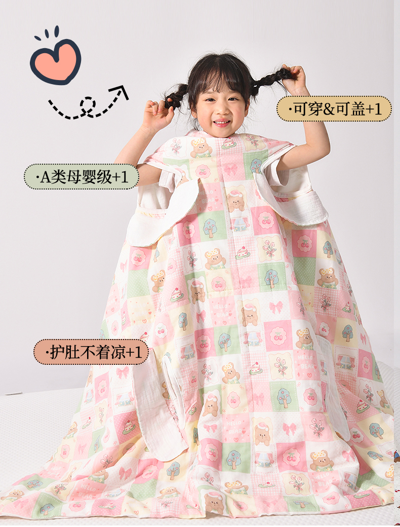 A类全棉双层纱儿童防踢被 纯棉四层纱布多功能盖毯幼儿园宝宝夏凉被