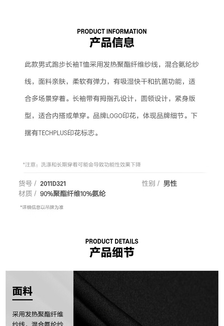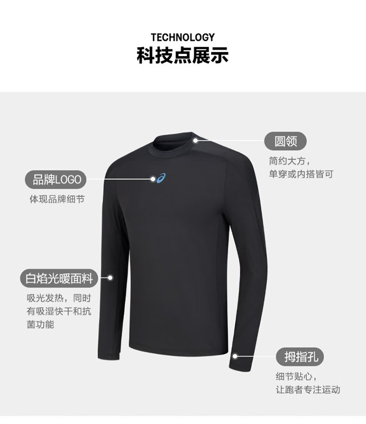 ASICS亚瑟士 男子吸湿速干跑步长袖运动T桖