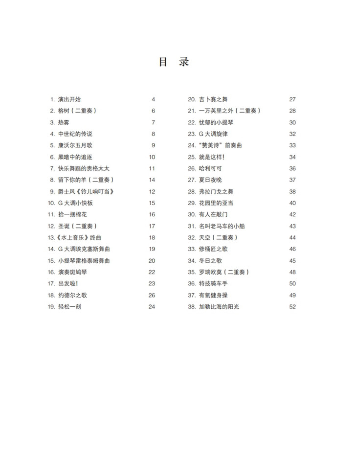 “牛津小提琴进阶教程” 系列是一套充满趣味性的小 提琴进阶教程。教程选曲丰 富,不仅有传统民谣作品, 还有从亨德尔到莫扎特等著 名作曲家的作品,以及雷格 泰姆、弗拉门戈等不同风格 的原创作品。该教程为彩色 版,图谱结合,程度由简到 难,学习者从零起步循序渐 进。随书附赠扫码音频示范 加伴奏,有声配套学琴无忧 ,帮助孩子们在学琴路上快 乐成长。