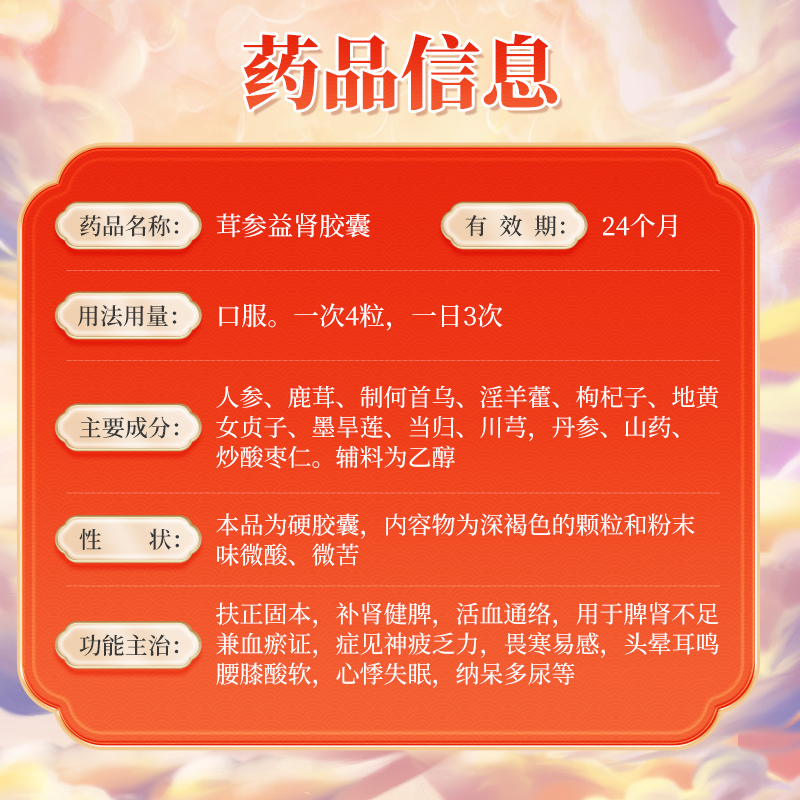 珍方天方茸参益肾胶囊48粒/瓶肾虚补肾健脾【药房直供】效期2026.5