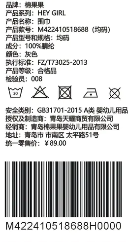 棉果果秋冬季女童围巾用品M422410518688